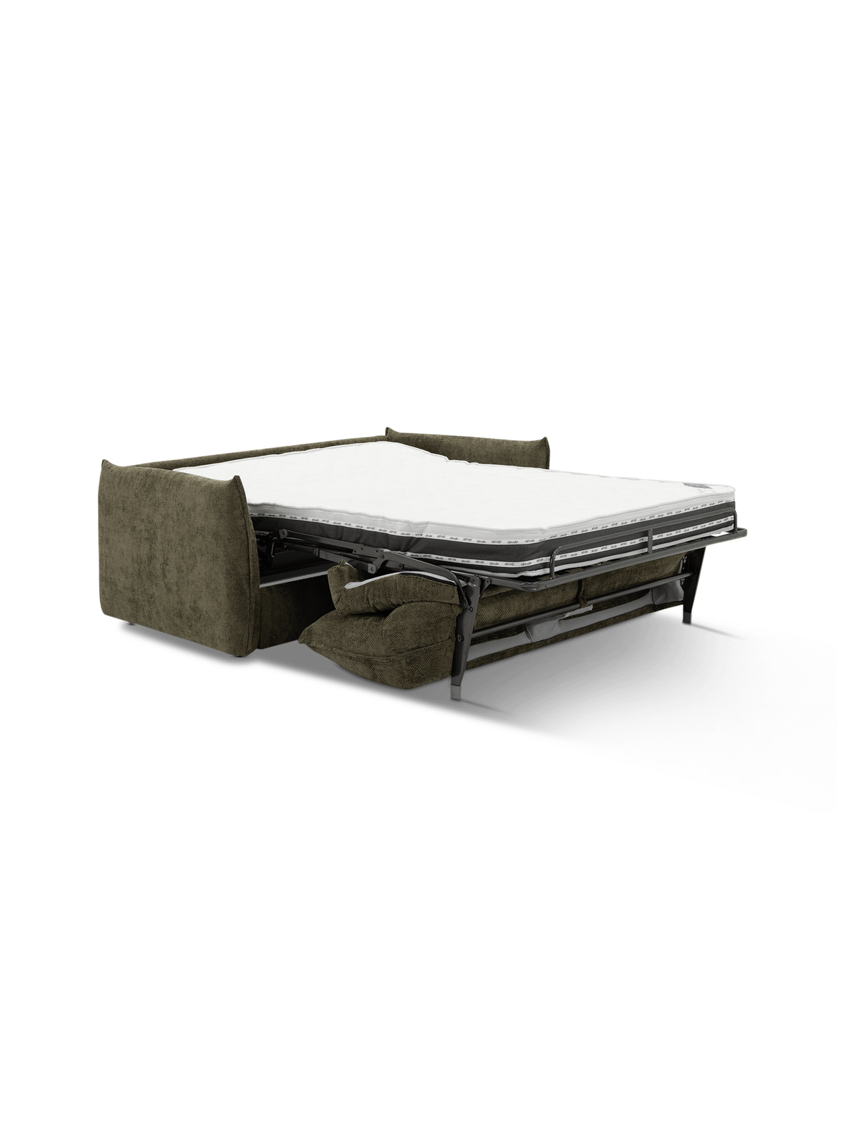 Dankzij het uitgekiende vouwmechanisme transformeert slaapbank Juvre moeiteloos van zit- naar slaapstand, zonder dat de kussens verwijderd hoeven te worden. De matras van hoogwaardige kwaliteit zorgt voor een ontspannen nachtrust, terwijl de stevige zitstructuur perfect comfort biedt in zithouding.
