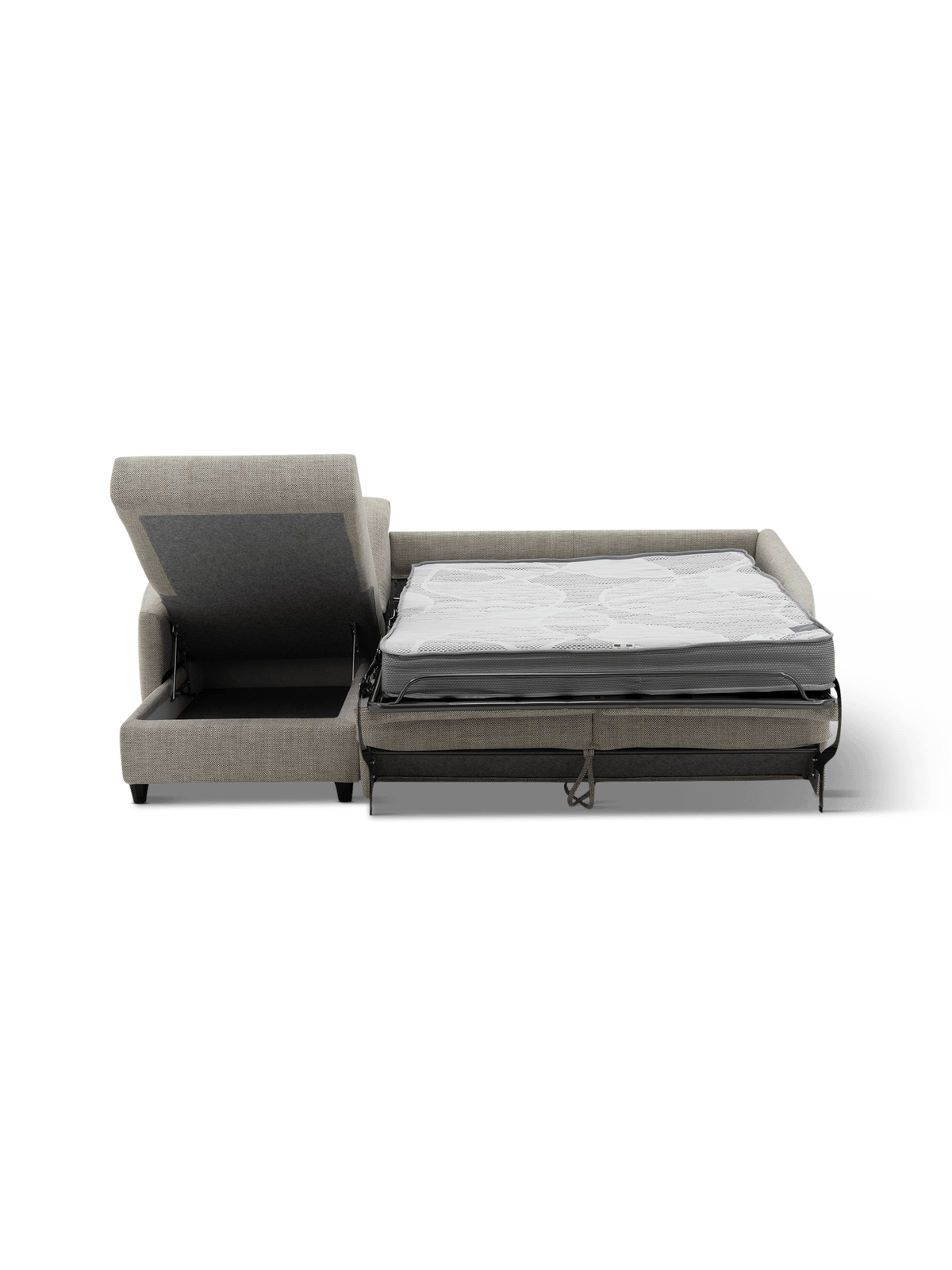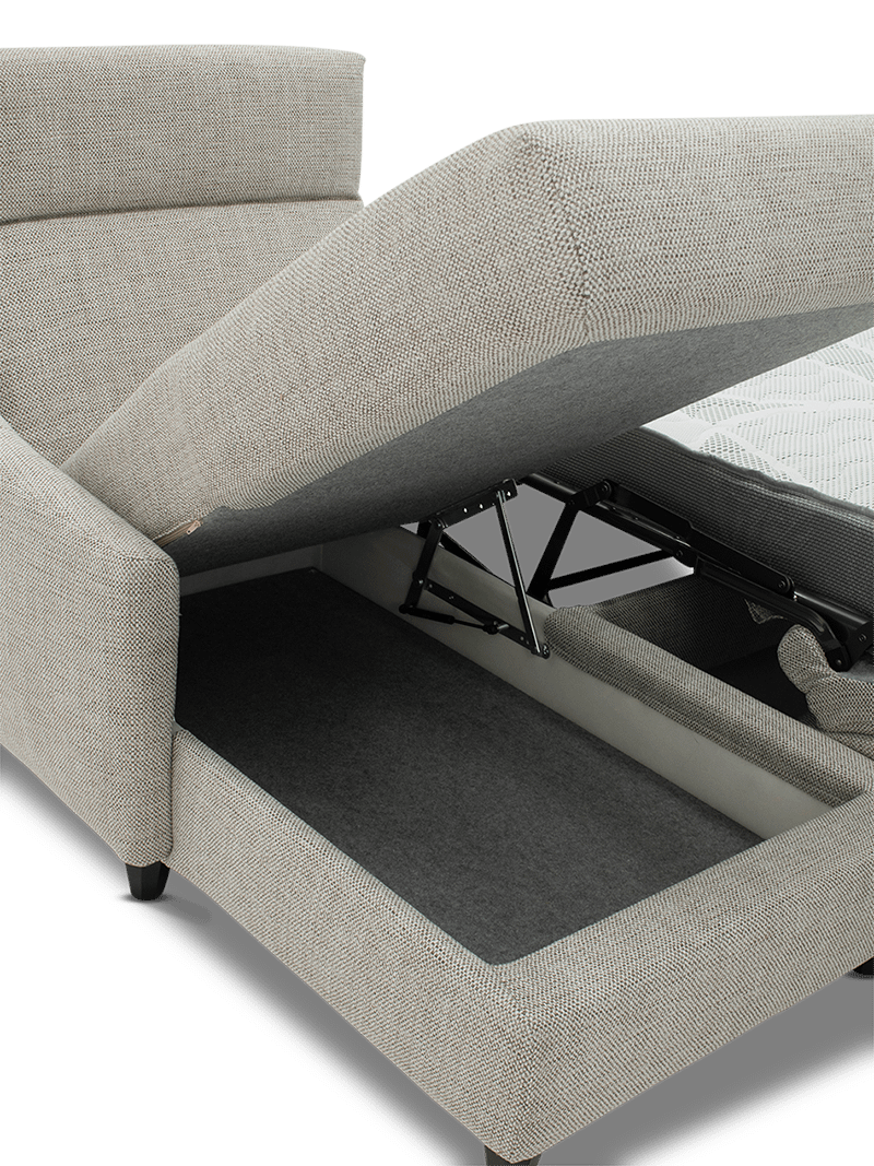 Deze zetel is niet alleen mooi, maar ook bijzonder functioneel. In een handomdraai tover je hem om tot een comfortabel bed, perfect voor logees. De geïntegreerde longchair biedt extra ligruimte en beschikt bovendien over handige opbergruimte voor dekens of kussens. Zo blijft je leefruimte steeds netjes en georganiseerd.