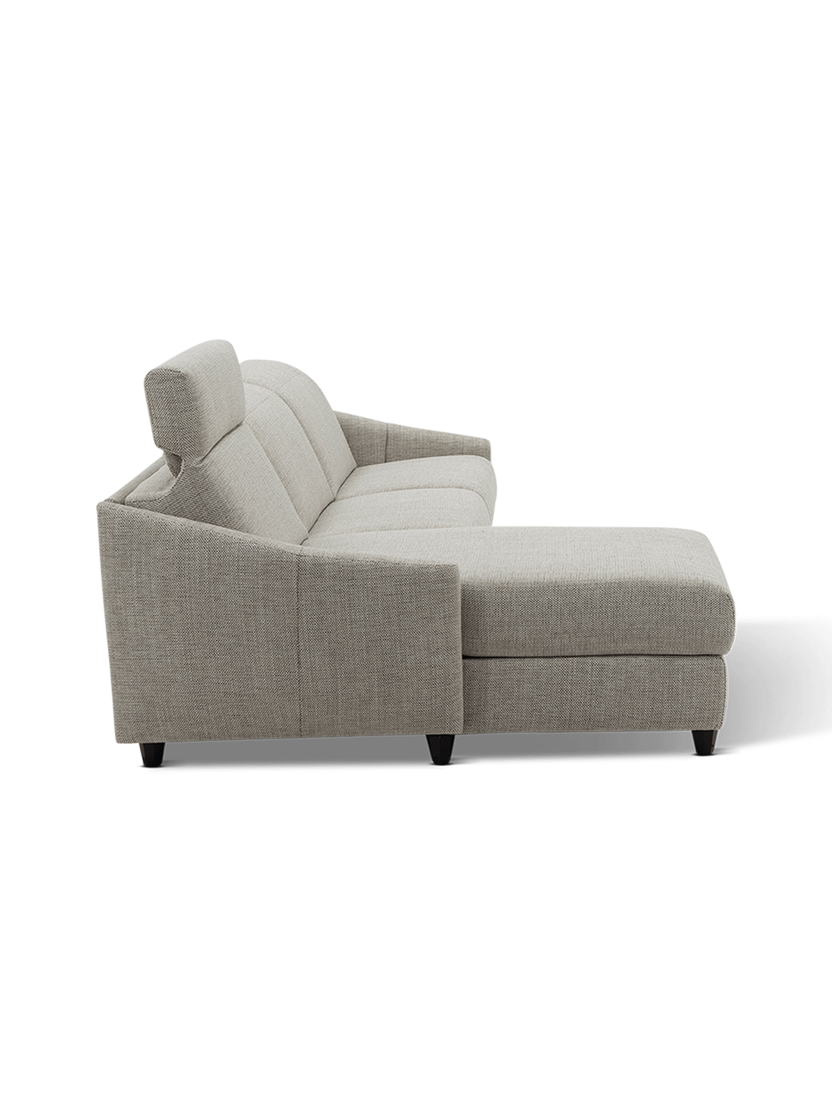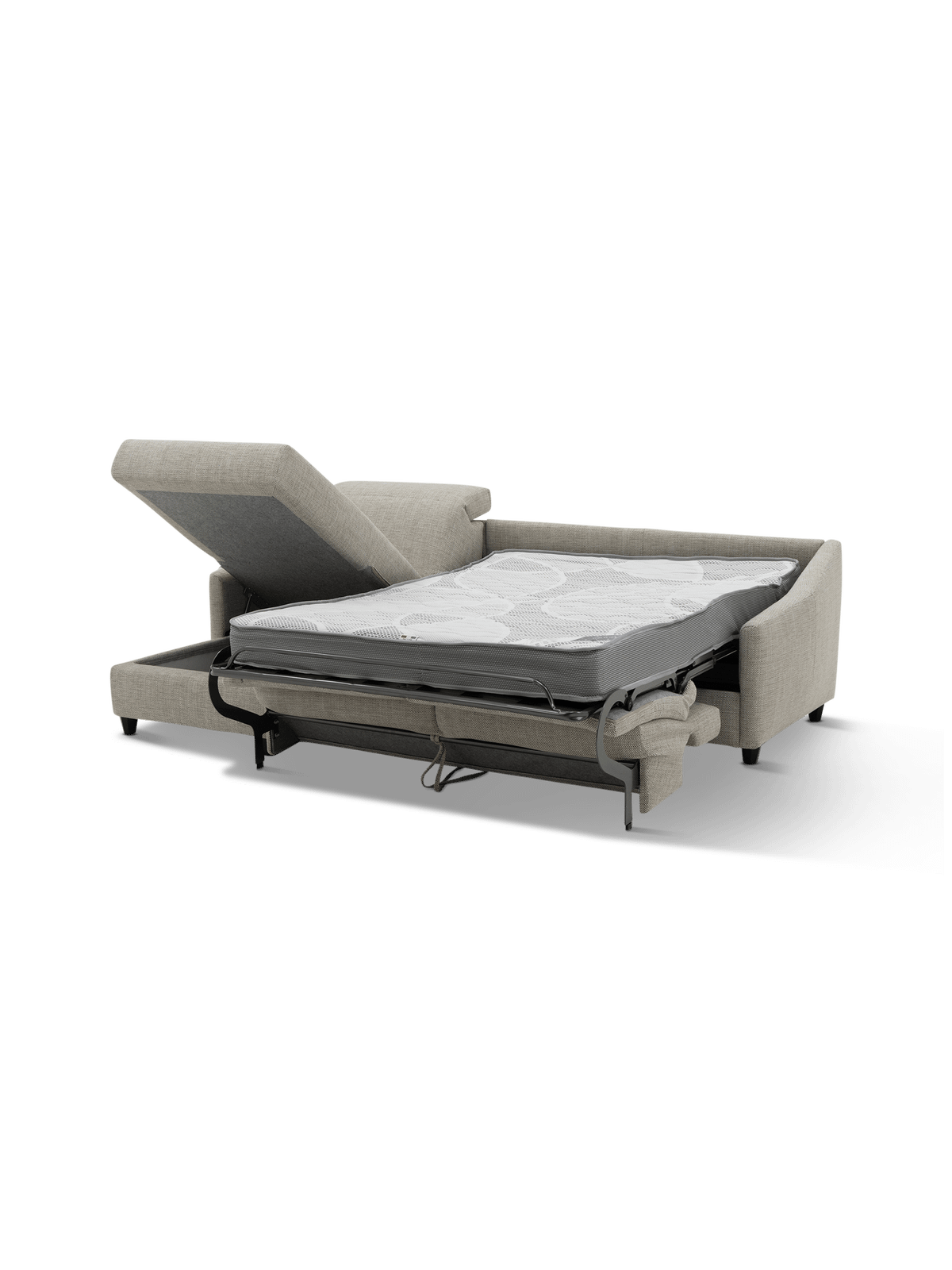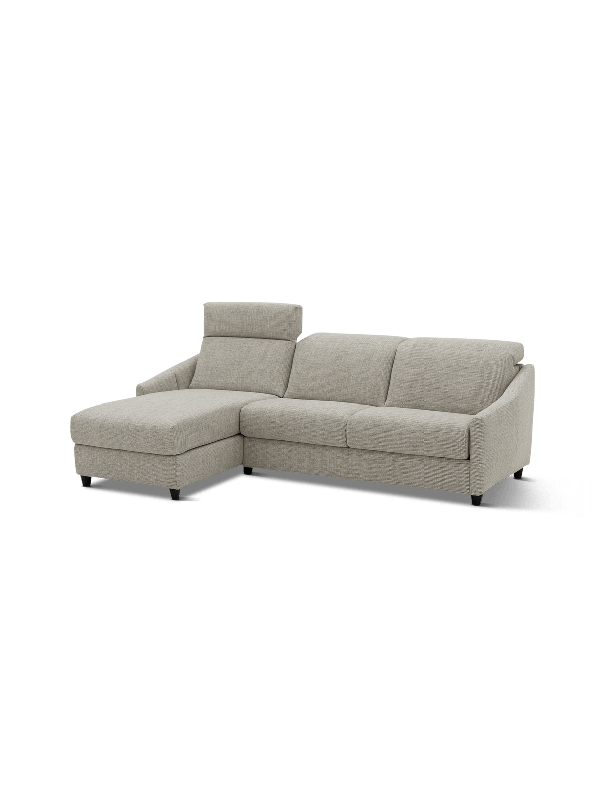 Slaapbank Caccia met longchair combineert hedendaags design met dagelijks gebruiksgemak. De neutrale bekleding zorgt voor een warme uitstraling die perfect past in zowel moderne als klassieke interieurs. Dankzij de uitnodigende zitkussens en de afgeronde armleuningen geniet je van optimaal zitcomfort, ideaal voor gezellige avonden of ontspannen momenten.