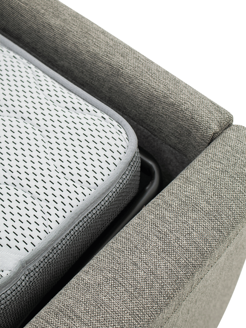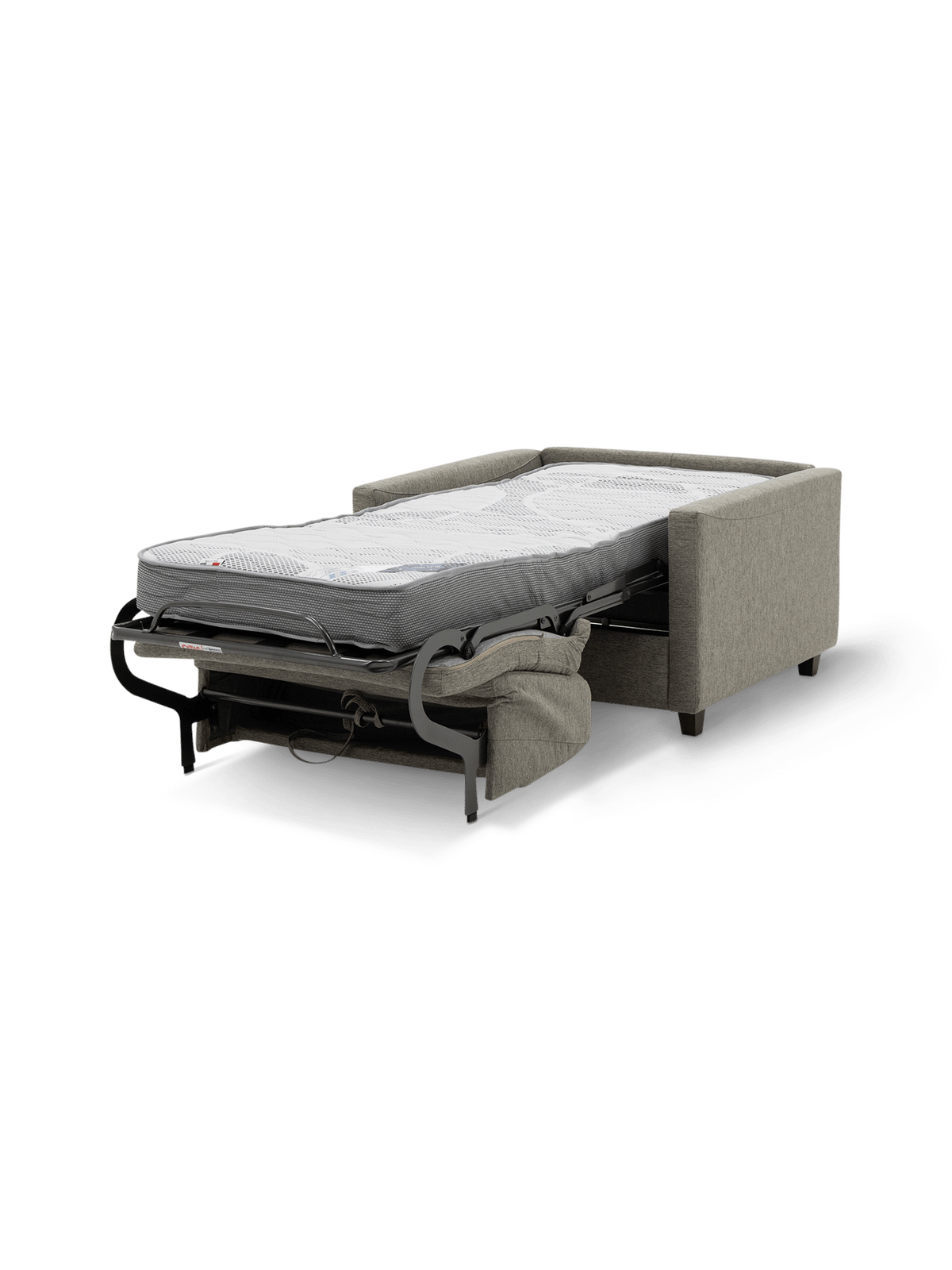 Dankzij het slimme uitklapsysteem verander je deze zitbank eenvoudig in een bed wanneer je extra slaapruimte nodig hebt. De geïntegreerde matras van 80 cm breed biedt een compacte maar comfortabele slaapoplossing, ideaal voor een logé.
