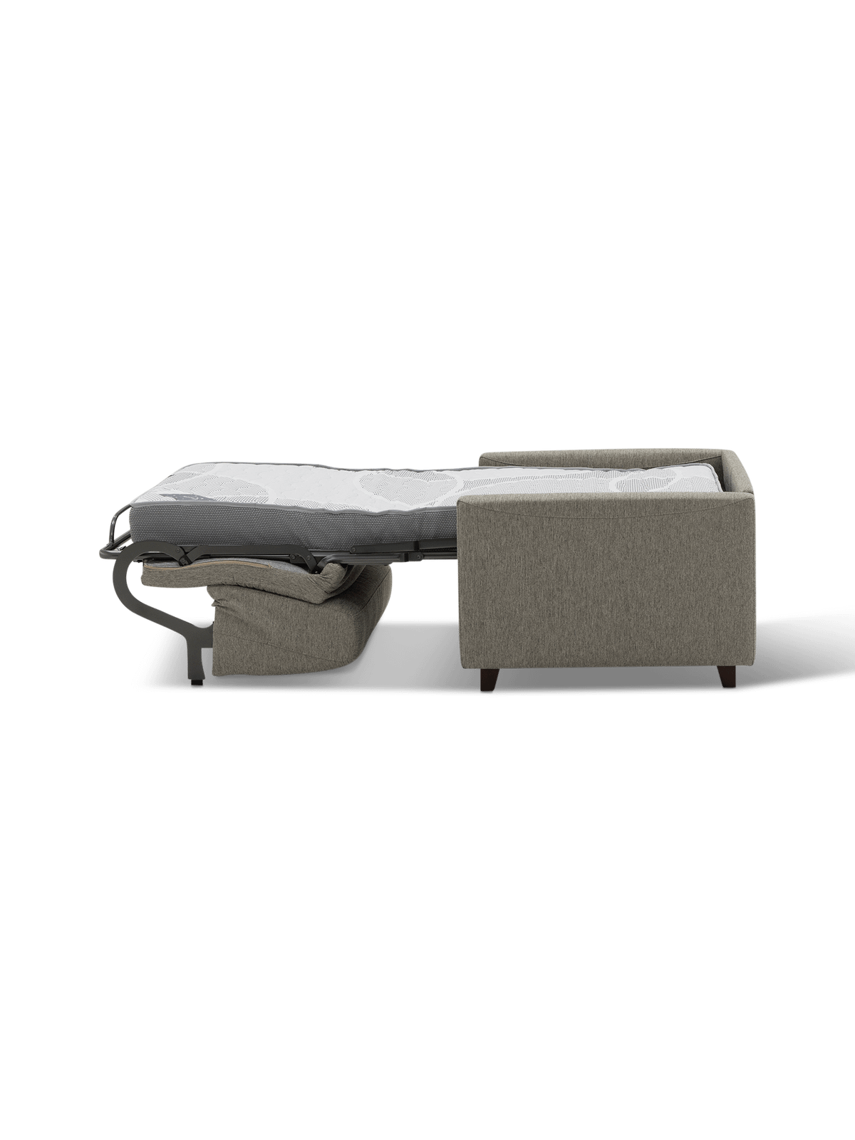 De sobere vormgeving met rechte armleuningen en fijne houten pootjes geeft deze slaapbank een tijdloze uitstraling die zich makkelijk laat combineren met verschillende interieurstijlen.