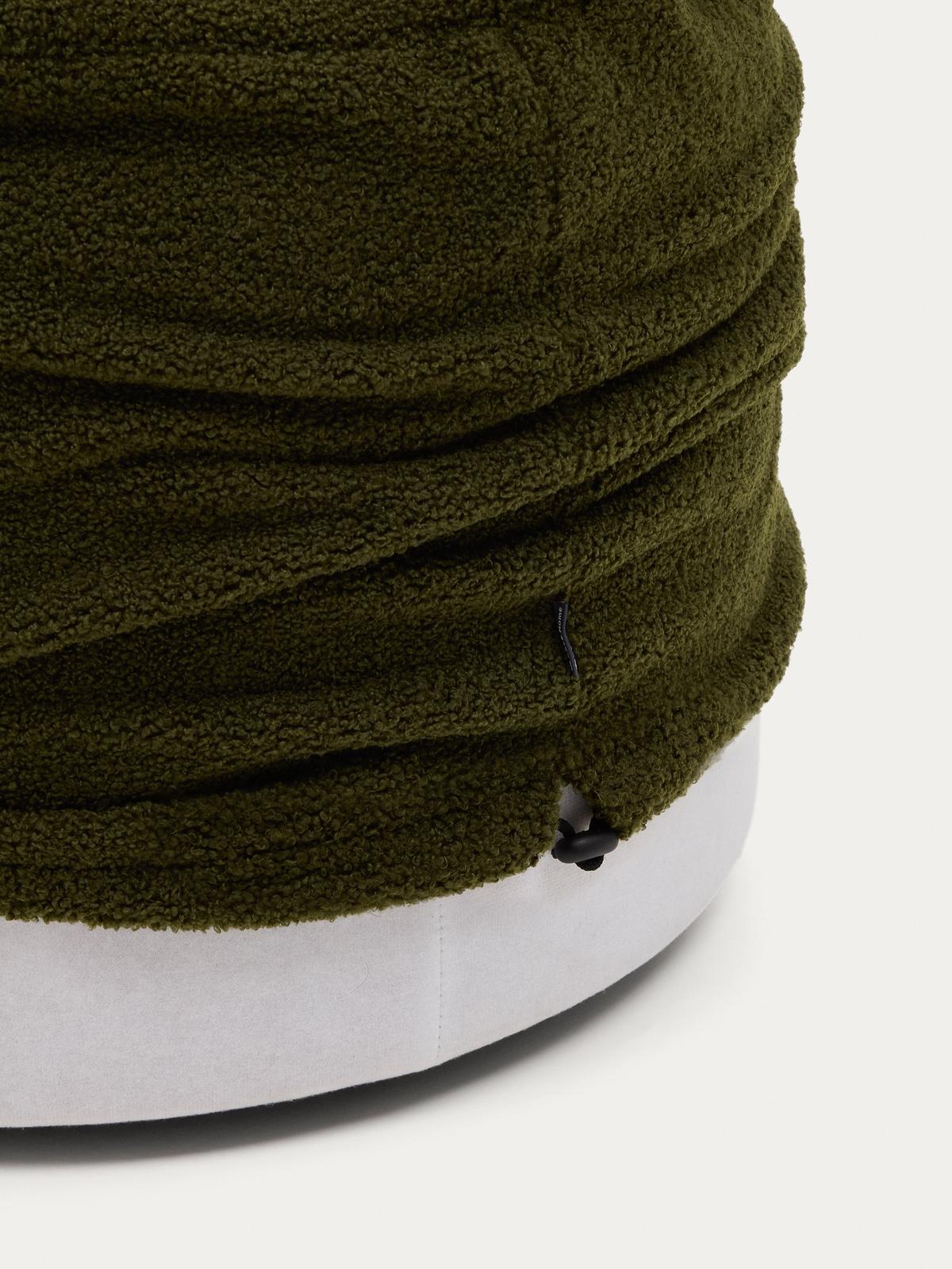 Kaeli voetenbank met afneembare hoes in groen bouclé ⌀60 cm