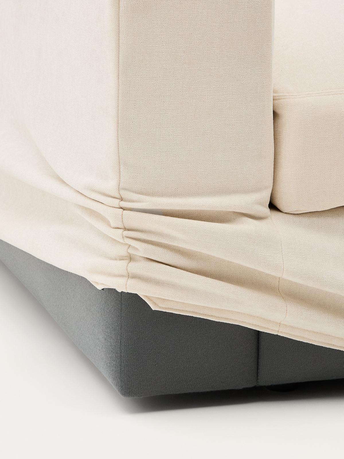 De Alea modulaire bank met afneembare hoezen is een statement van stijl en functionaliteit. Hij is ontworpen voor mensen die waarde hechten aan zowel eigentijdse esthetiek als absoluut comfort en combineert perfect uitgebalanceerde proporties met gestikte details die het verfijnde karakter en de formele rust versterken. Het is een veelzijdig designelement dat op elegante wijze past in elke ruimte en interieurstijl en een vleugje tijdloze moderniteit toevoegt. Omdat de hoezen afneembaar zijn, kun je hem bovendien altijd zo goed als nieuw houden en de stijl veranderen door de hoezen te vervangen. De zitkussens zijn vervaardigd uit schuim met een dichtheid van 30 kg/m³ en een laag nieuwe microvezel, wat zorgt voor een gemiddelde zit en een wolkachtig gevoel bij het zitten. De textuur en snelle terugvering zorgen voor een uitzonderlijke comfortervaring, terwijl de microvezel van de zitkussens een ideaal niveau van zachtheid en ondersteuning toevoegt. De rugleuning, samengesteld uit holle gesiliconiseerde vezels van eerste persing (HCS), past zich perfect aan het lichaam aan en krijgt zijn oorspronkelijke vorm terug dankzij de elasticiteit en duurzaamheid van de vezels. Bovendien is de binnenkant van de kussens gemaakt van een mix van katoen en polyester voor een ademend vermogen en interne tussenschotten om de geometrie en dichtheid van het kussen te behouden. De chenille hoes is gemaakt van 100% polyester en garandeert een hoge slijtvastheid en lichtbestendigheid. Hij kan in de wasmachine worden gewassen op een fijnwasprogramma voor maximaal gebruiksgemak. Onze leverancier van de zeer resistente stof beschikt over internationale certificeringen, zoals het OEKO-TEX® STANDARD 100-certificaat, dat een ecologisch veilige en milieuverantwoorde productie garandeert. De hoes is volledig afneembaar door middel van het klittenbandsysteem en het bankje heeft uitschroefbare poten, waardoor het gemakkelijk te repareren is. Bovendien is het gemaakt van hoogwaardige materialen zoals geborsteld dennenhout uit Spanje en is het machinaal omzoomd met banden van 97% rubber en 3% nylon, die zorgen voor een hoge bestendigheid. Elk element is ontwikkeld om duurzaamheid, comfort en een ontwerp te bieden dat meegroeit met de behoeften van je huis.