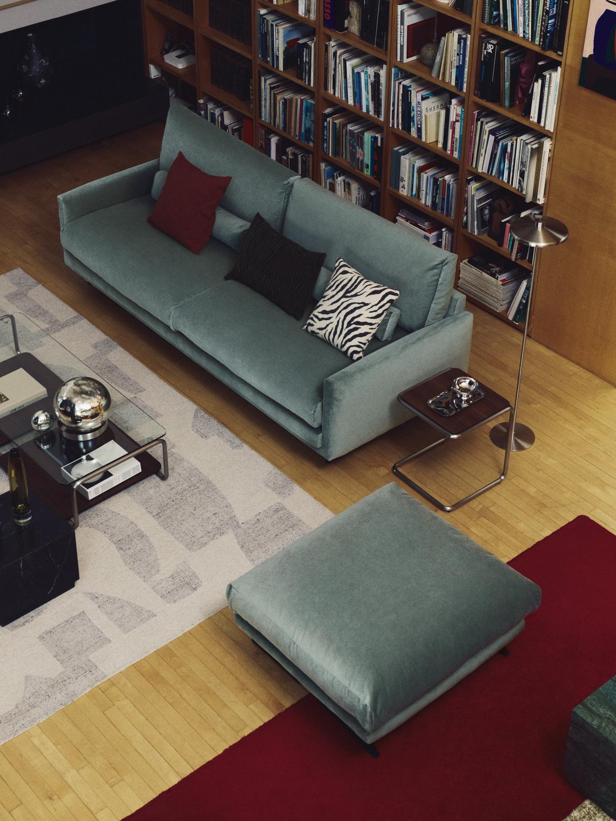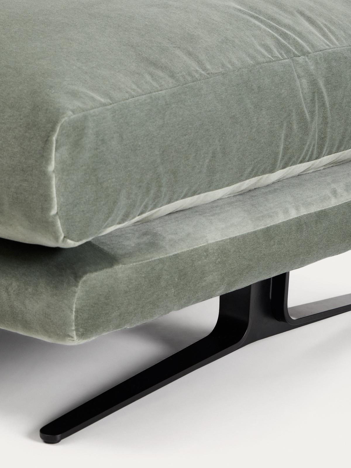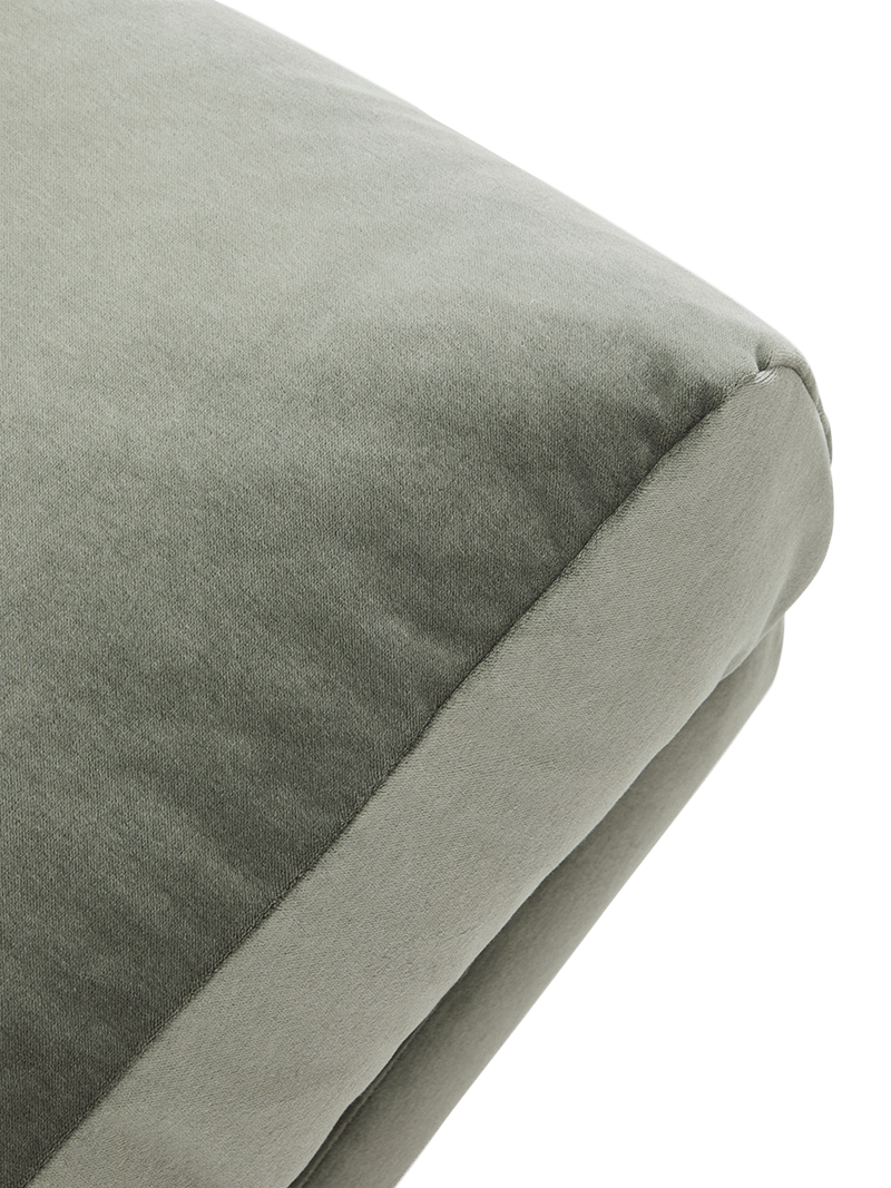 Het Veliro voetenbankje combineert de tijdloze elegantie van de lijnen uit het midden van de 20e eeuw met nieuwe proporties, ontworpen om maximaal comfort te bieden in elke omgeving. De fluwelen bekleding met een verwassen look en matte afwerking, samengesteld uit 20% katoen, valt op door zijn zachtheid en hoge weerstand tegen slijtage en licht, en kan in de wasmachine worden gewassen op een delicaat programma. De stof is afkomstig van een leverancier die gecertificeerd is volgens OEKO-TEX® STANDARD 100 voor ecologisch veilige en milieuvriendelijke productie. De zitting is zacht dankzij de combinatie van Air System-schuim met een dichtheid van 28 kg/m³, met hoge duurzaamheid en veerkracht, samen met vezels met donseffect voor een omhullend zitgevoel. Het kussen met afneembare hoes voegt functionaliteit toe en maakt schoonmaken en onderhoud eenvoudiger. De interne structuur van grenenhout is FSC Mix Credit-gecertificeerd, gemaakt van een mix van materialen uit FSC-gecertificeerde bossen en FSC-gecontroleerd hout. De stalen poten, met een elegante zwarte matte poedercoating met microstructuur, zorgen voor stabiliteit en geven het geheel een eigentijdse uitstraling. Geproduceerd in Spanje, is dit voetenbankje een veelzijdig meubelstuk dat zich dankzij het uitgebalanceerde ontwerp en de comfortabele zitting gemakkelijk in elke ruimte laat integreren en zich aanpast aan verschillende levensstijlen.