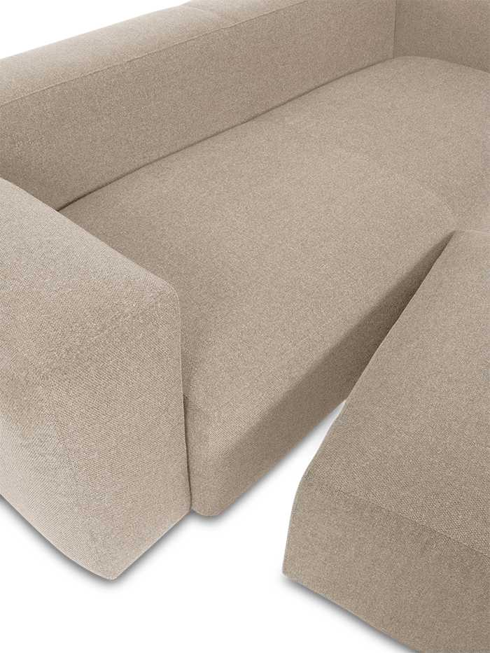 Dit voetenbankje, onderdeel van de iconische Blok-collectie die bekend is om zijn brede proporties en gestructureerde lijnen, brengt in elke omgeving een gevoel van stabiliteit en sereniteit. Het ontwerp van de onzichtbare poten versterkt de visuele lichtheid en creëert een geraffineerd en tijdloos geheel dat perfect past in elke woonkamer. De bekleding is gemaakt van elegant tweekleurig chenille met fijne textuur en is vlekbestendig voor eenvoudig onderhoud: gewoon afvegen met een vochtige doek en hij blijft vlekkeloos. Je kunt voortdurend genieten van een zachte en omhullende textuur. Zijn binnenste bestaat uit een basis van 30 kg/m³ zacht schuim, een laag van 20 kg/m³ hard schuim en een toplaag van 20 kg/m³ zacht schuim. Dit zorgt voor een comfortabele, stevige en evenwichtige zitpositie, ideaal als voetensteun of als extra stoel. De interne structuur van vurenhout is FSC Mix Credit gecertificeerd, gemaakt van een combinatie van materialen uit FSC-gecertificeerde bossen en FSC-gecontroleerd hout. Bovendien zorgt lokale productie in Europa voor hoge kwaliteitsnormen en draagt het bij aan het verminderen van de impact op het milieu. De stof is OEKO-TEX® STANDARD 100 gecertificeerd voor een ecologisch veilige en milieuverantwoorde productie. Dit voetenbankje is de perfecte aanvulling op de Blok-bank, een must-have die comfort en stijl toevoegt aan elke kamer.