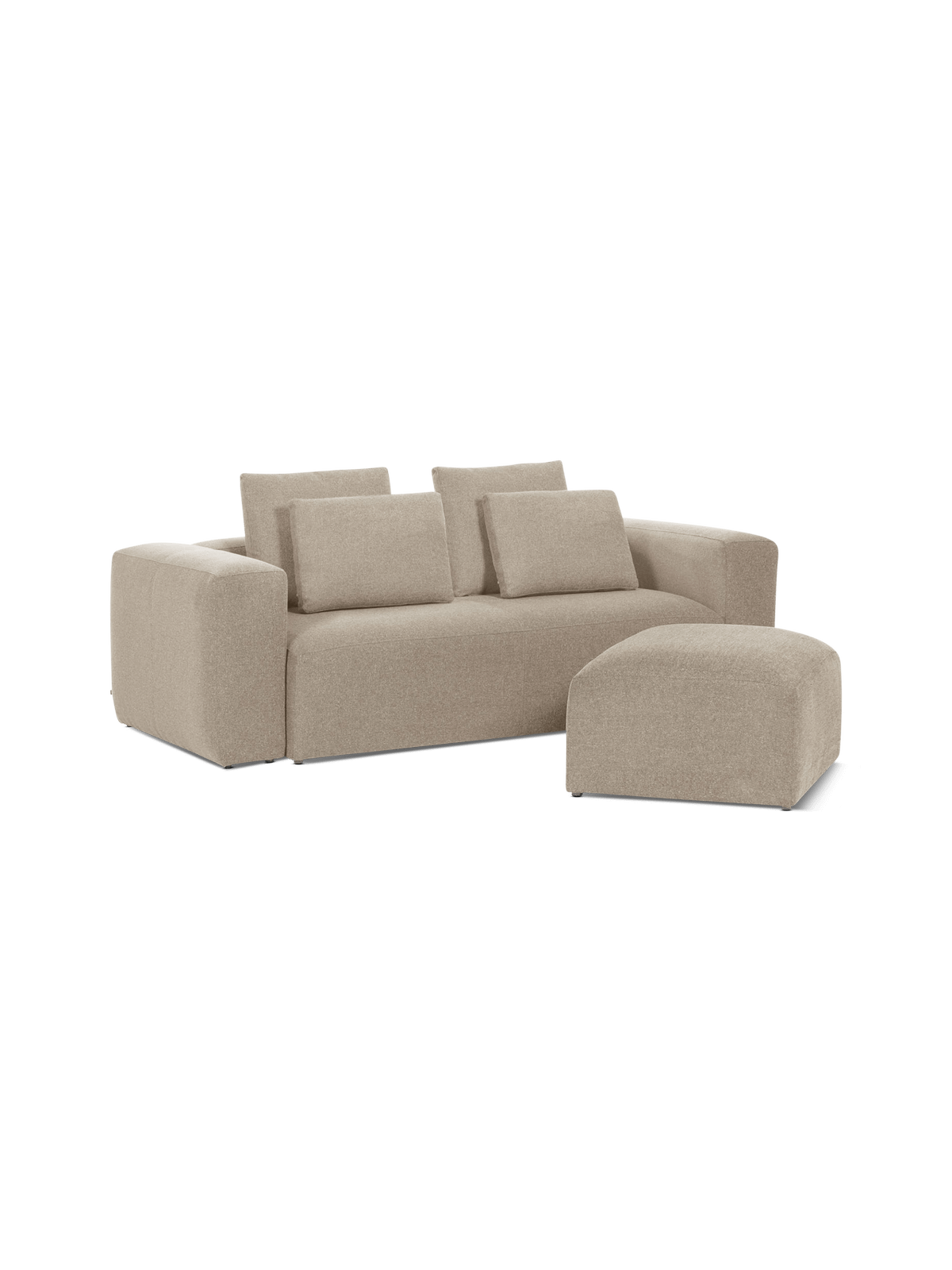 Blok-voetenbankje in beige chenille 90 x 74 cm FSC Mix Credit