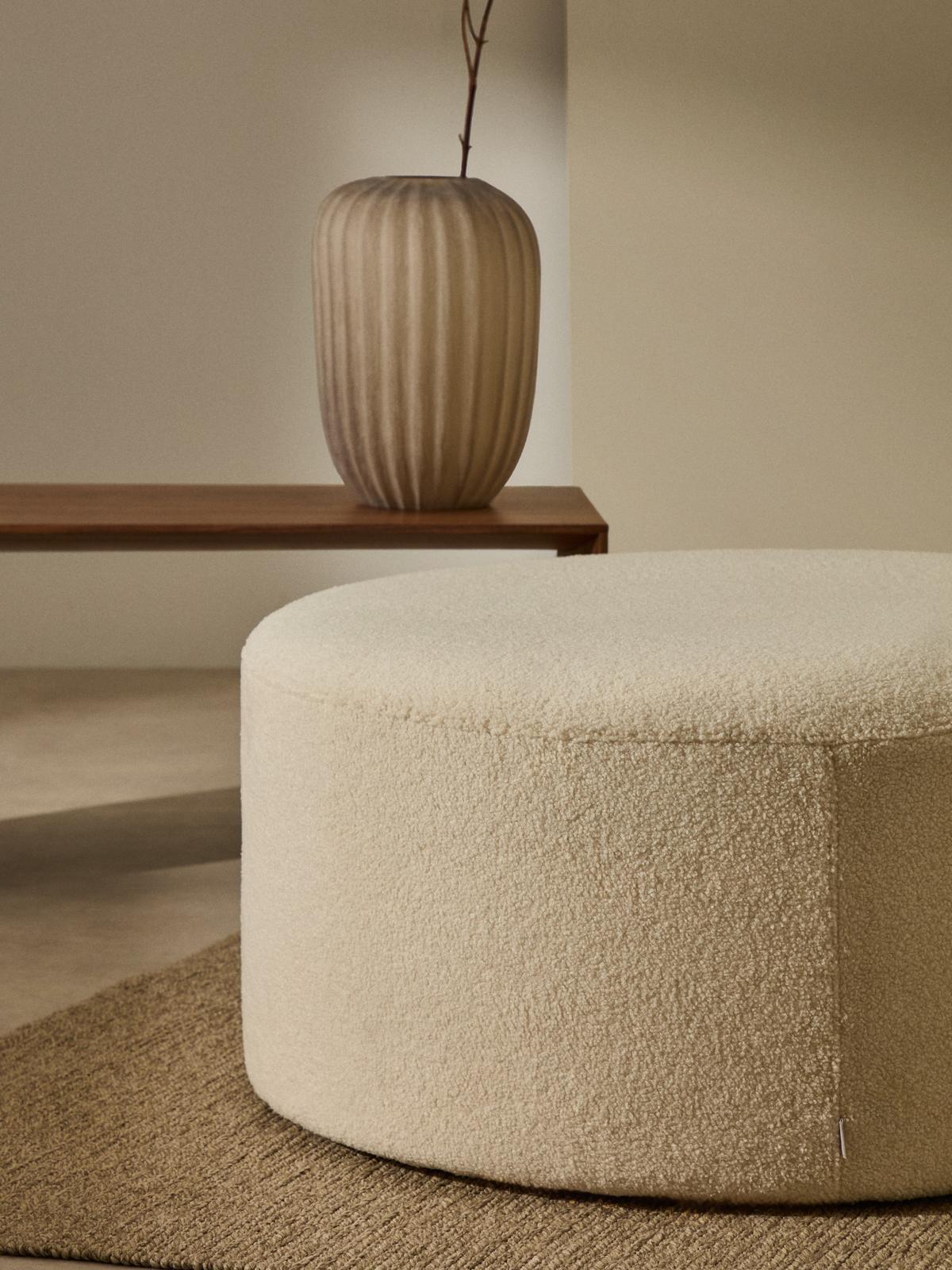 Kaeli voetenbank met afneembare hoes in ecru bouclé ⌀90 cm