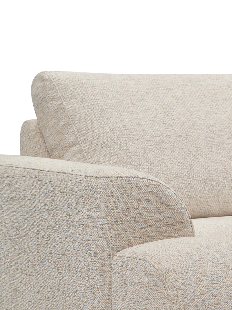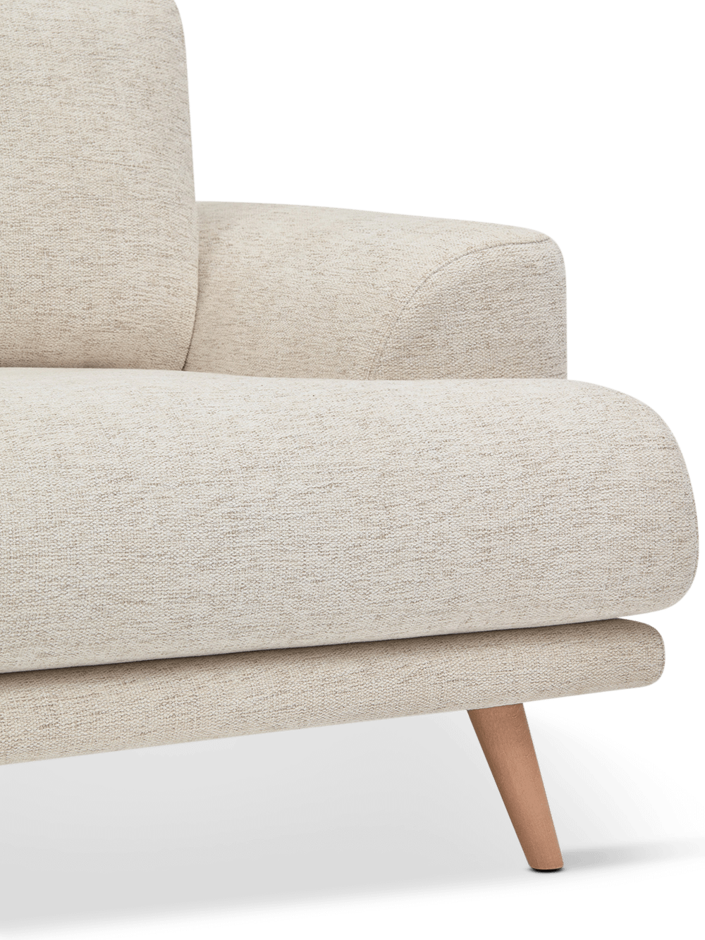 De bekleding in chenille voelt zacht aan en is behandeld om vlekken te weren, waardoor de zetel geschikt is voor intensief dagelijks gebruik. Daarnaast zijn de hoezen van de zit- en rugkussens afneembaar en wasbaar op een fijnwasprogramma. De massief beukenhouten poten zorgen voor een stabiele basis en geven het geheel een warme afwerking.