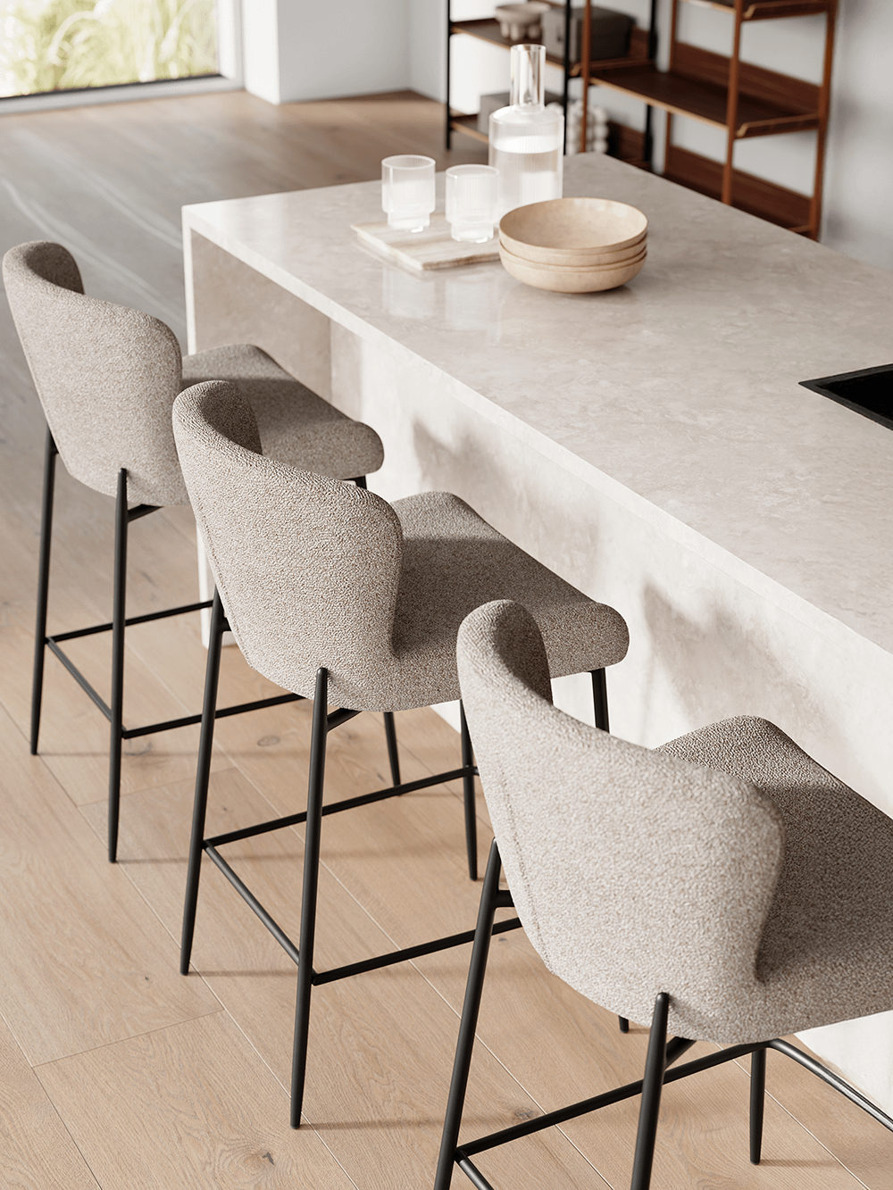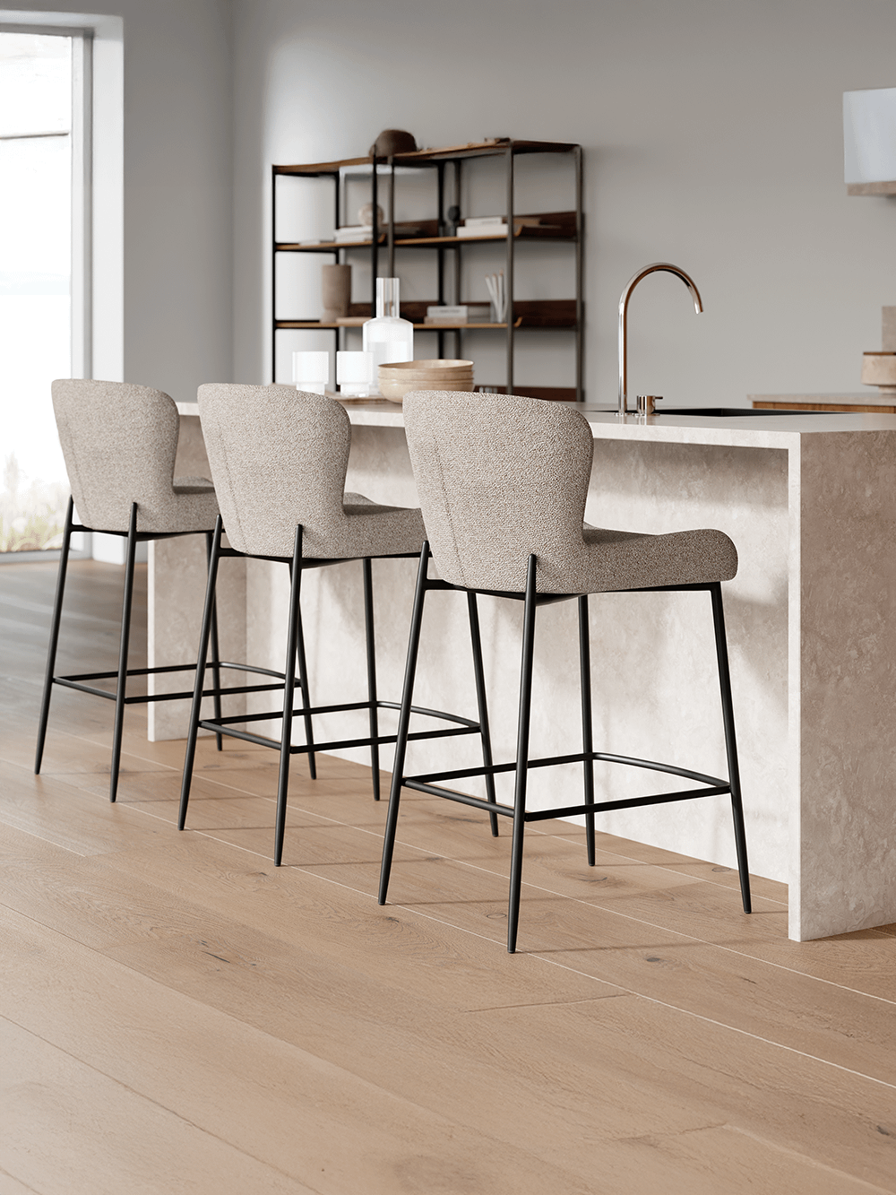 Bij het kiezen van een counterstoel is het belangrijk rekening te houden met de hoogte van jouw keukenblad of tafel. Voor optimaal comfort wordt meestal een verschil van ongeveer 25–30 cm aanbevolen tussen de zithoogte van de stoel en de hoogte van het blad.