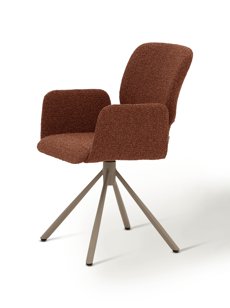 Bekleed in de stof Rythm Brick, brengt Mister T een warme en eigentijdse sfeer in je interieur. De subtiele textuur en dieprode tint zorgen voor een verfijnde look die moeiteloos combineert met natuurlijke materialen en moderne interieurs. De draaifunctie voegt niet alleen functionaliteit toe, maar ook een vleugje speelsheid en flexibiliteit.