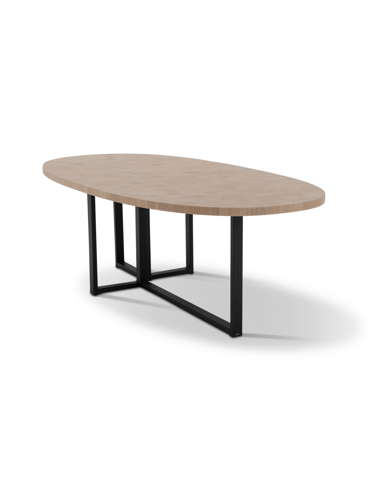 Met haar lengte van 240 cm is Eris gemaakt voor gezellige diners, familiefeesten en lange gesprekken die blijven hangen. De afgeronde contouren zorgen ervoor dat iedereen makkelijk aanschuift, terwijl de vorm ook praktisch is in doorgangen: je beweegt vlotter rond de tafel dan bij een klassieke rechthoek.