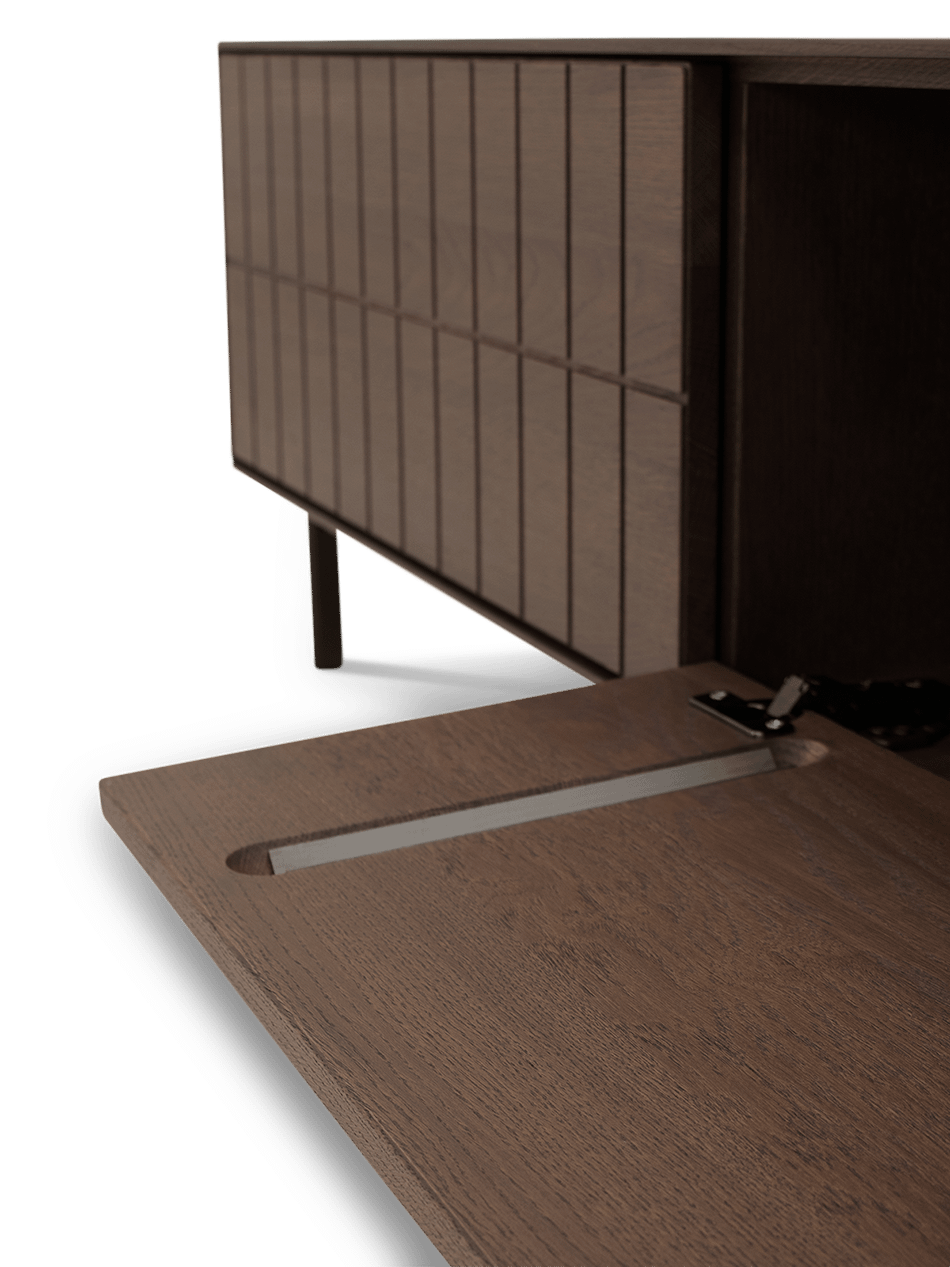 Achter de deuren vind je praktische opbergruimte voor multimedia-apparatuur, kabels en accessoires. Zo hou je je woonkamer netjes en georganiseerd, terwijl alles toch vlot bereikbaar blijft.