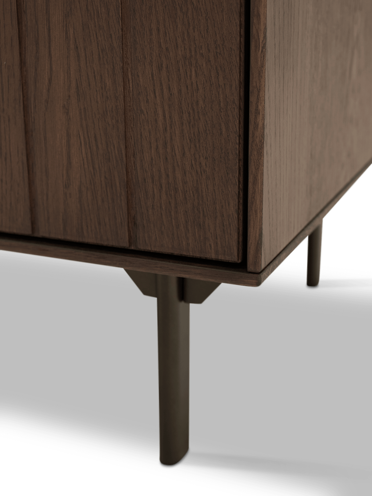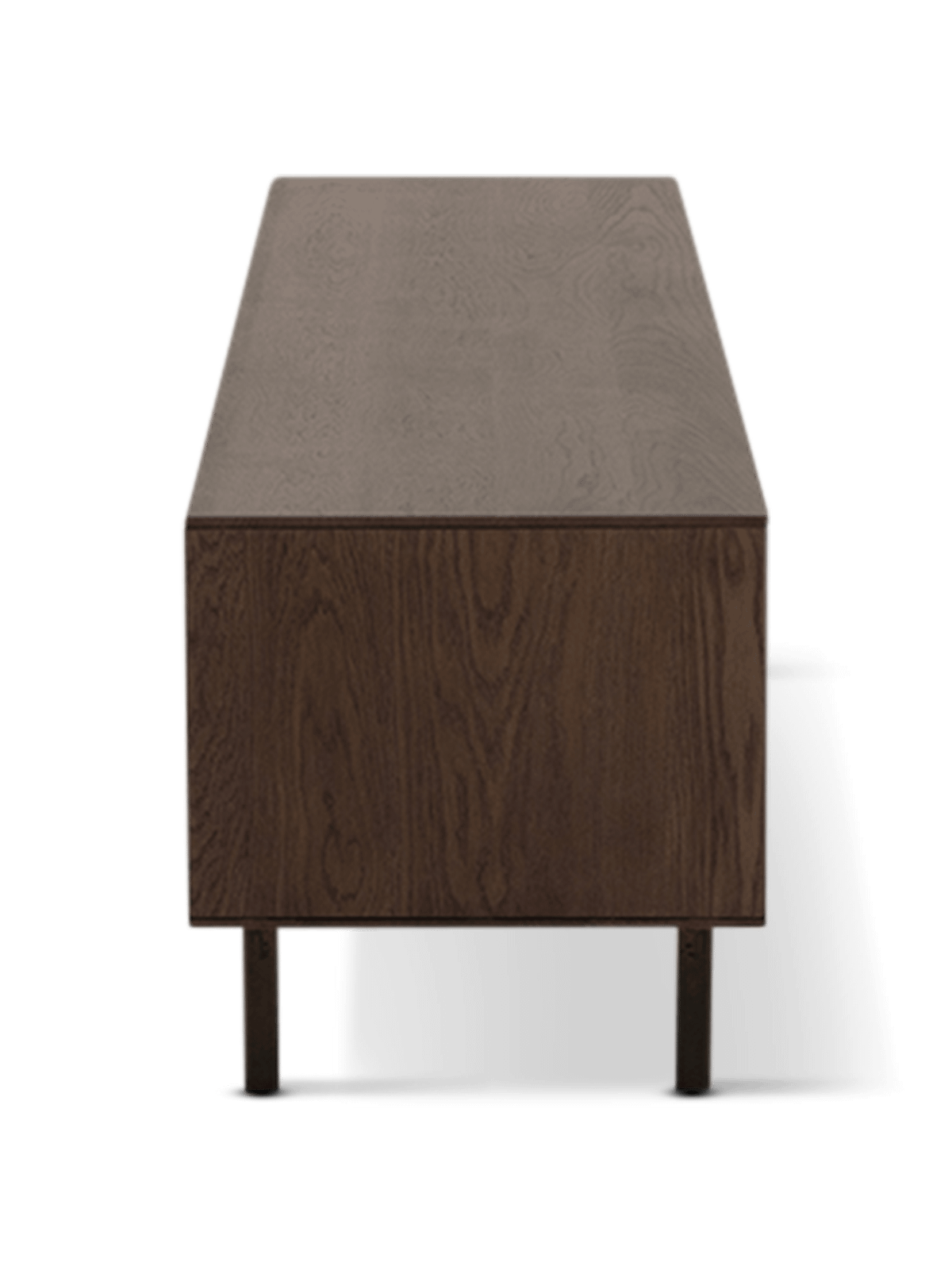 Met zijn ruime breedte biedt dit tv-meubel voldoende plaats voor een televisie en extra decoratie zoals een lamp, boeken of woonaccessoires. De combinatie van het donkere eikenhout en het slanke metalen onderstel geeft het meubel een tijdloze uitstraling die jarenlang mooi blijft.