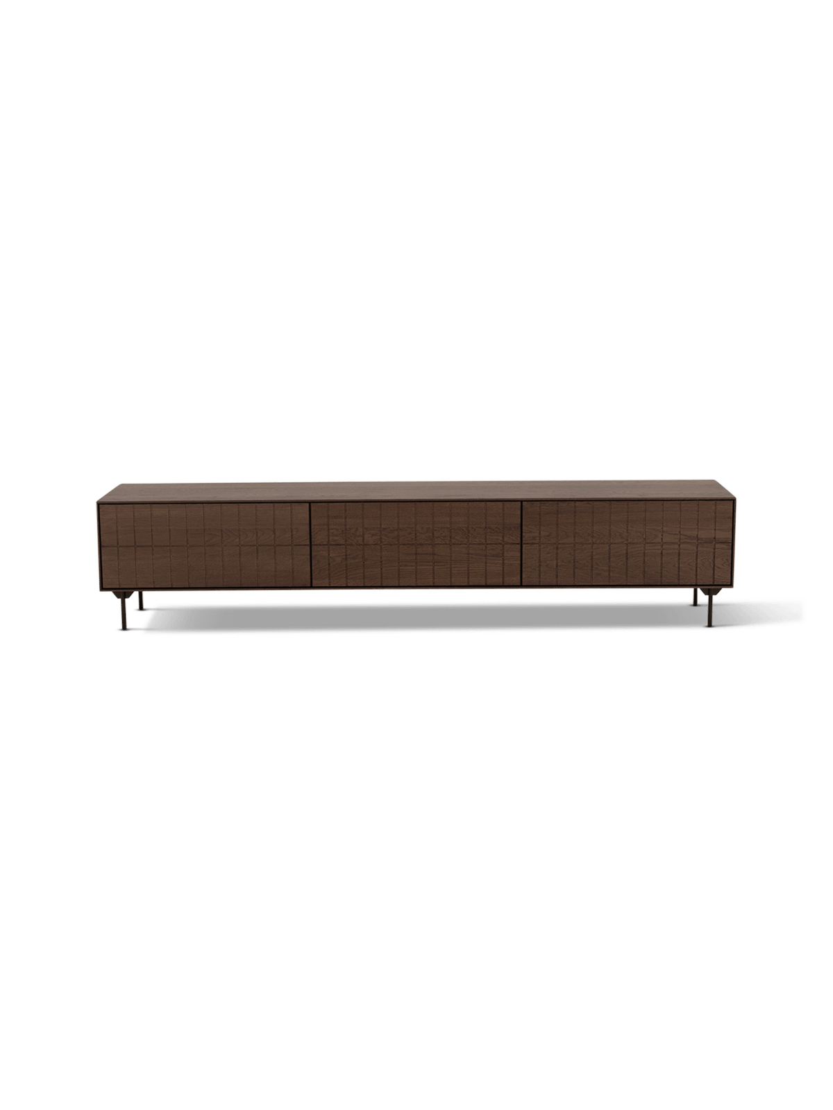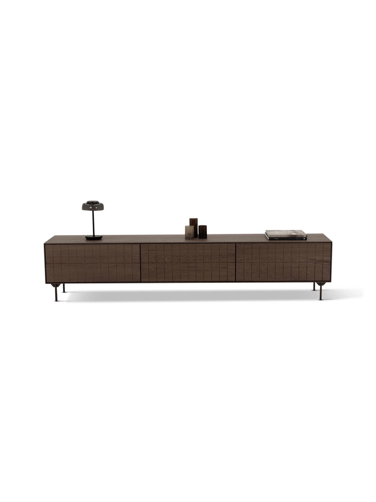 Dankzij de slanke gelakte stalen poten oogt het geheel licht en modern, terwijl het tegelijk een stevige basis behoudt. Hierdoor past dit tv-meubel perfect in zowel moderne als warme interieurs.