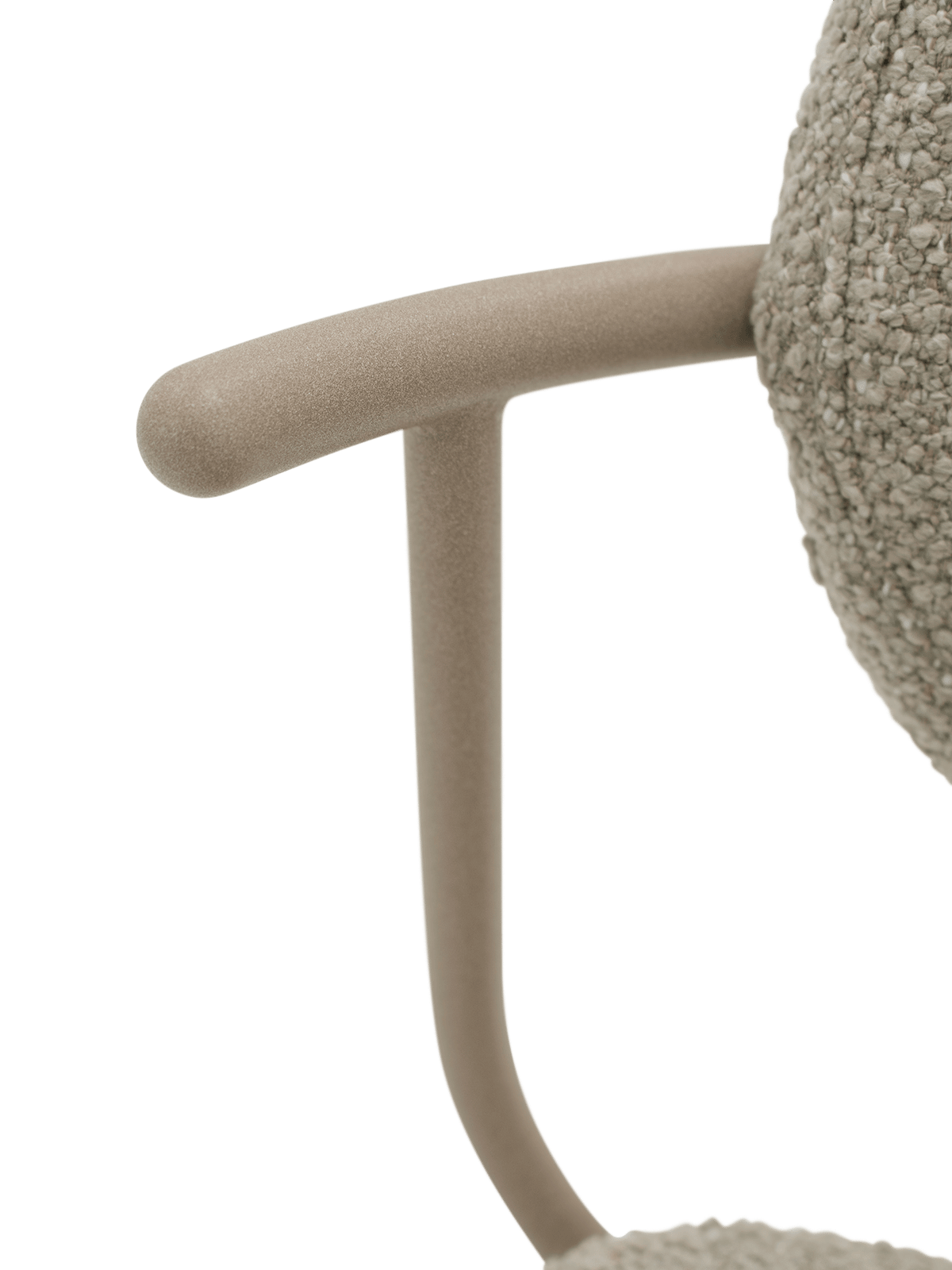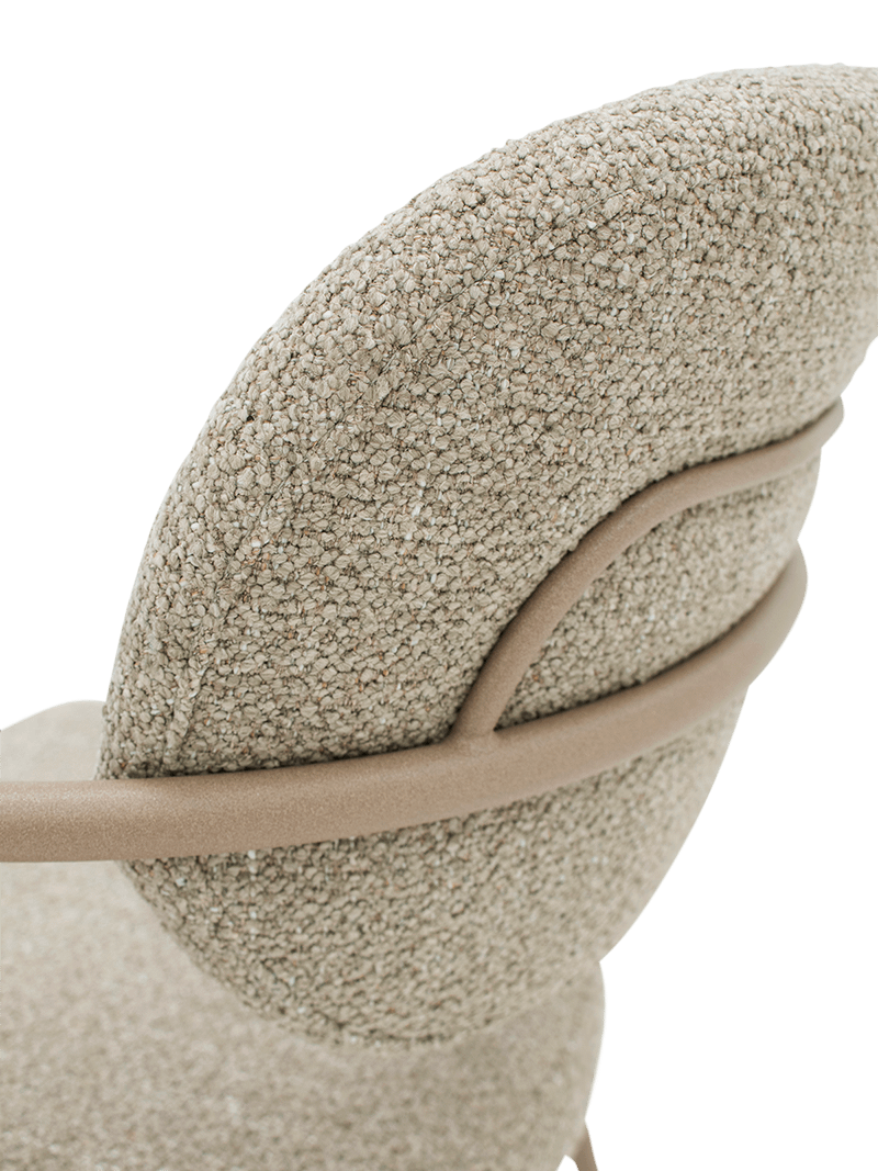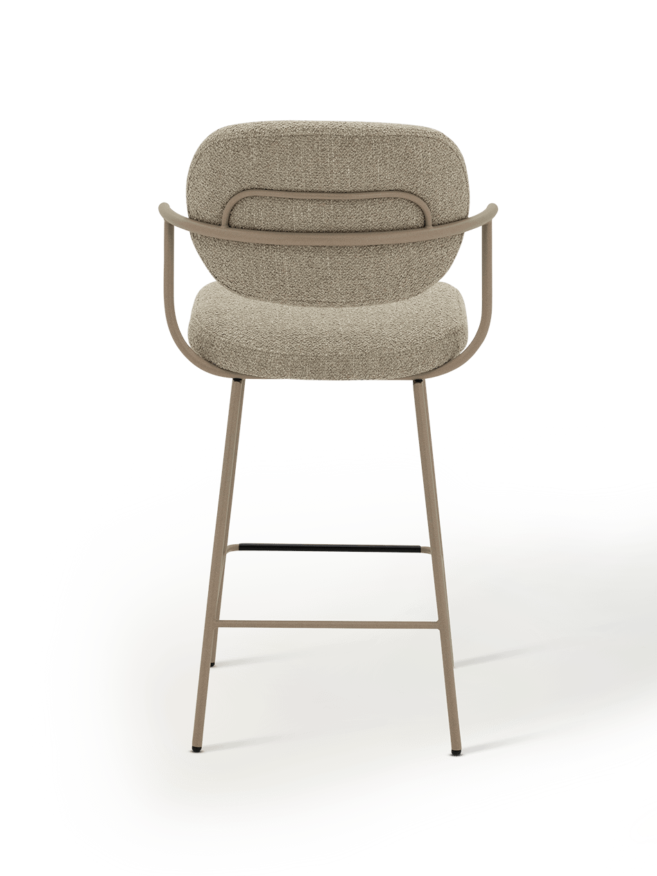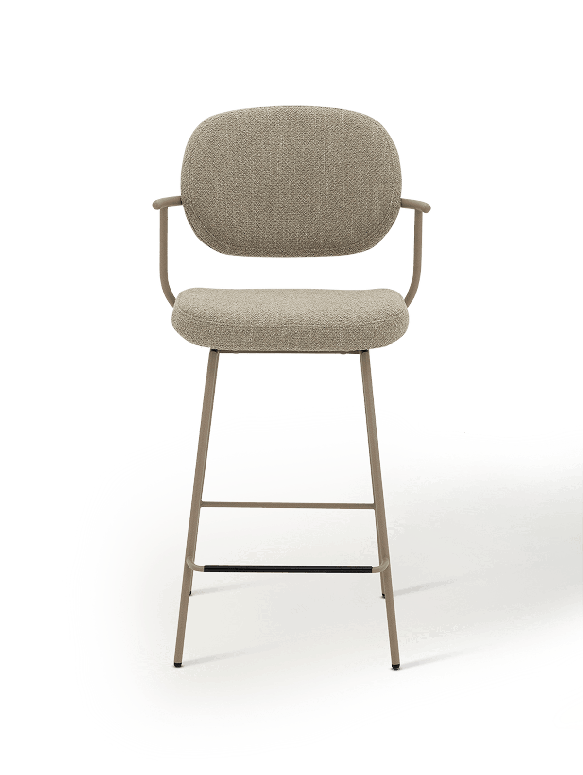 De bekleding in stofkleur Liver zorgt voor een rustige, tijdloze look met een fijne textuur. In combinatie met het onderstel in Latte krijg je een zachte, ton-sur-ton uitstraling die mooi blendt in zowel lichte, natuurlijke interieurs als meer hedendaagse, strakke keukens.