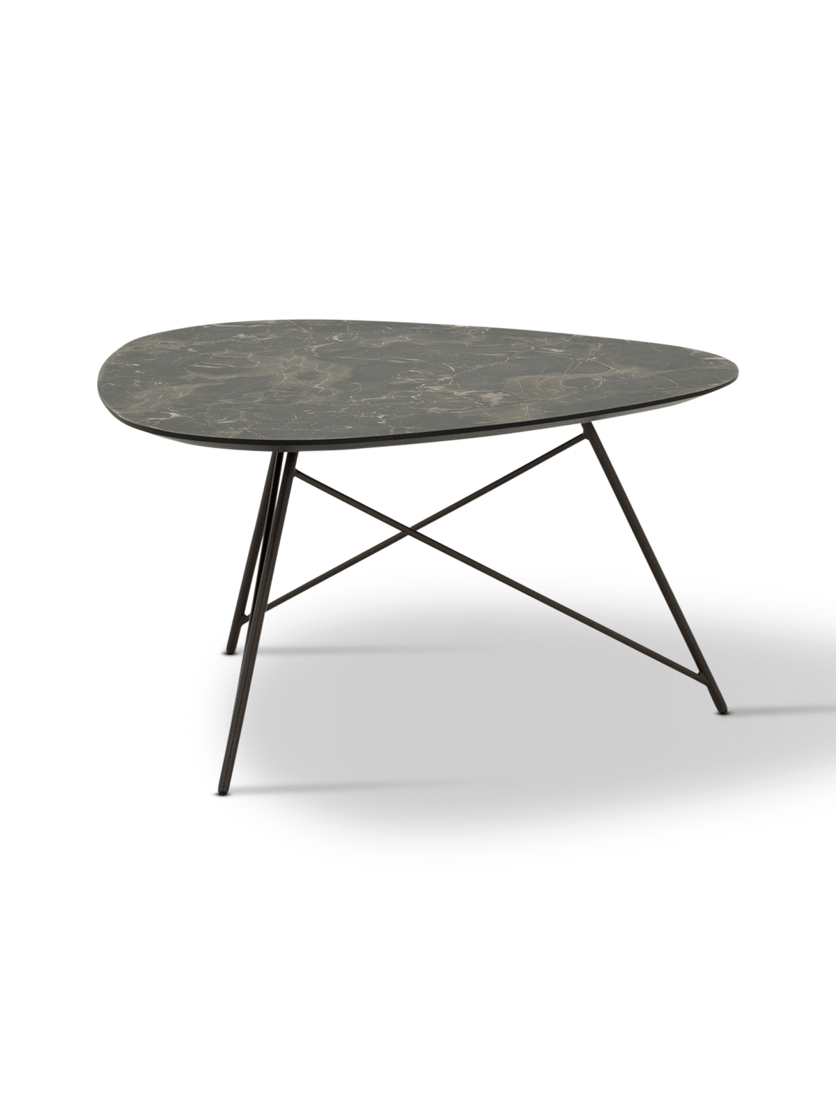 Salontafel Jyve van Bert Plantagie is een elegante keuze voor wie graag een statement maakt in de zithoek, zonder dat het zwaar oogt. Het organische blad met marmerlook geeft meteen een luxueuze toets, terwijl de slanke metalen poten zorgen voor een luchtige, moderne uitstraling. Deze maat is ideaal als centrale salontafel voor je zetel, met voldoende plaats voor drankjes, hapjes en decoratie.
