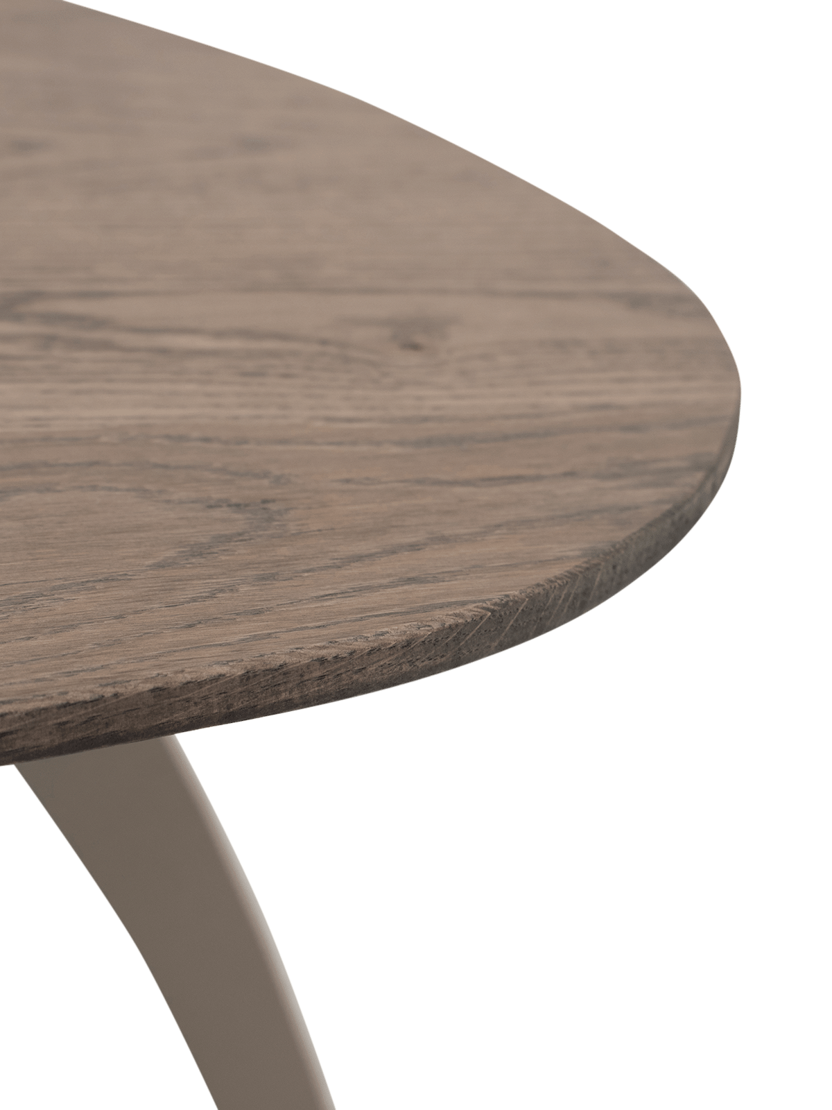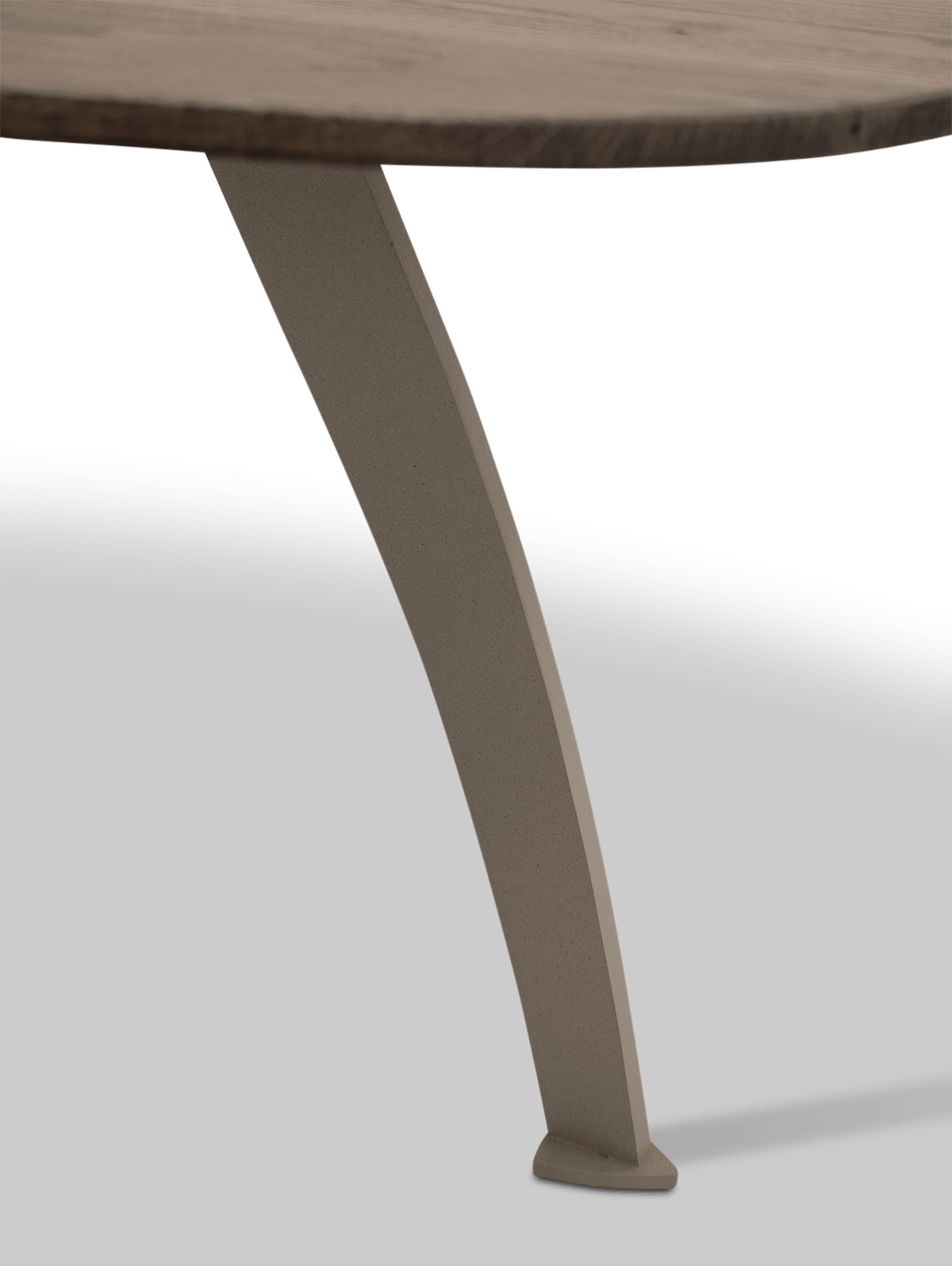 De metalen poten geven de tafel een modern, licht silhouet en zorgen tegelijk voor stabiliteit. De combinatie van het donkere eikenhout met het slanke metaal maakt Pepp makkelijk te combineren met zowel moderne als meer warme interieurs.