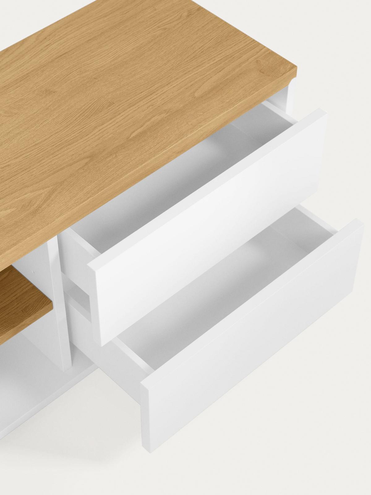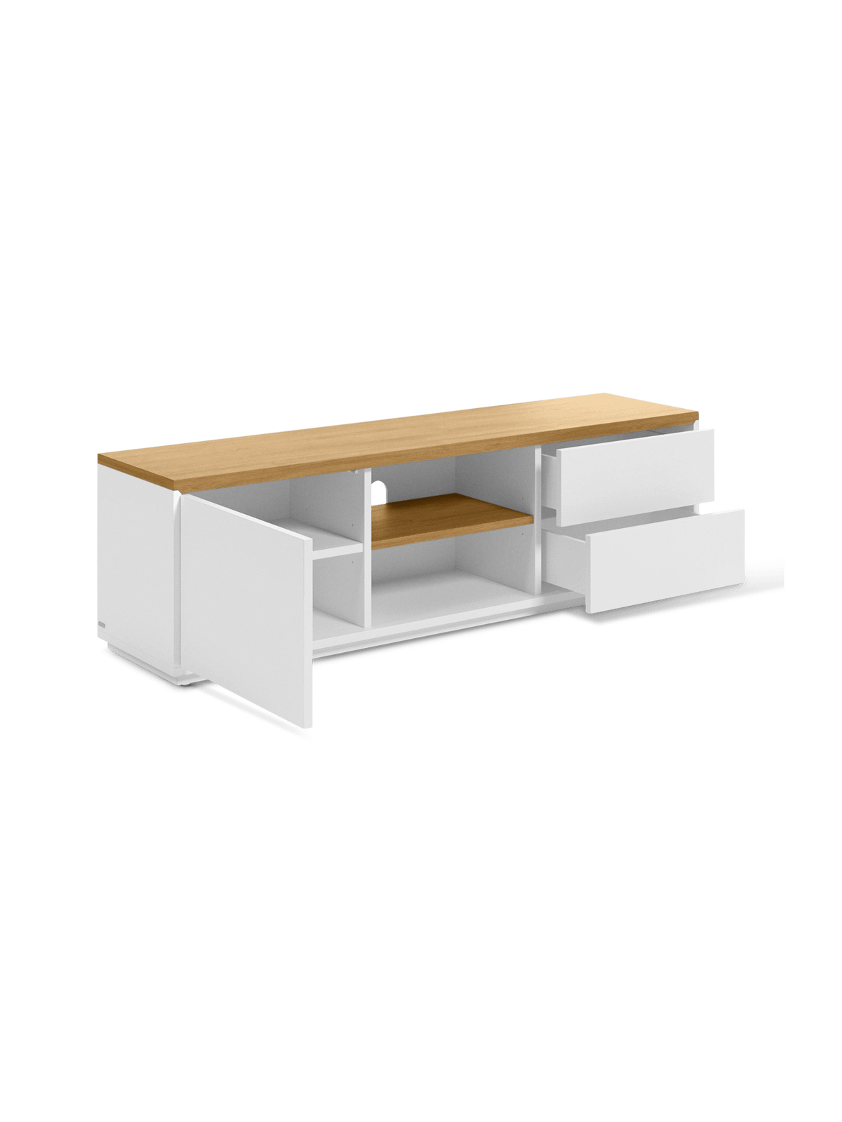Abilen wit gelakt tv-meubel van eikenfineer met 1 deur & 2 lades, 150 x 44 cm FSC100%