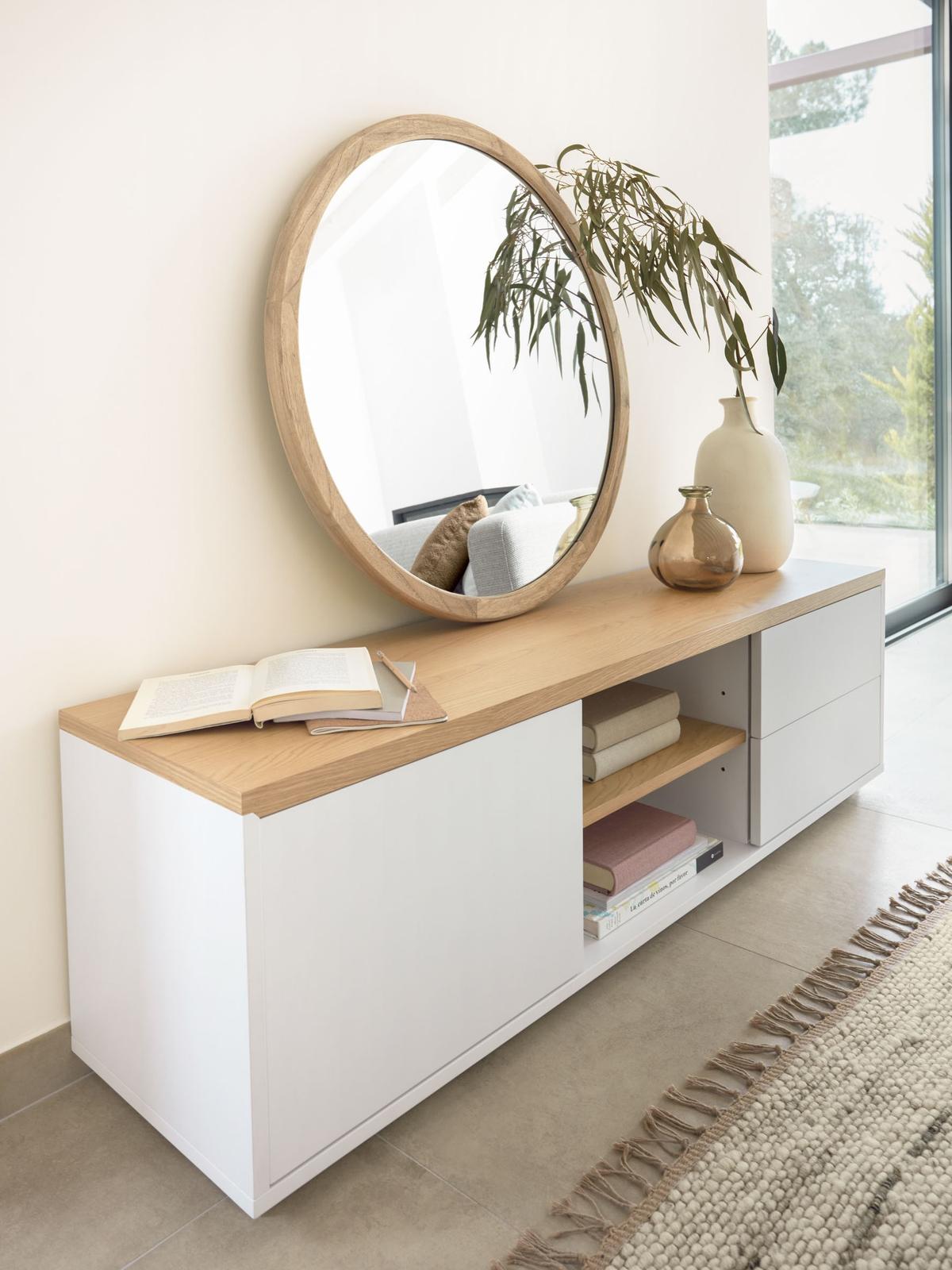 Wat de stijl van je bank ook is, een goed tv-meubel is essentieel voor je woonkamer. Abilen is de perfecte oplossing en biedt ruimte voor je favoriete spullen op het eikenhouten blad plus veel opbergruimte achter de wit gelakte deuren.