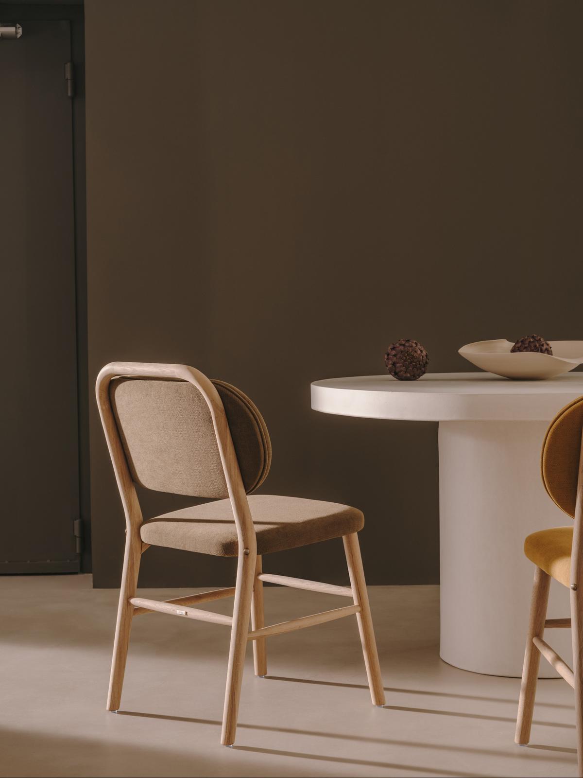 Helda stoel in groene chenille en massief eikenhout FSC Mix Credit