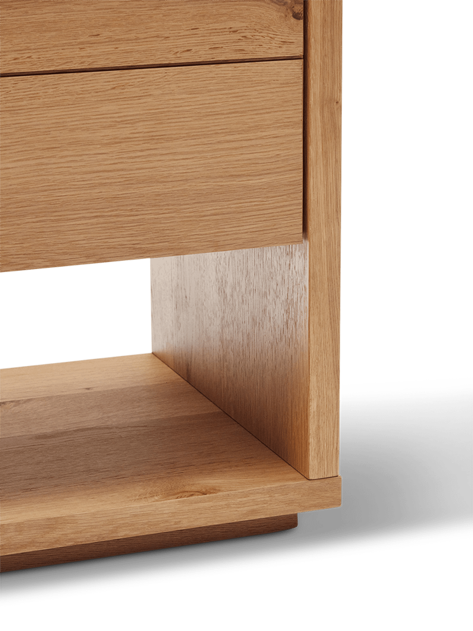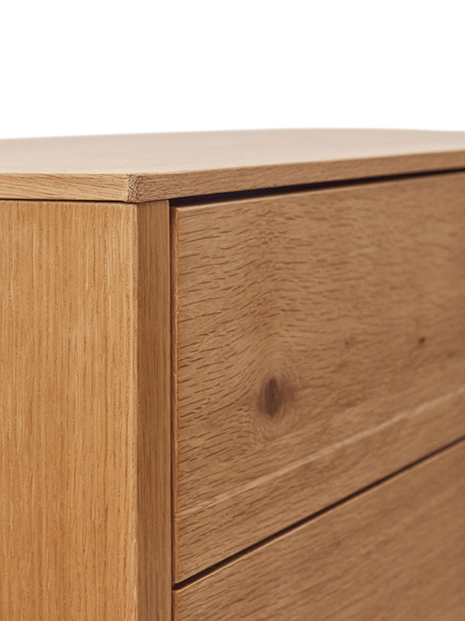 Het team van Kave Home heeft Alguema ontworpen, een collectie die rust en kalmte uitstraalt dankzij de minimalistische stijl en de afwerking met natuurlijk eikenfineer.