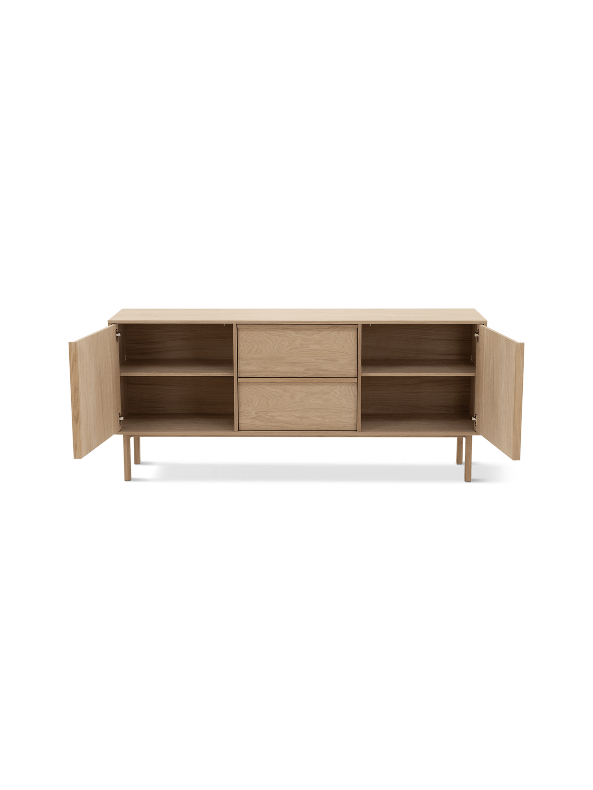 Dankzij de combinatie van twee deuren en twee lades biedt dit dressoir voldoende opbergruimte voor al je spullen. Of het nu gaat om servies, tafellinnen of andere accessoires, alles krijgt een overzichtelijke plaats. De stevige constructie en kwalitatieve afwerking zorgen ervoor dat je jarenlang kan genieten van zowel het gebruiksgemak als de uitstraling van dit meubel.