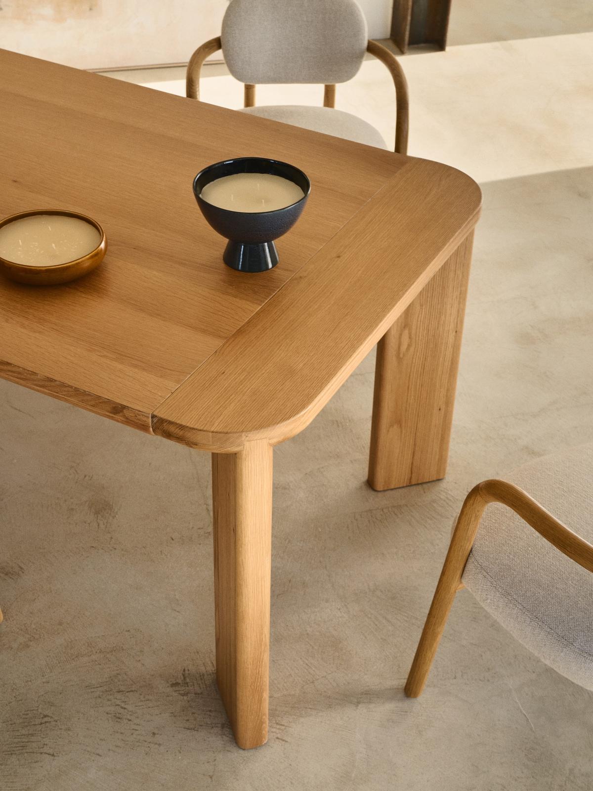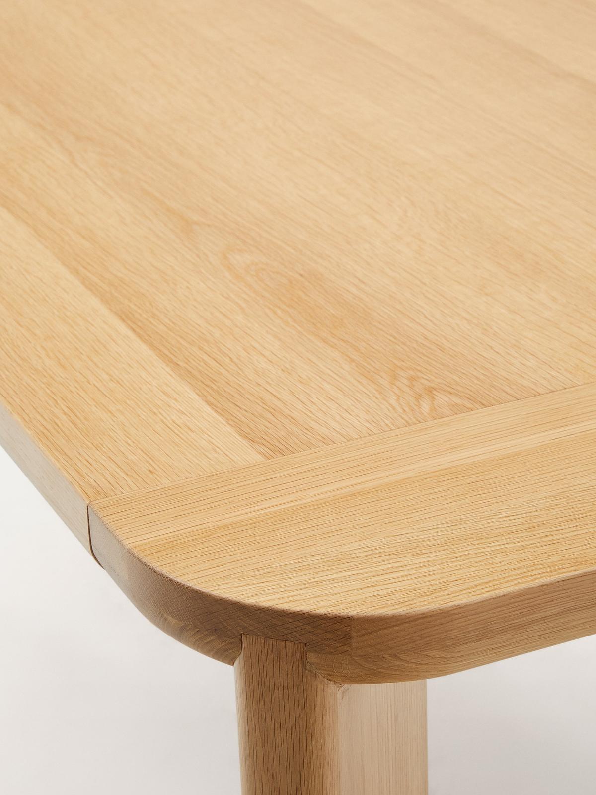 Benut je eetkamer optimaal met de uitschuifbare tafel Jondal. Deze grote tafel is perfect voor etentjes met familie en vrienden. Dit elegante, comfortabele ontwerp van Kave Home is gemaakt van eikenhout en heeft schuine poten.