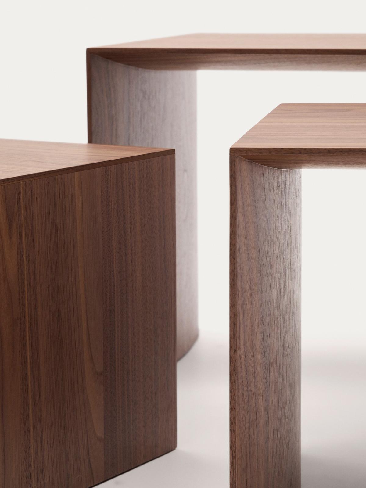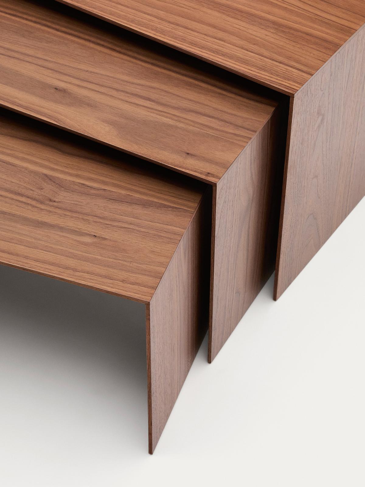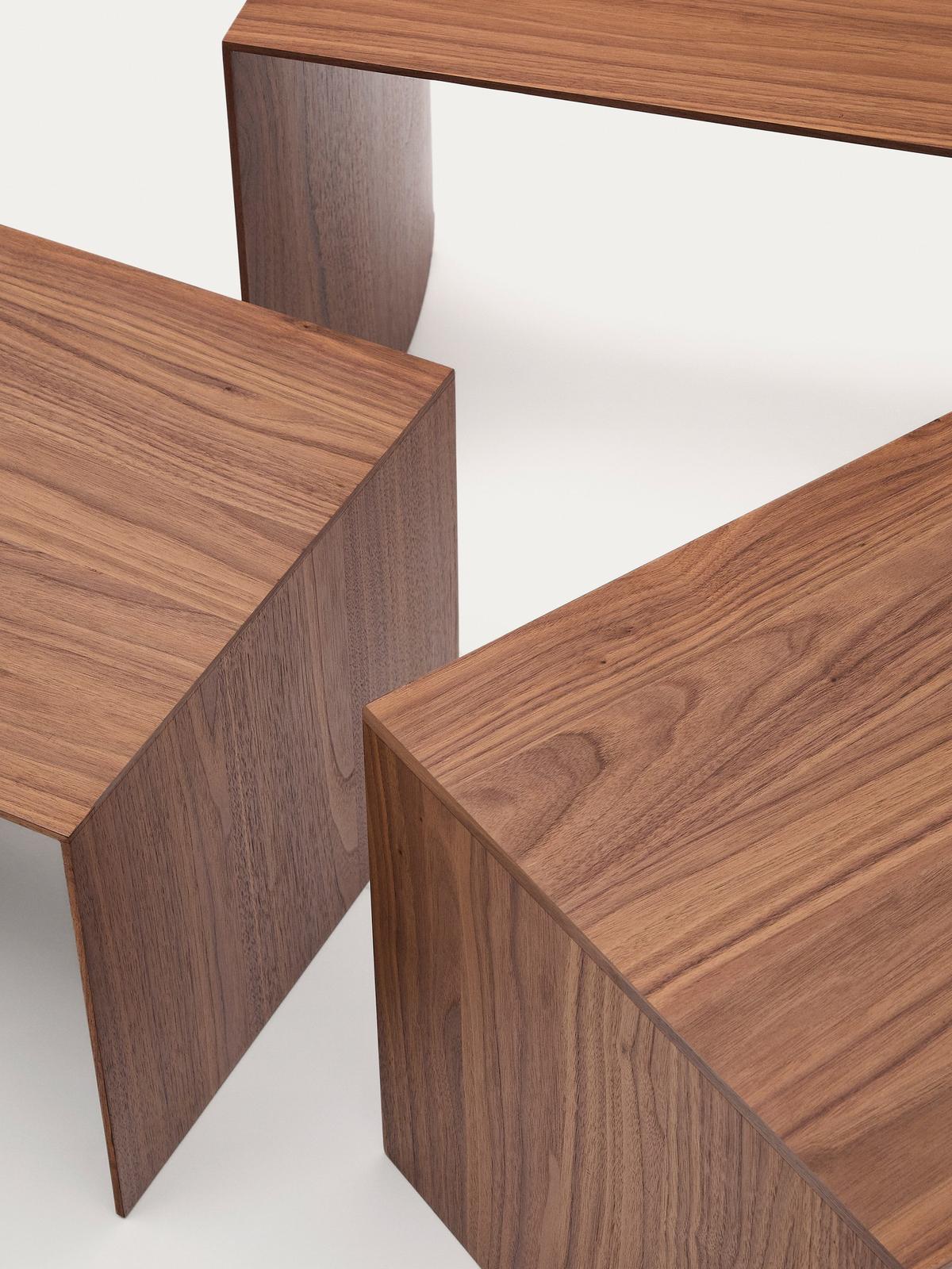 Set van 3 in elkaar passende bijzettafels Litto van natuurlijk afgewerkt walnootfineer FSC Mix Credit 60 x 40 / 51 x 36 / 42 x 31 cm