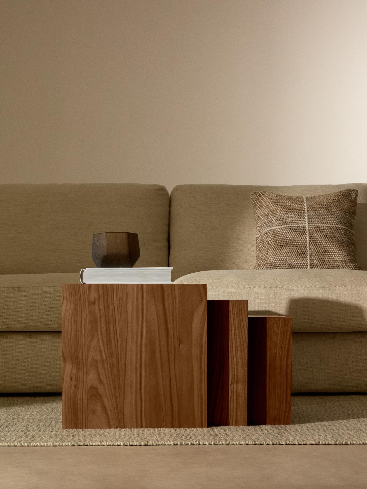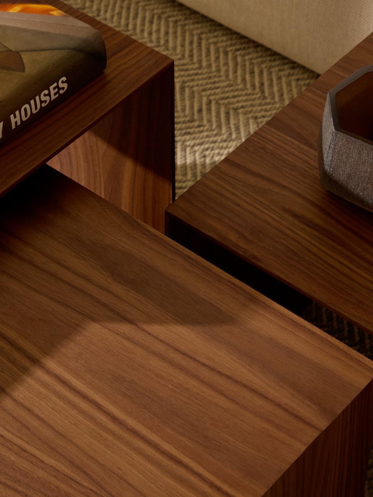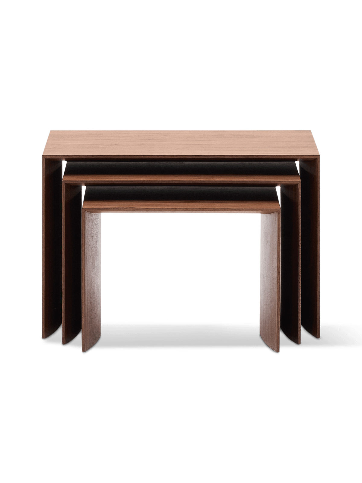 Set van 3 in elkaar passende bijzettafels Litto van natuurlijk afgewerkt walnootfineer FSC Mix Credit 60 x 40 / 51 x 36 / 42 x 31 cm