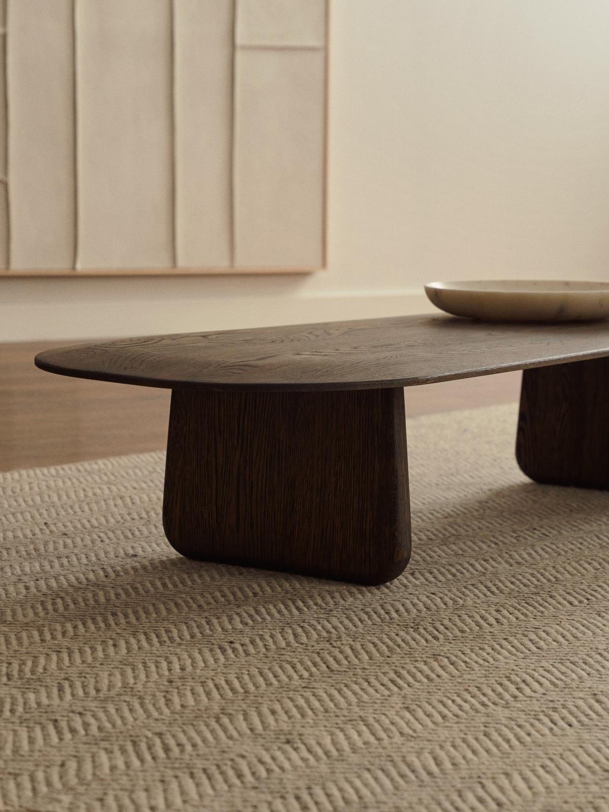Verhoog je ruimtes met het tijdloze ontwerp van de Pirita bijzet- en salontafels. Met hun afgeronde, organische vormen en gemaakt van massief eikenhout, kunnen ze gecombineerd worden in sets bijzettafels om te spelen met volume en hoogte.
