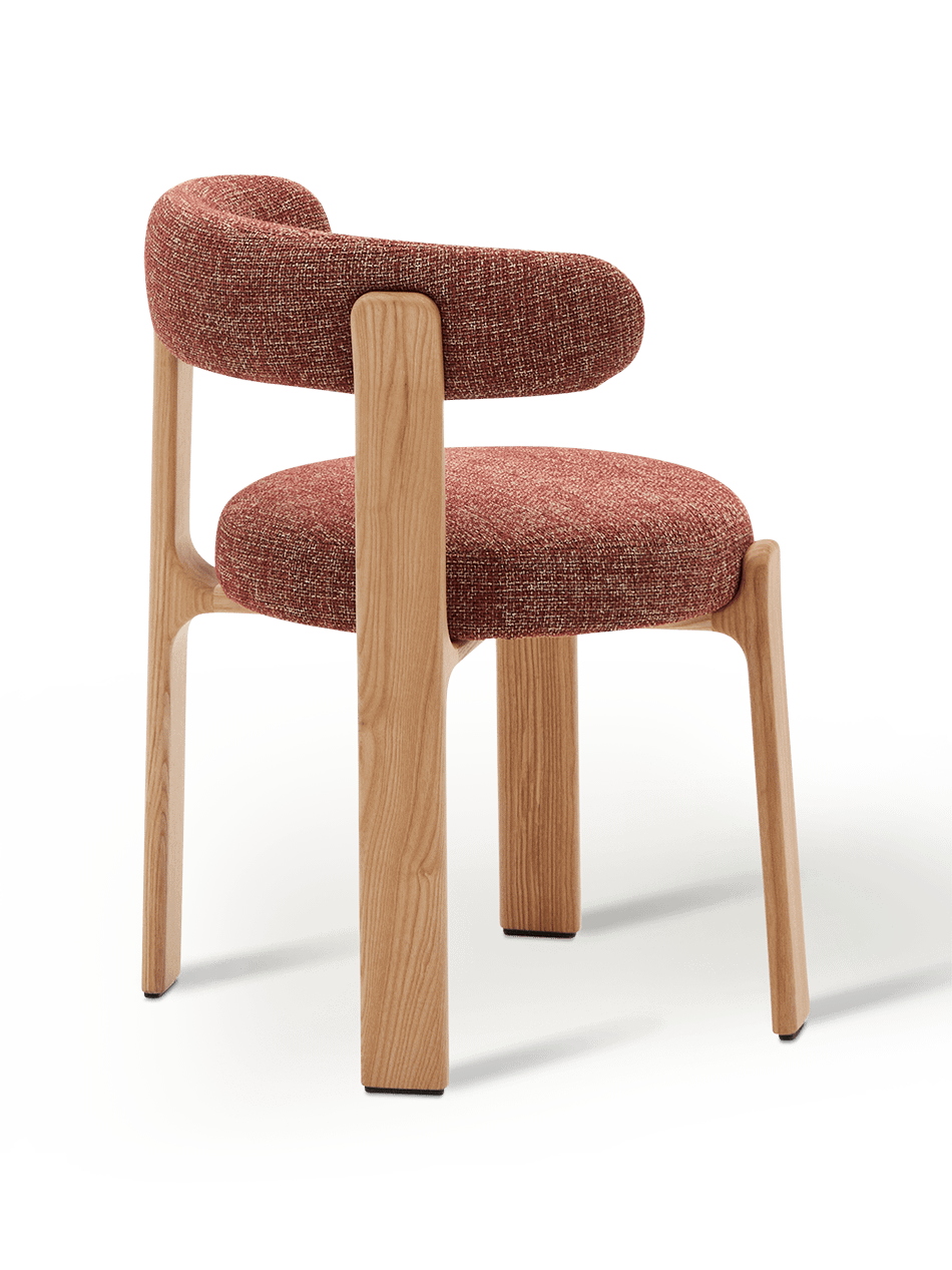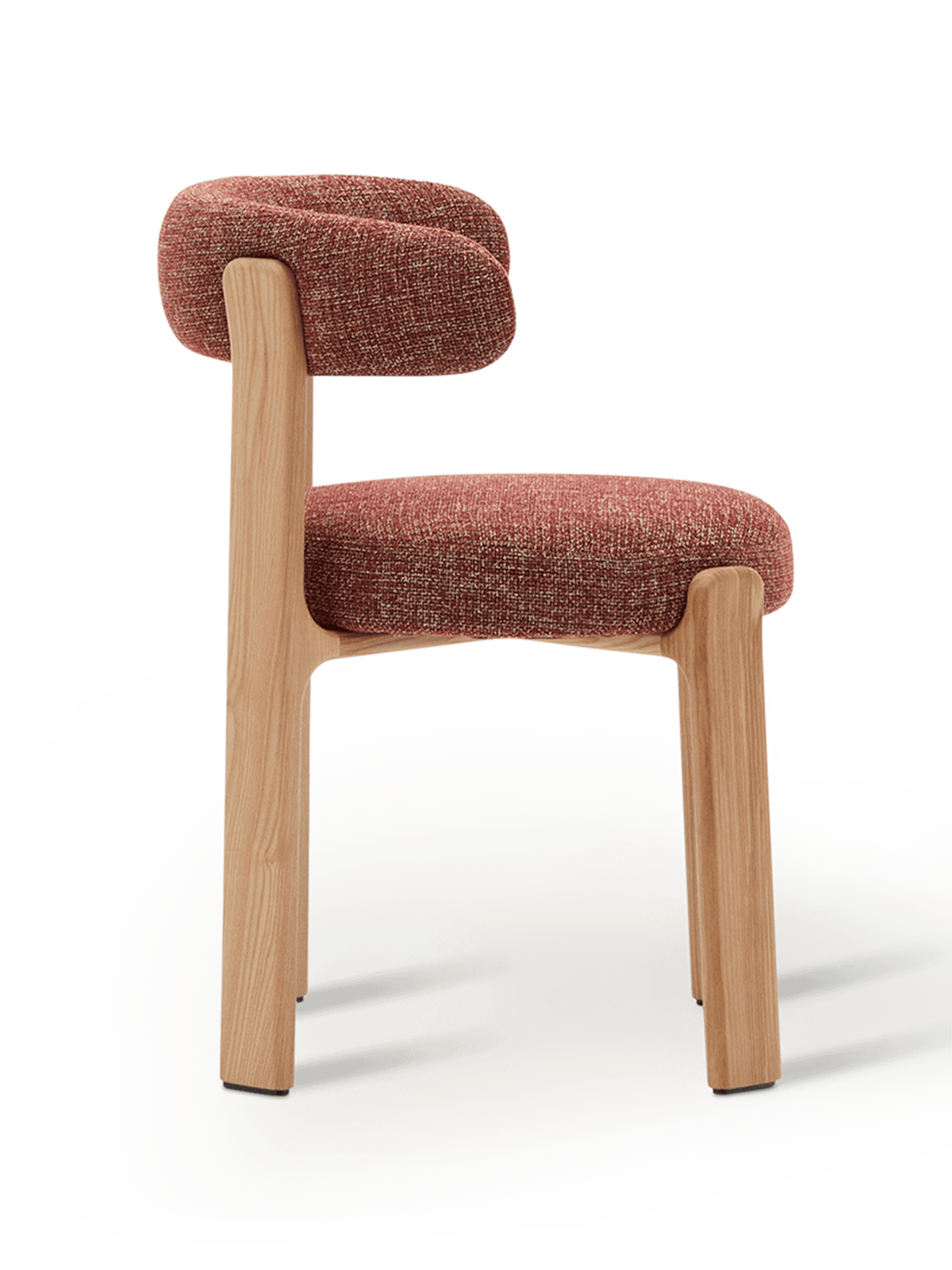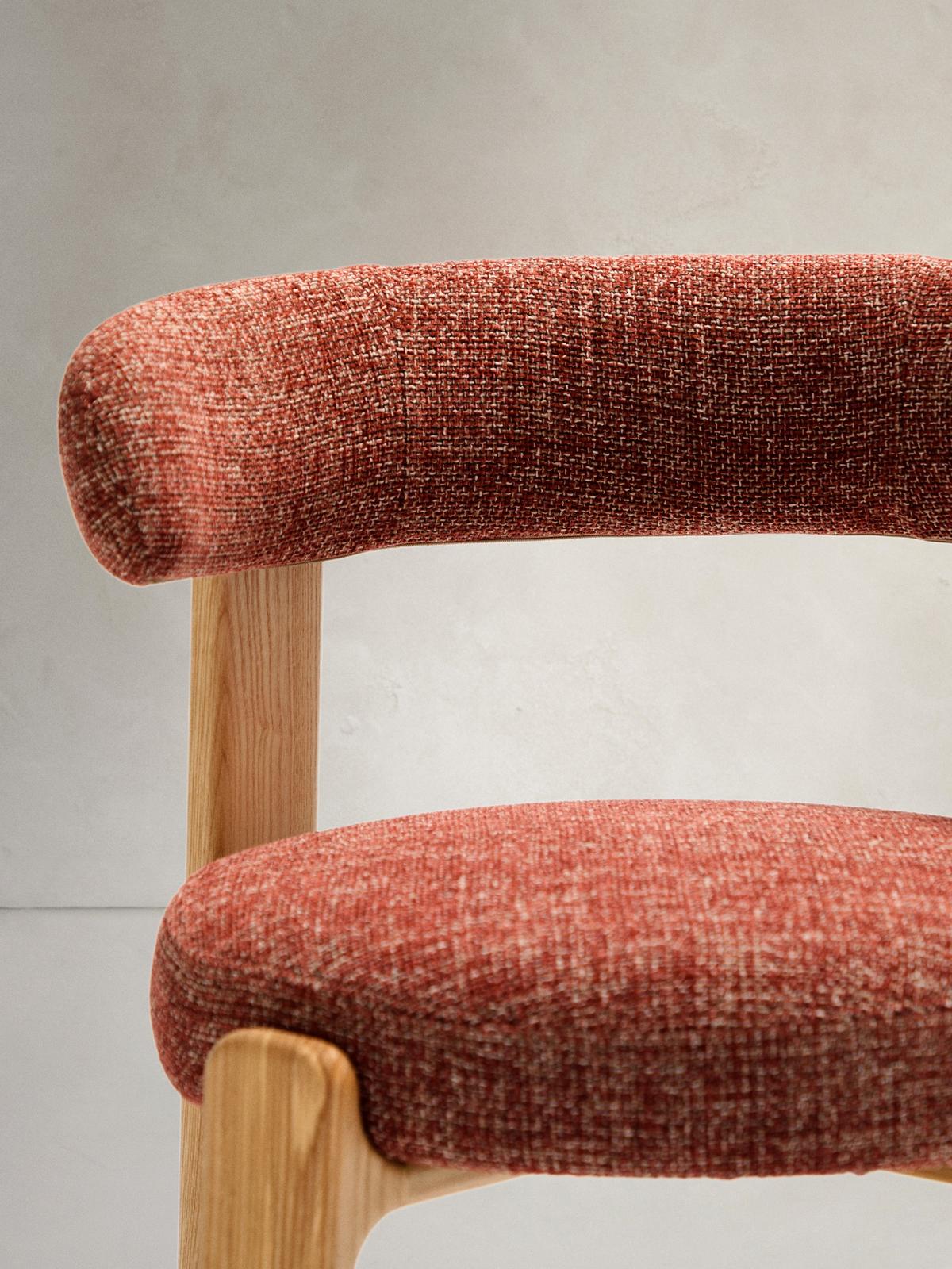 Granite stoel in terracotta chenille en massief essenhout in naturel toon afwerking FSC 100%