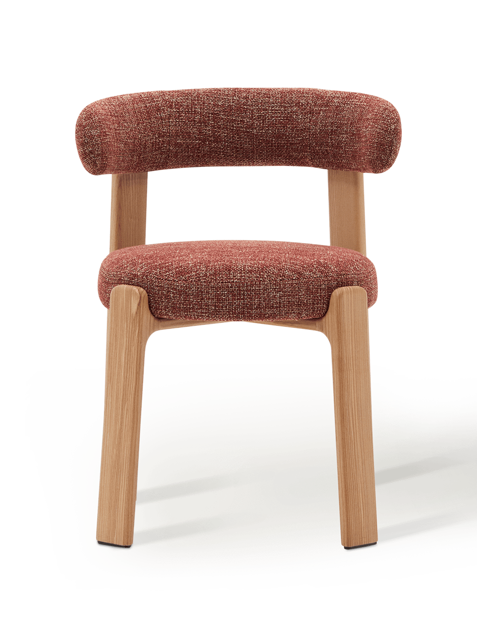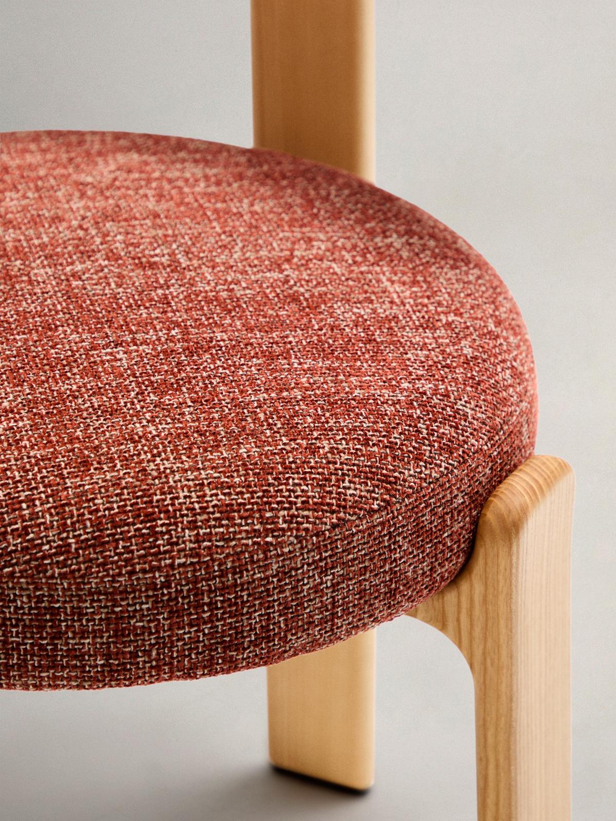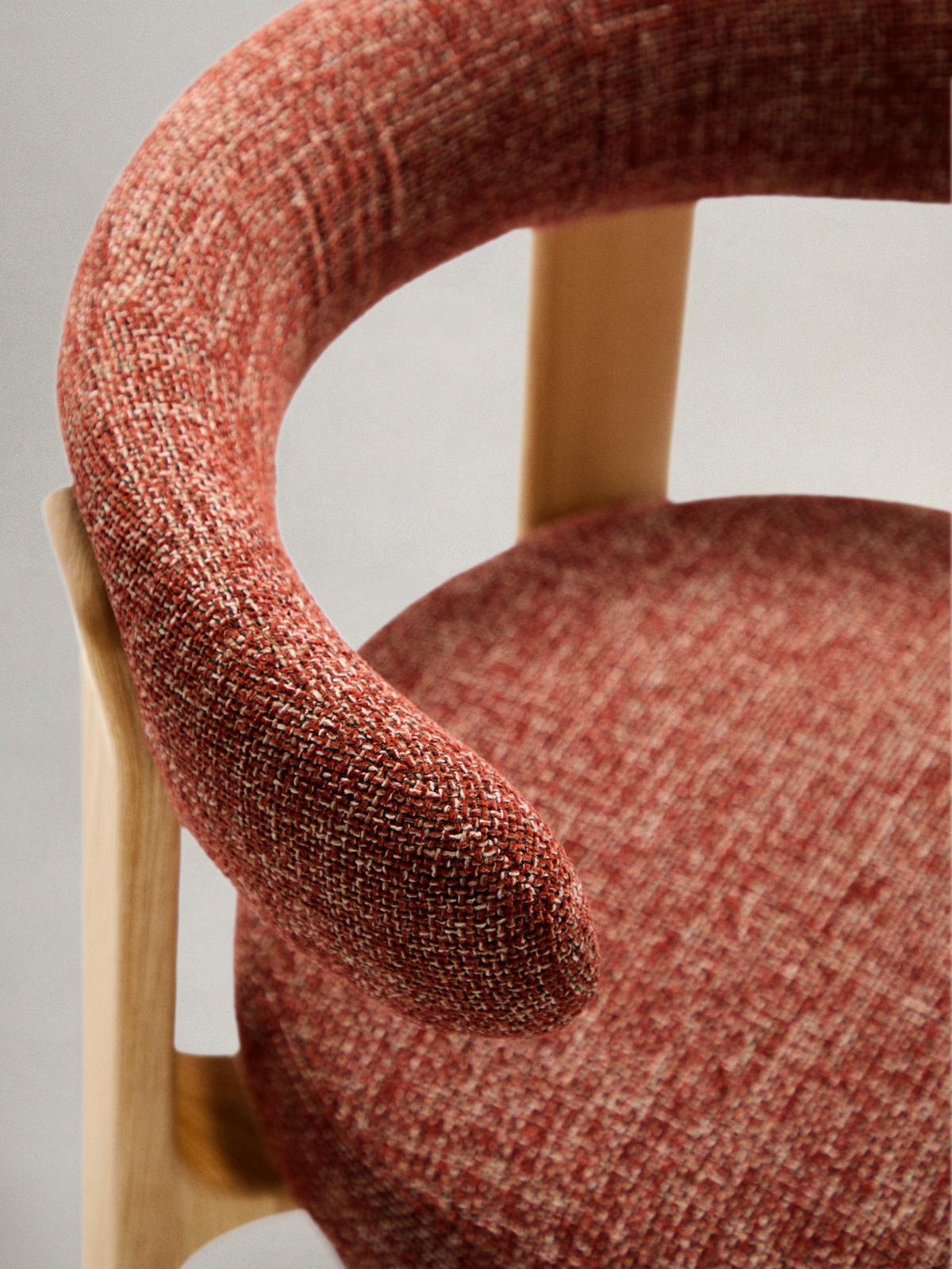 Granite stoel in terracotta chenille en massief essenhout in naturel toon afwerking FSC 100%
