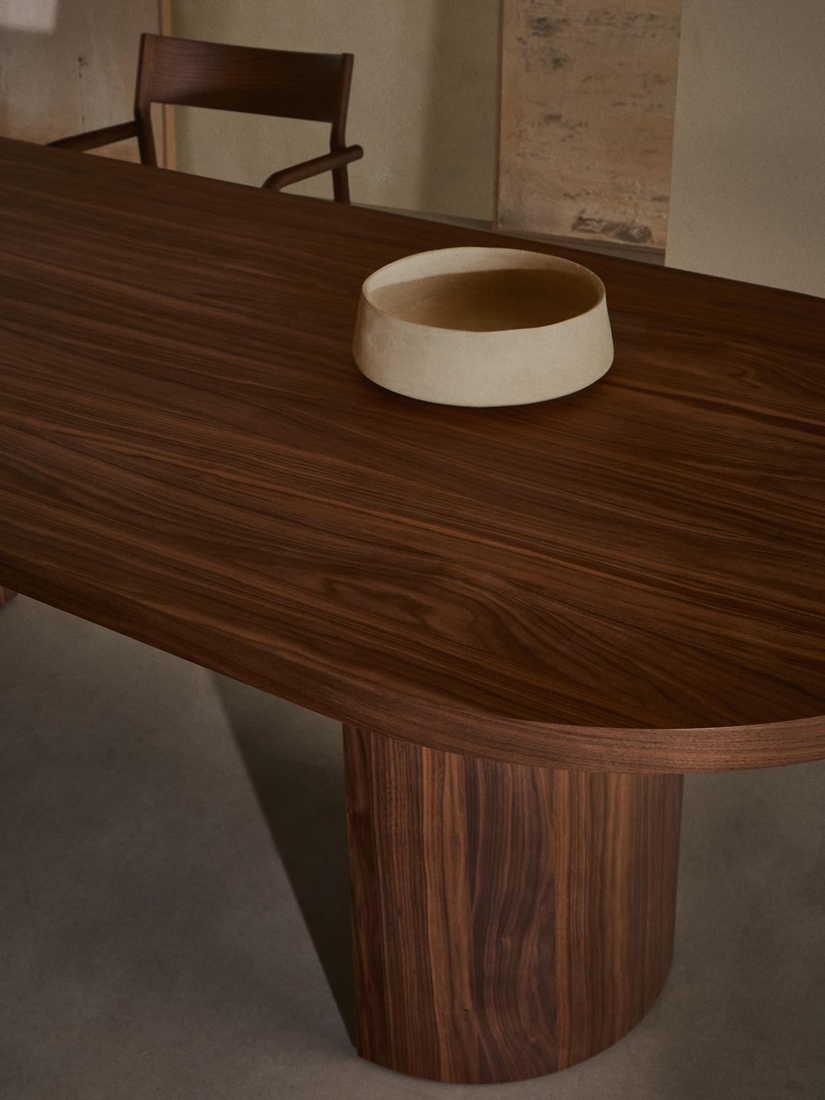 Nealy is de prefecte balans tussen eenvoud en flexibiliteit. Het ontwerp is sculpturaal met ronde en rechte lijnen en je kunt de poten in twee posities monteren om je eigen ontwerp te maken. In het walnootfineer zie je goed de nerven van het hout.