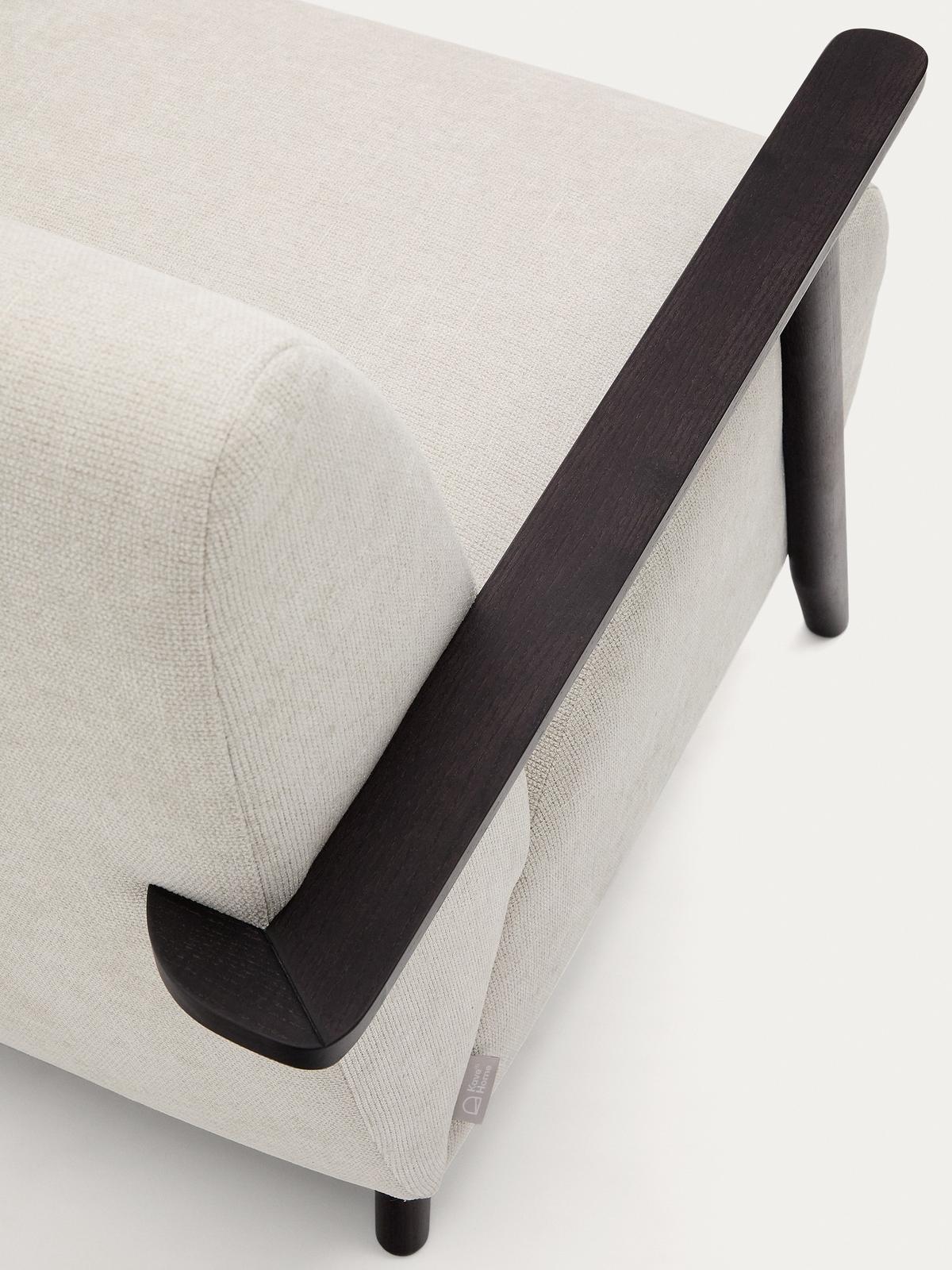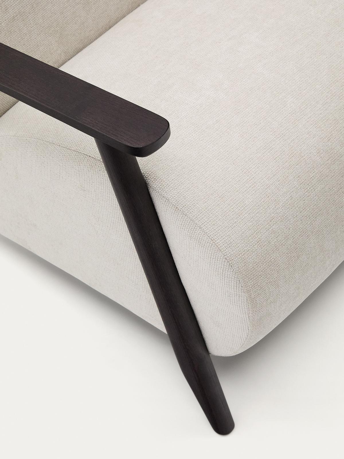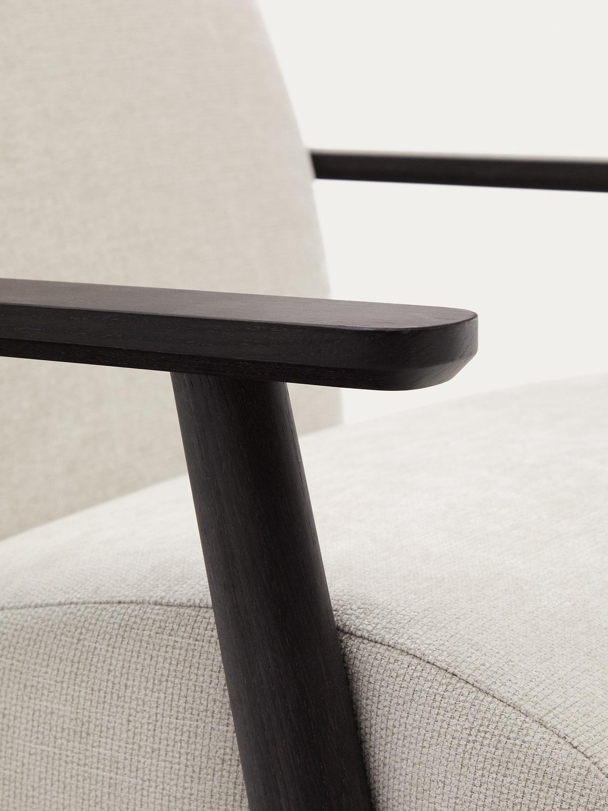 Fauteuil Meghan in parelkleurige chenille en van massief essenhout met wengé afwerking FSC Mix Credit