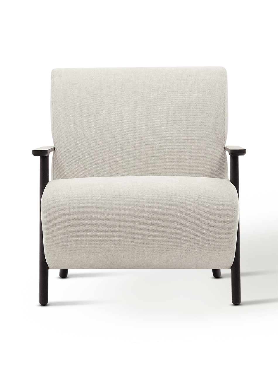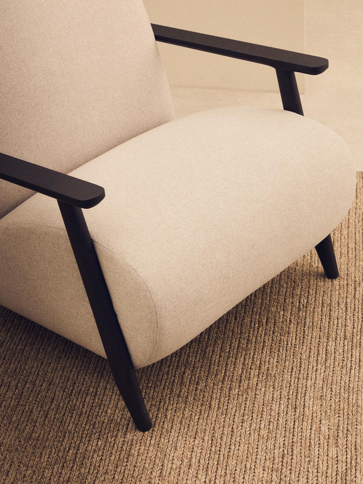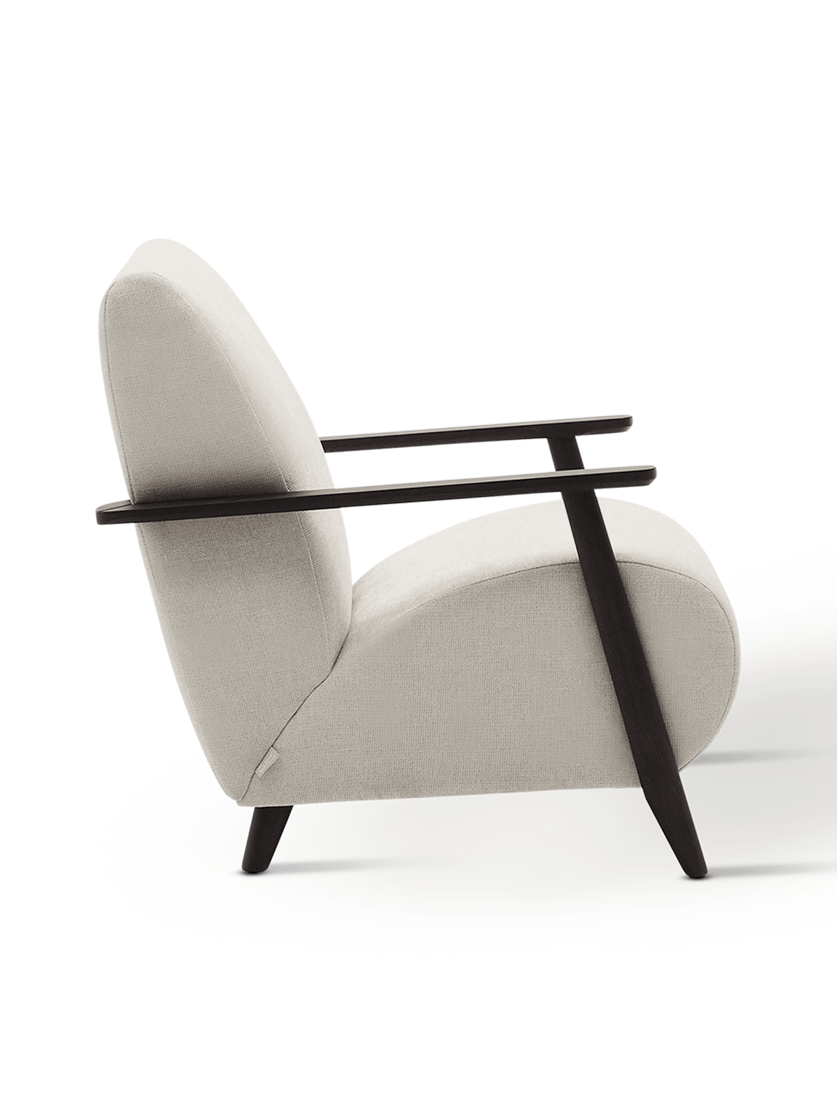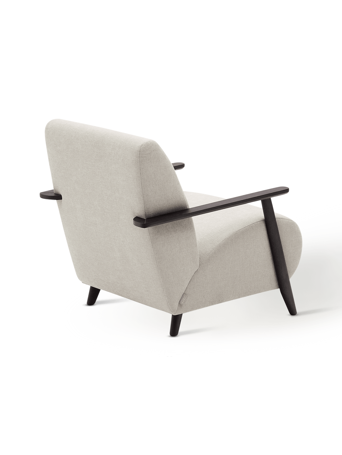 Het ontwerp van deze fauteuil wordt gedefinieerd door zijn eenvoudige, minimalistische karakter. Een informele stijl die wordt bereikt door de combinatie van de zichtbare structuur van de fauteuil, in massief essenhout, en de bekleding.