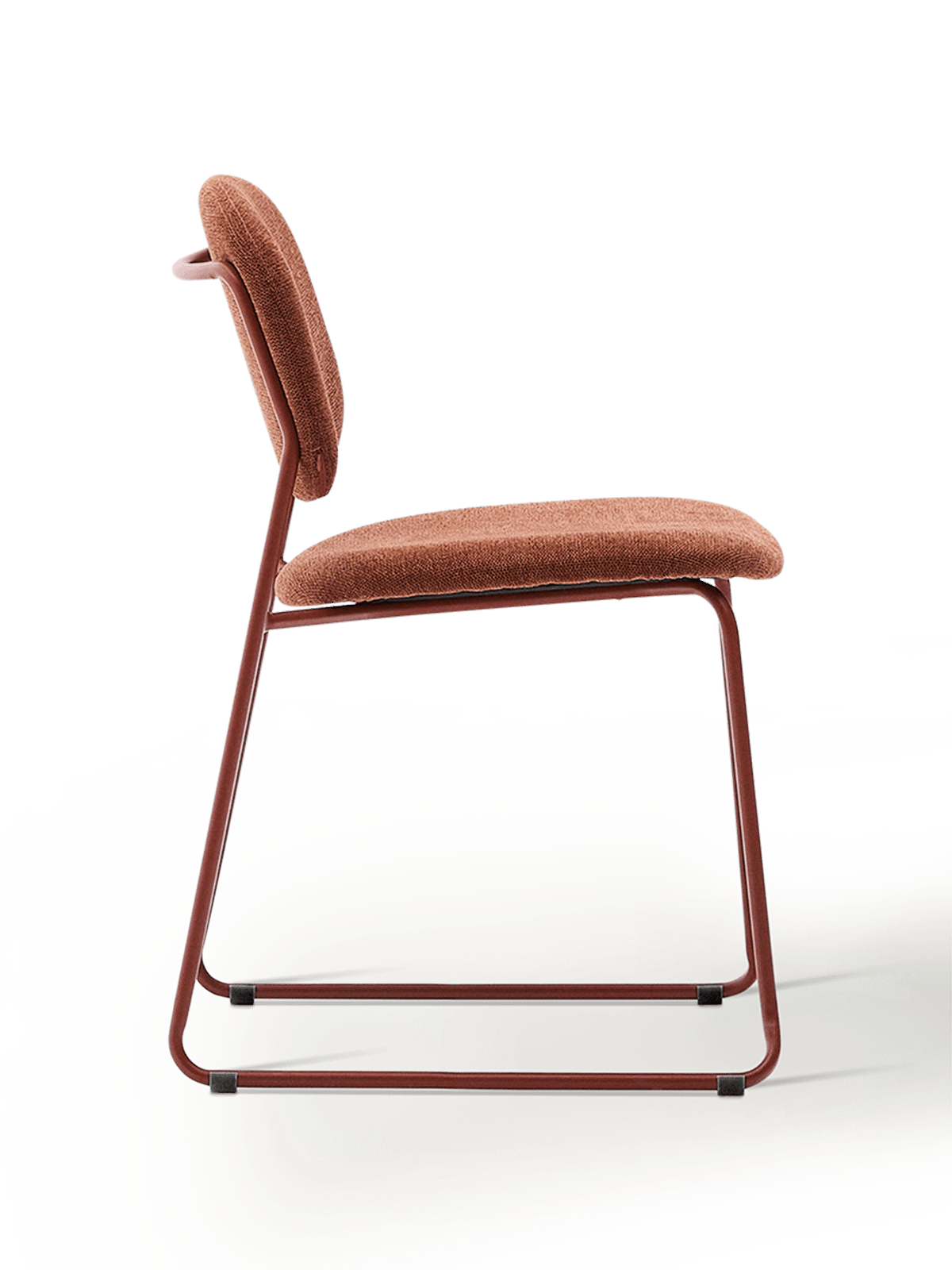 Meli stapelbare stoel in terracotta chenille met terracotta metalen poten FSC Mix Credit