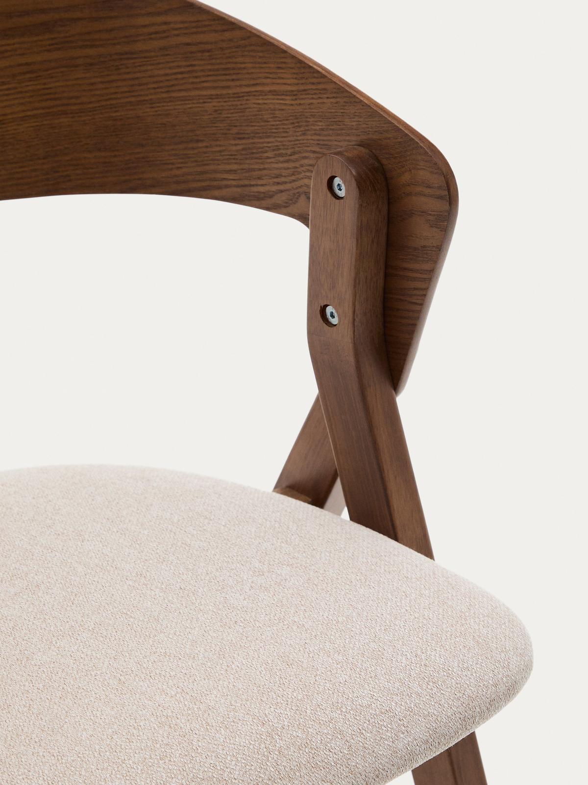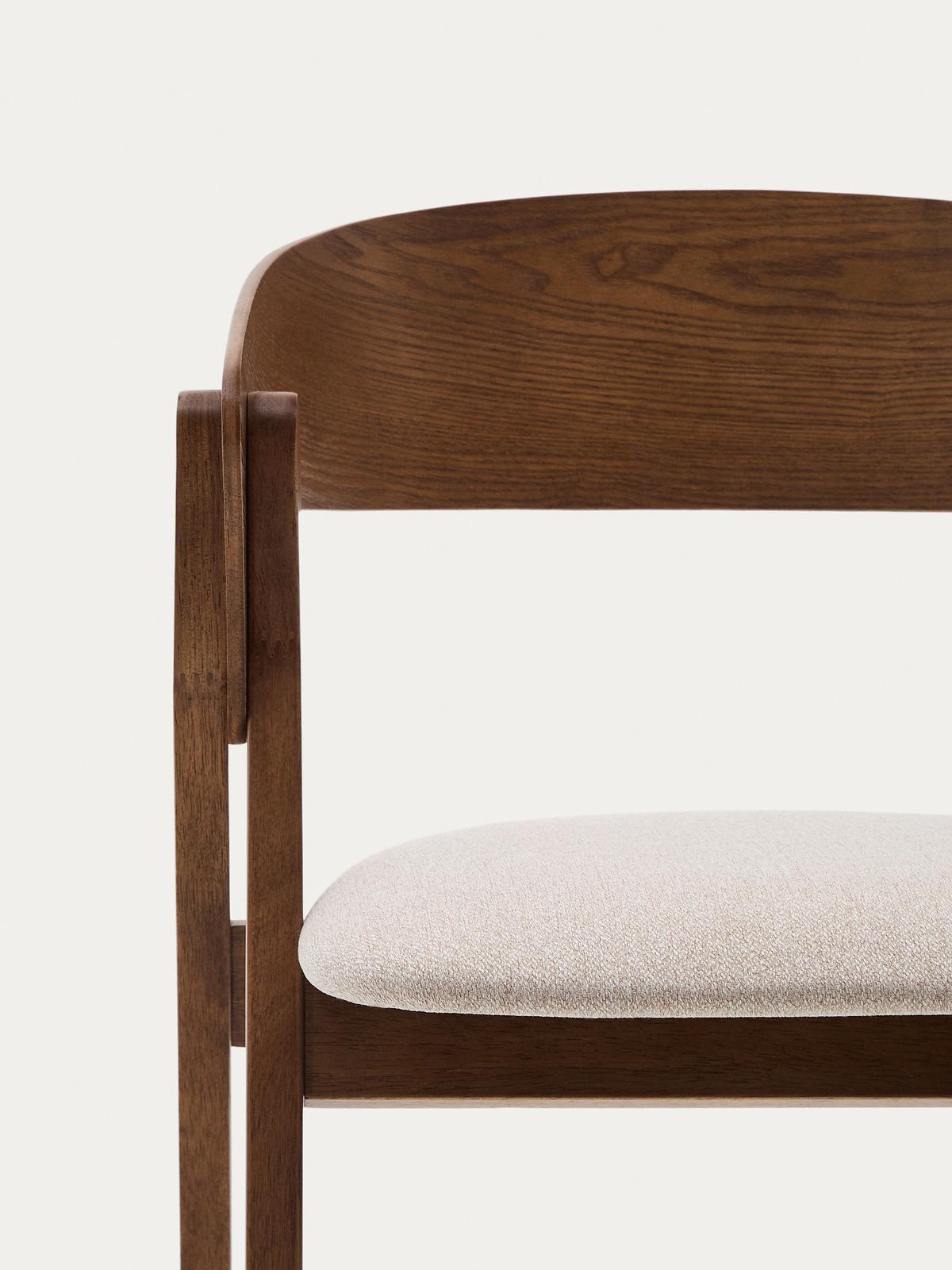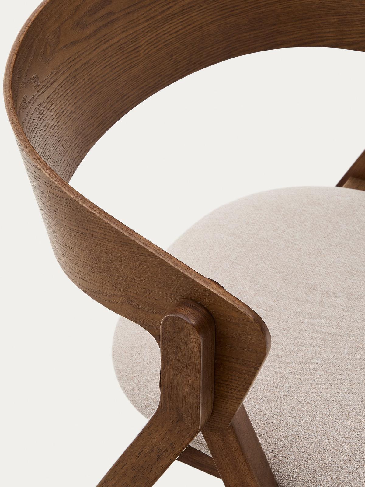 Godia stoel van essenhoutfineer met een wengé afwerking en beige chenille