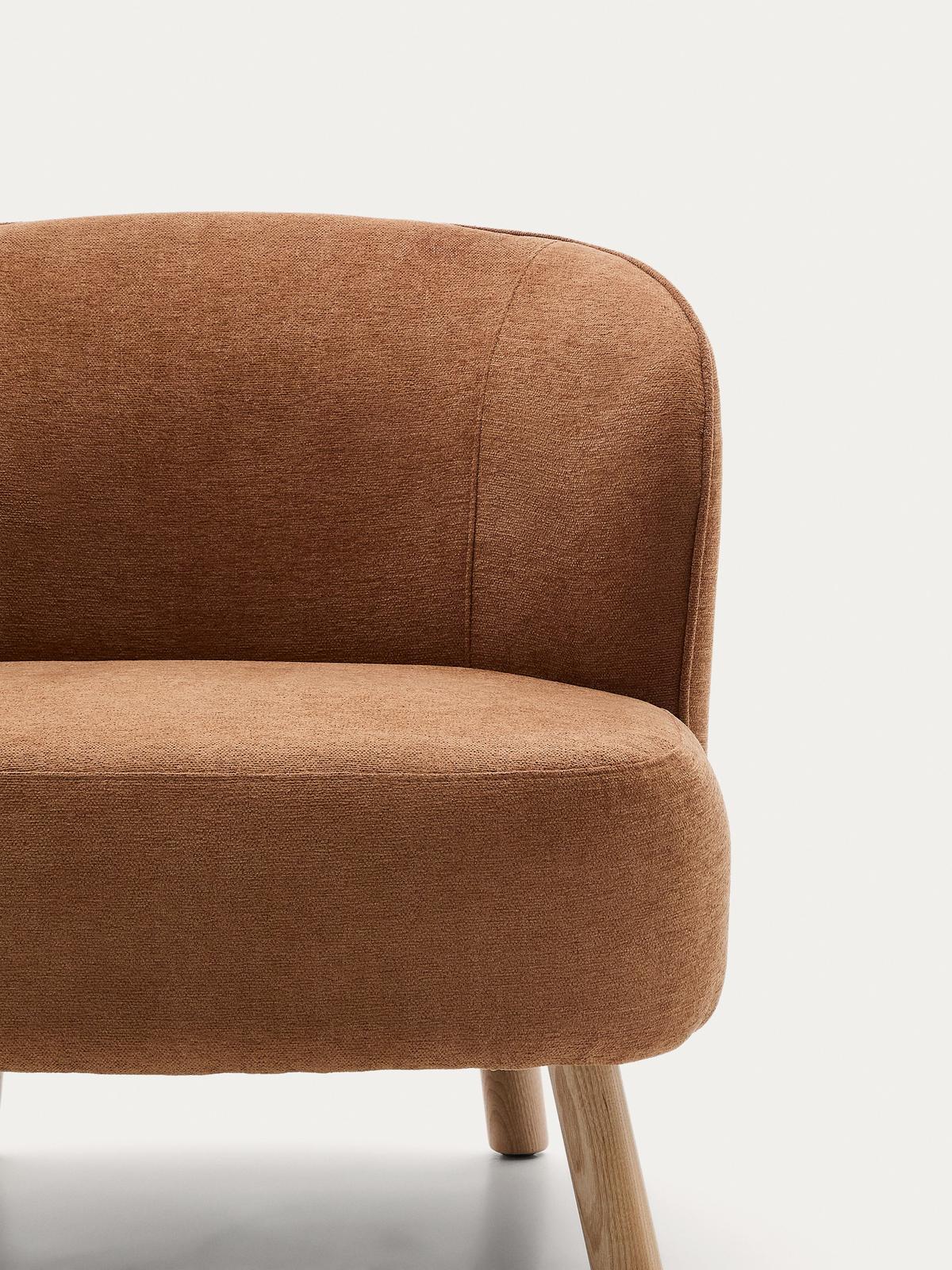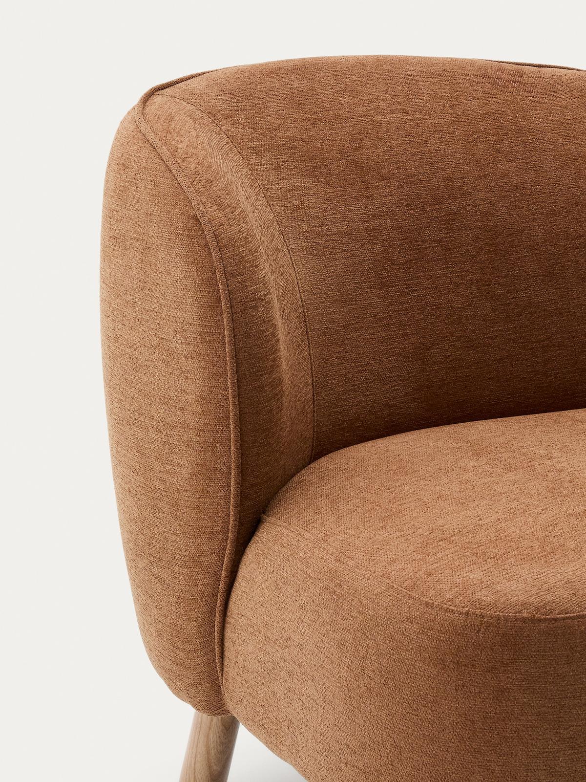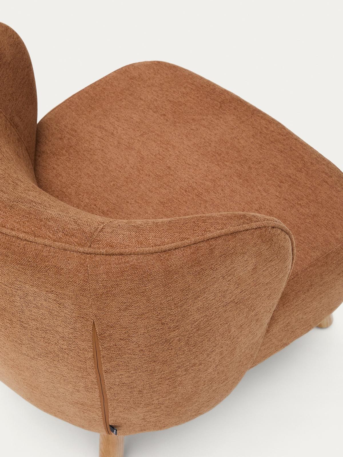 Fauteuil Ulit in terracotta chenille met massief beukenhouten poten natuurlijke afwerking.