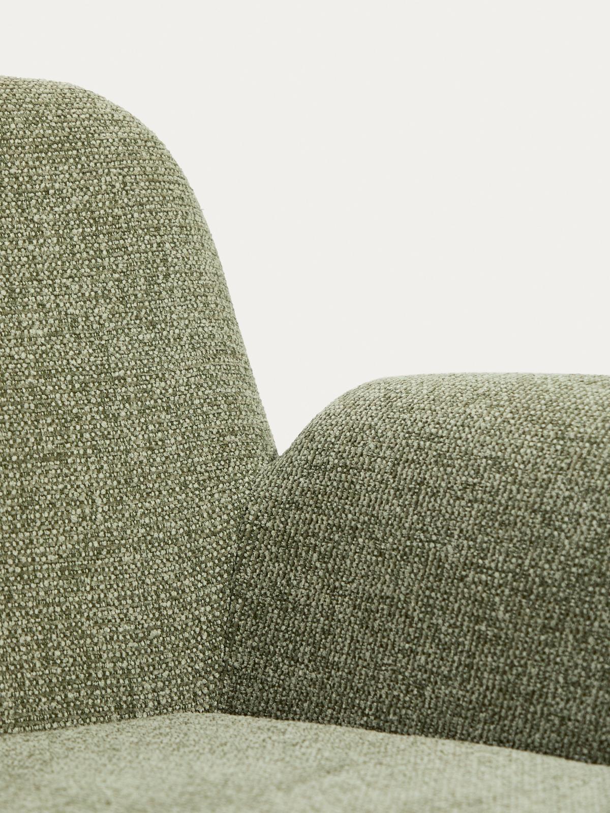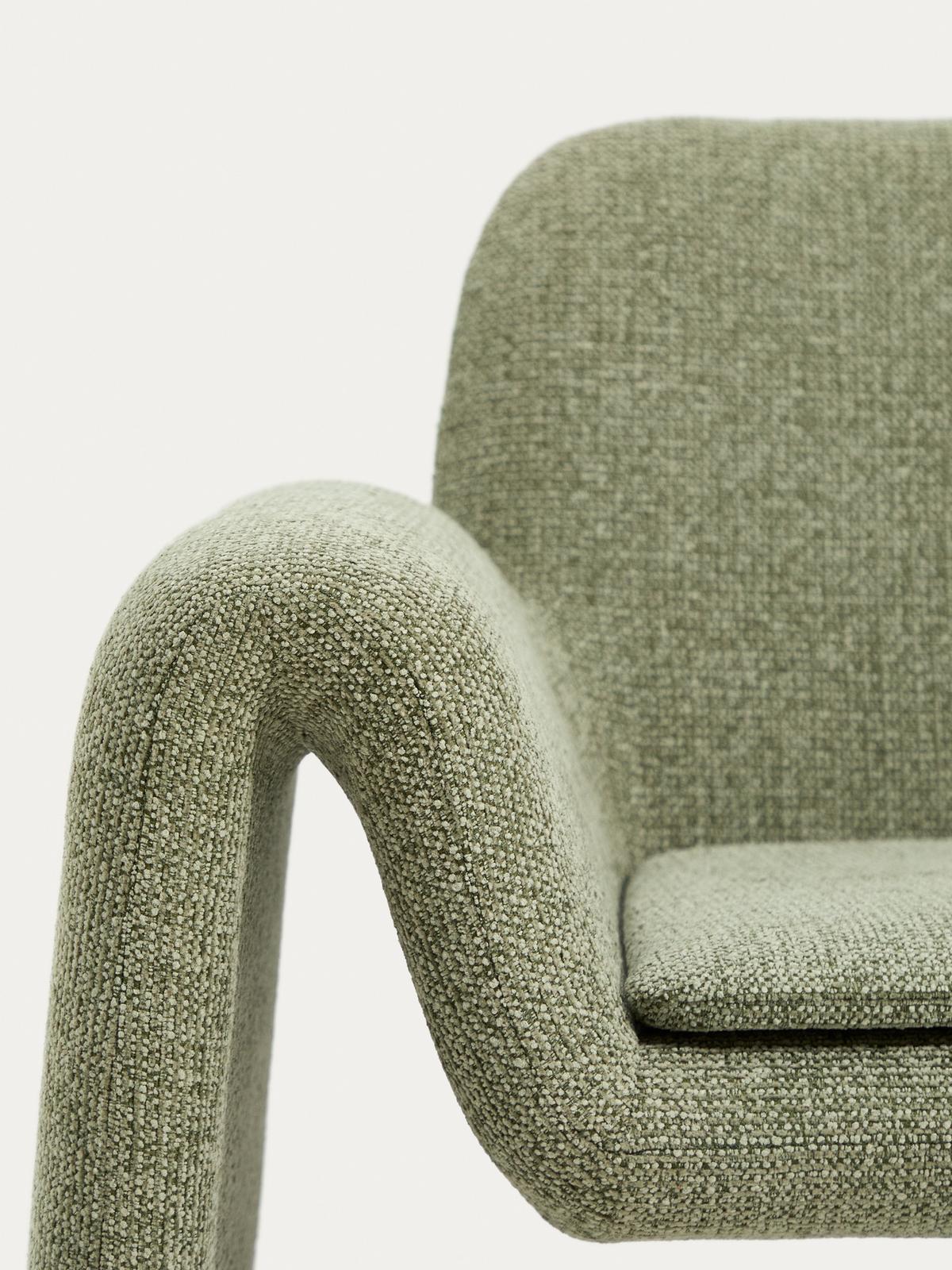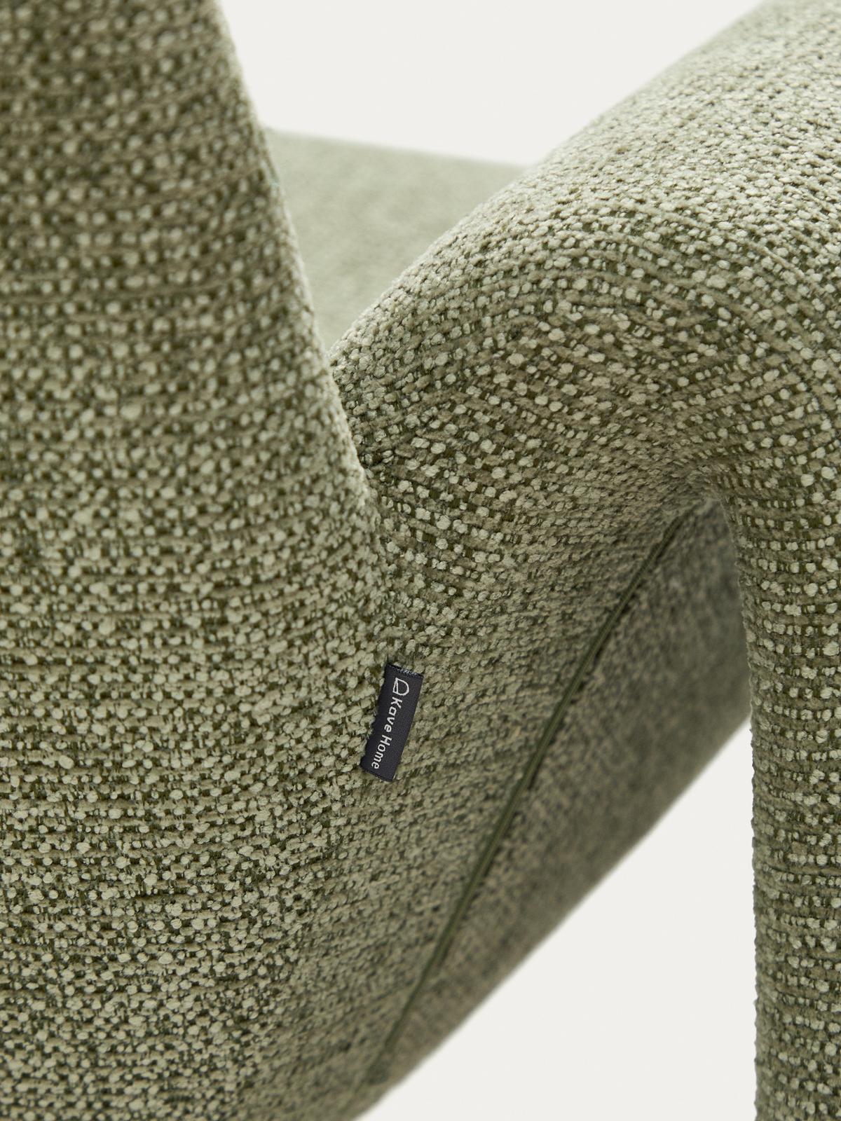 Deze fauteuil valt op door zijn doordachte ontwerp, exclusief ontworpen door Morten Georgsen voor Kave Home. De bekleding van chenille met een grove structuur en een tweekleurig 3D-effect voelt zeer zacht aan en zorgt voor een omhullend gevoel van comfort. De stof onderscheidt zich door zijn hoge slijtvastheid en lichtbestendigheid en is bovendien voorzien van een waterafstotende behandeling die het onderhoud vergemakkelijkt en het uiterlijk bij continu gebruik verlengt. De leverancier van de stof beschikt over een OEKO-TEX® STANDARD 100-certificering voor ecologisch veilige en milieuverantwoorde productie. De zitting is van gemiddelde hardheid dankzij de combinatie van banden en veren met schuimlagen met een dichtheid van 20 kg/m³ en 30 kg/m³, die comfort en uitgebalanceerde ondersteuning bieden. Het zitkussen, met afneembare hoezen voor eenvoudig onderhoud, is gemaakt van injectieschuim met een dichtheid van 55 kg/m³, waardoor het na verloop van tijd zijn vorm en comfort behoudt. De poten, gemaakt van roestvrij staal buis met geborstelde afwerking, zijn voorzien van verstelbare beschermers om krassen op de vloer te voorkomen en zorgen voor optimale stabiliteit op alle soorten oppervlakken. Voor de interne structuur is FSC Mix Credit-gecertificeerd hout gebruikt, gemaakt van een mix van materialen uit FSC-gecertificeerde bossen en FSC-gecontroleerd hout. Een uniek product dat exclusief design, kwaliteit en comfort combineert om te passen in elke ruimte.