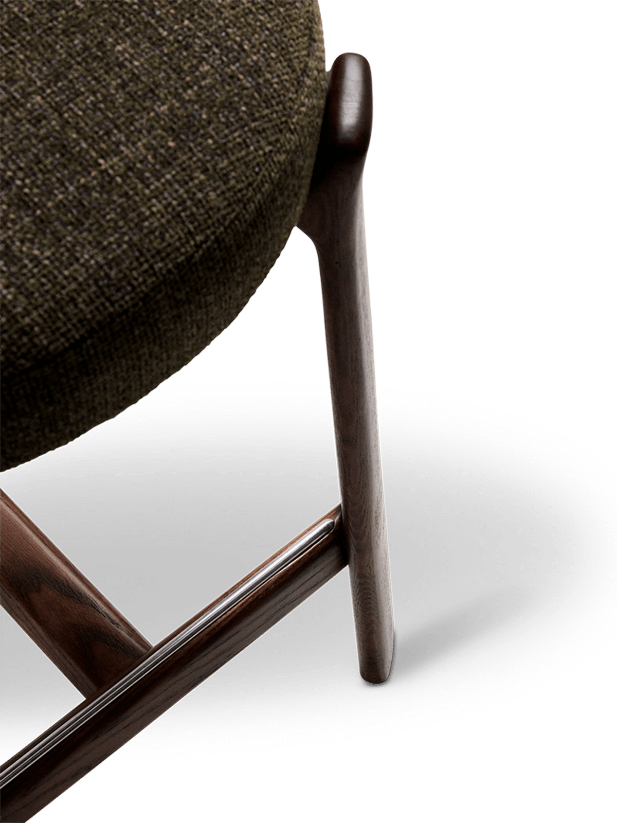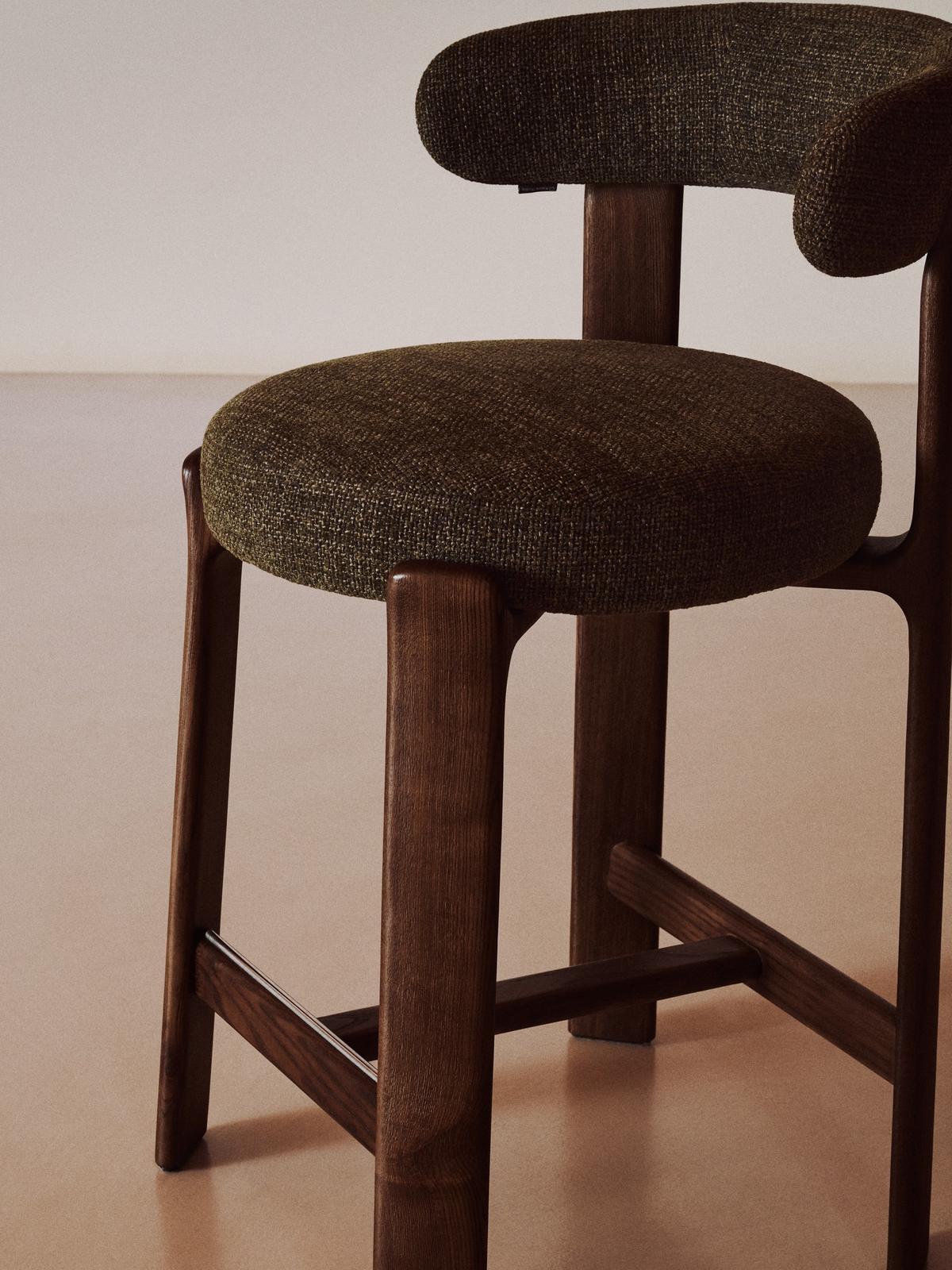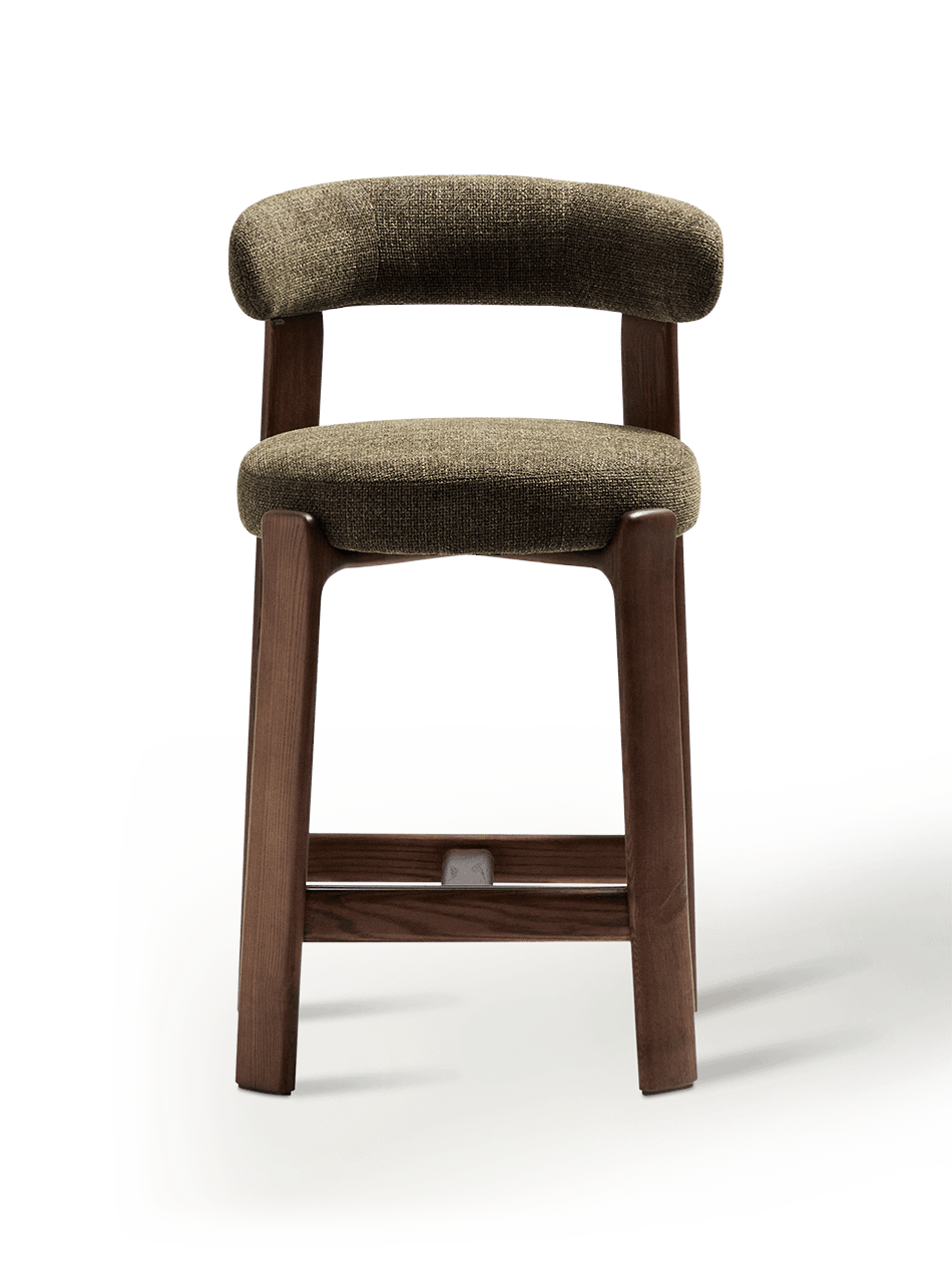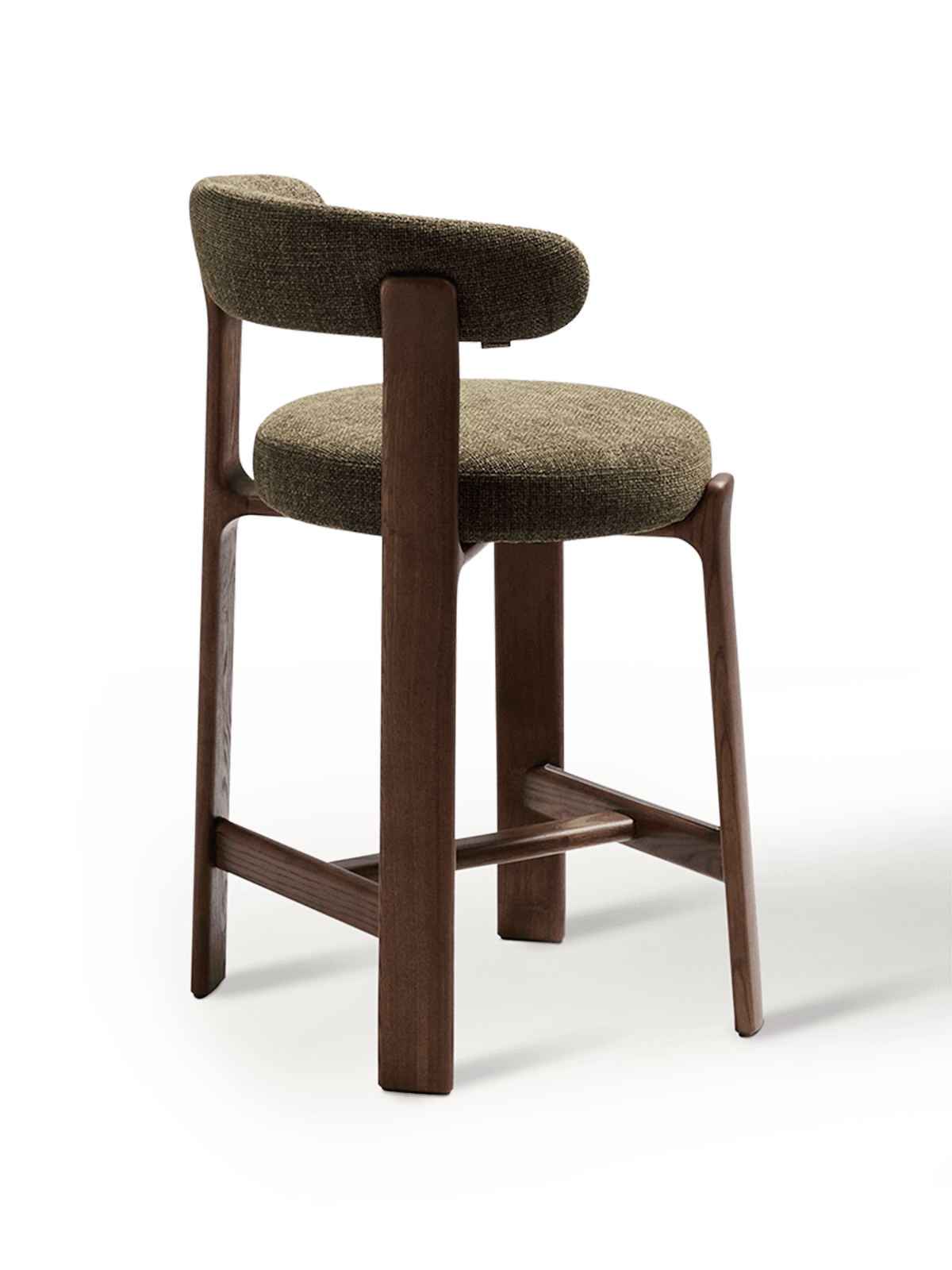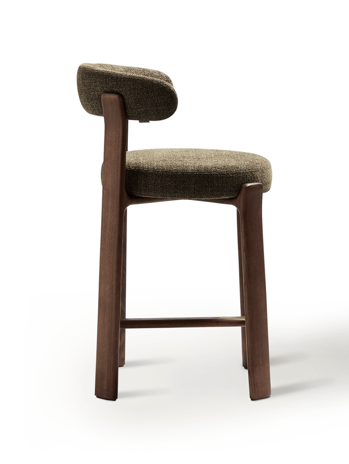 Granite kruk in groen chenille en massief essenhout met afwerking in notelaartoon FSC 100% 65 cm