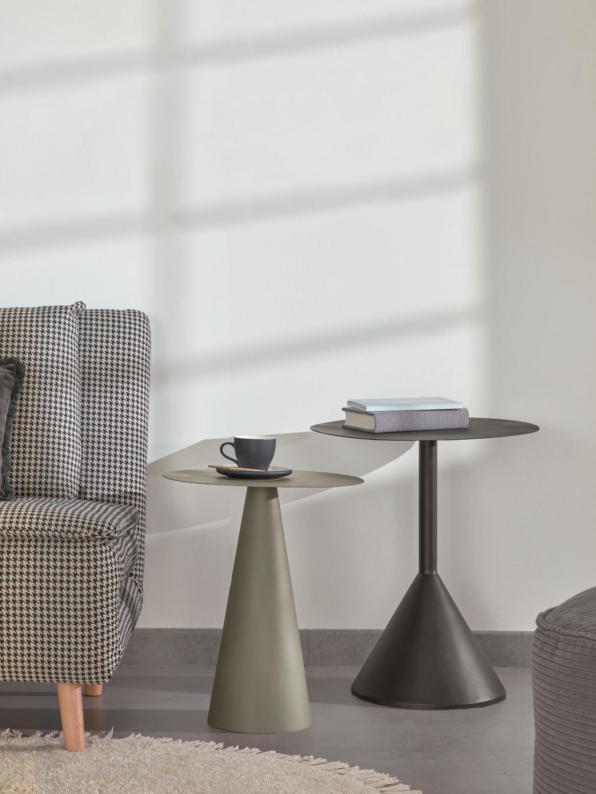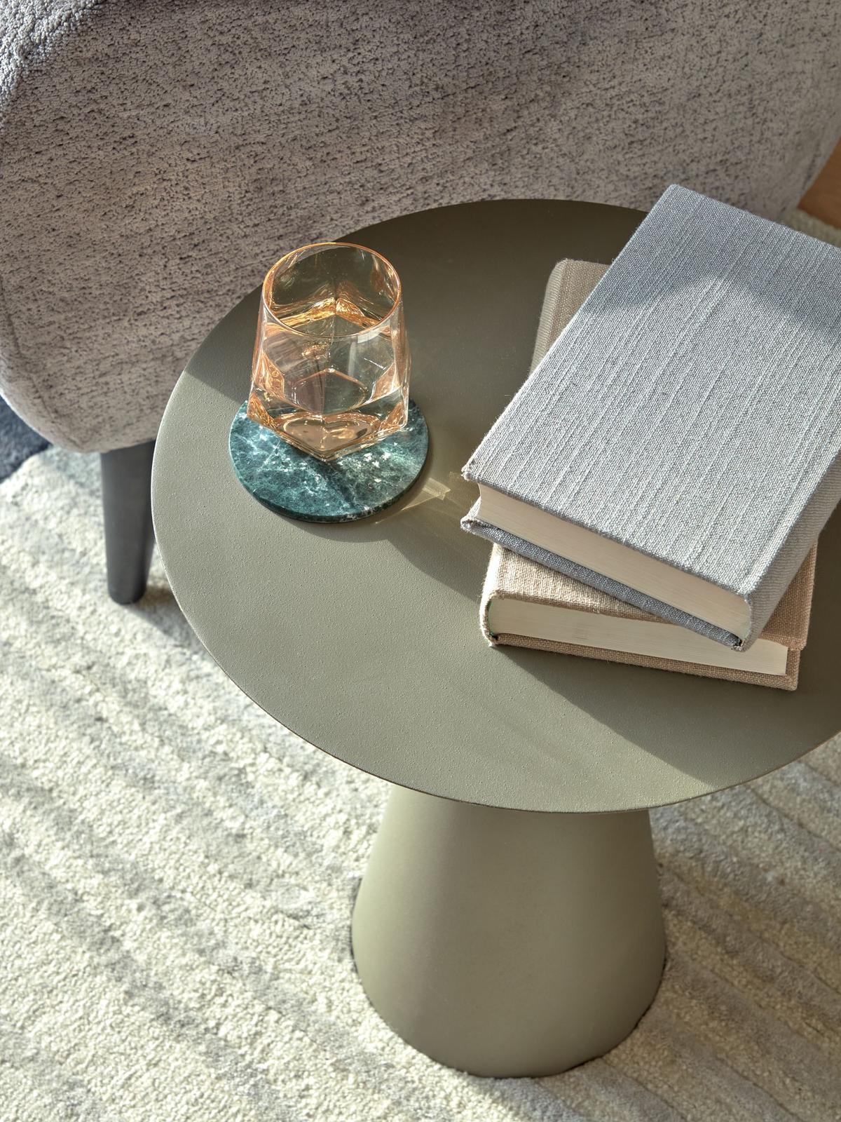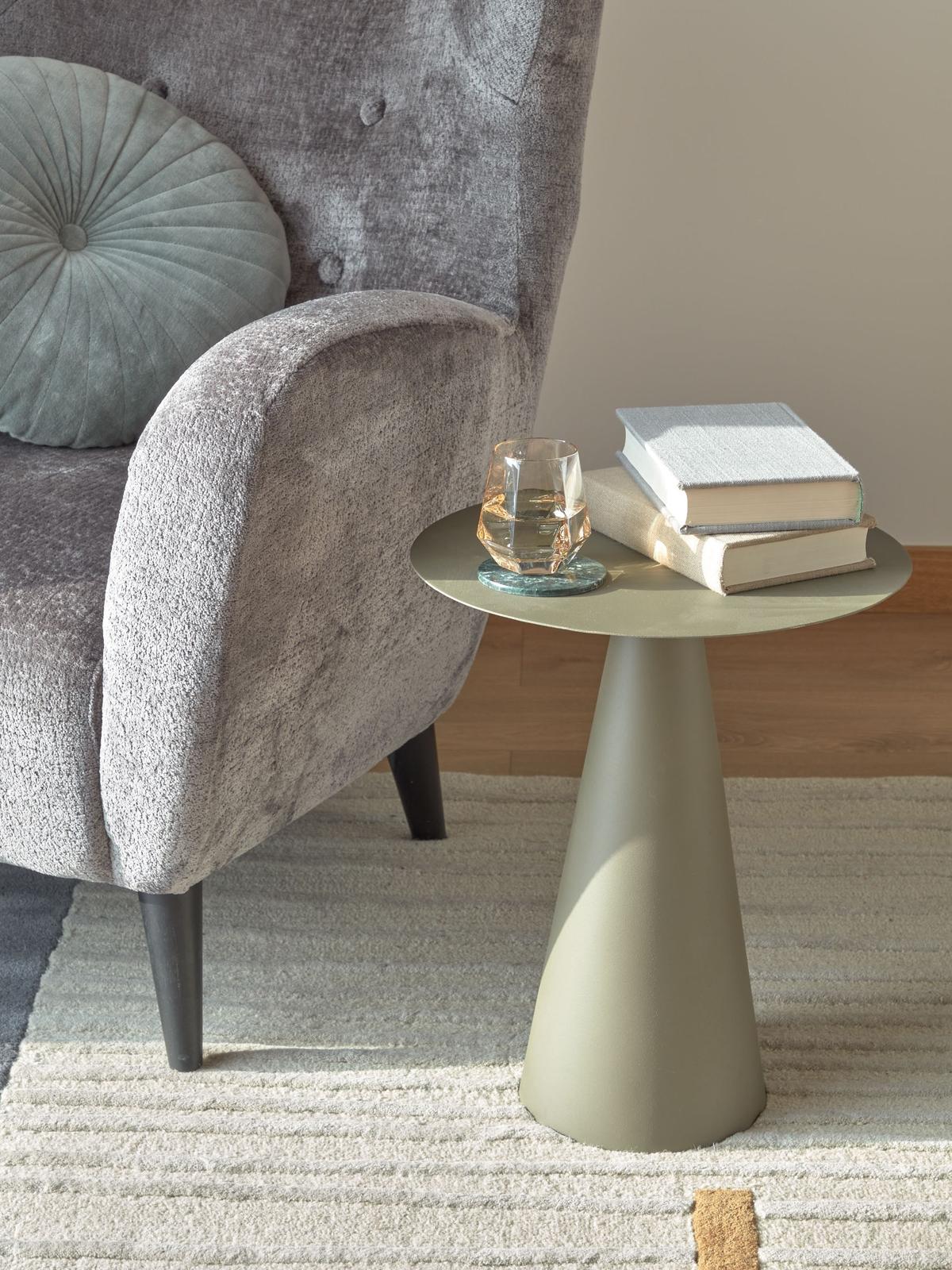 Bijzettafels zijn het soort meubel dat elke woonkamer nodig heeft - handig voor naast de bank of een fijne fauteuil, terwijl je leest of een kopje koffie drinkt. Onze metalen tafel Shirel, in groen-grijs, is praktisch én stijlvol met zijn minimalistische design.