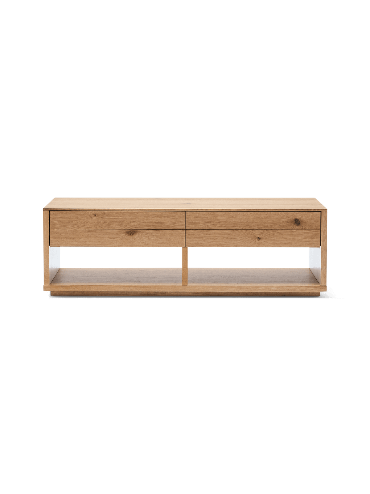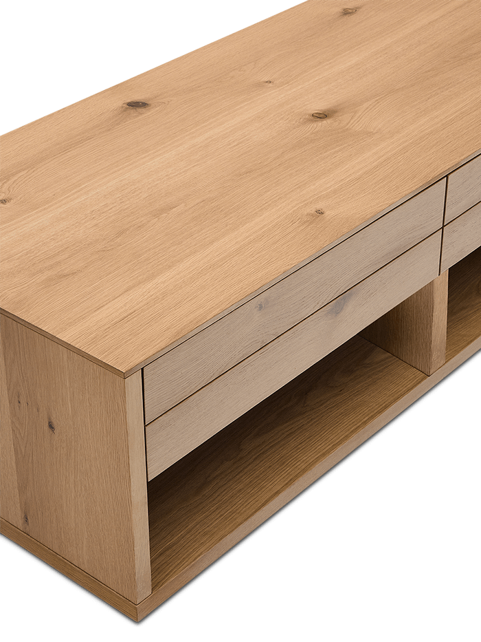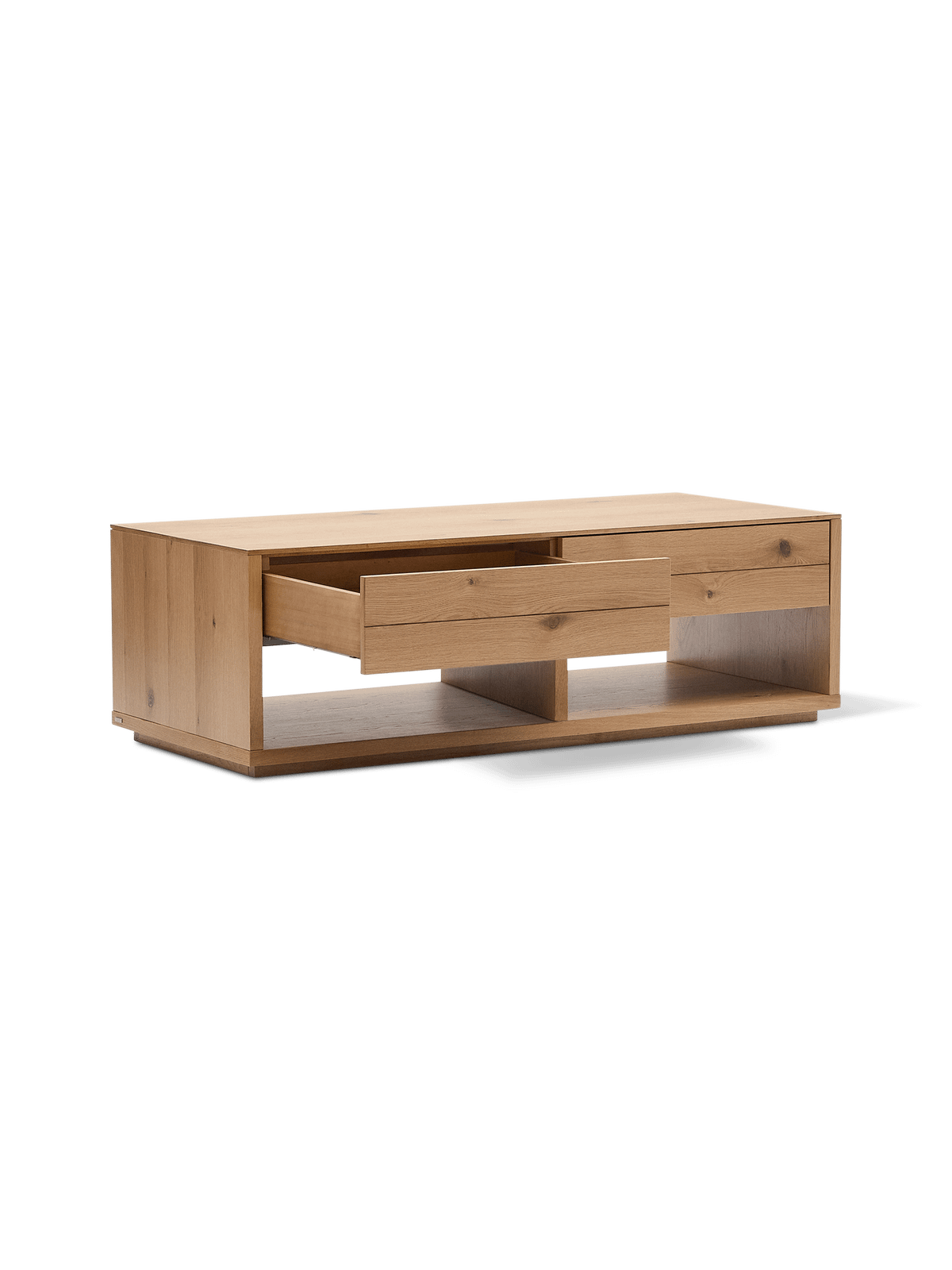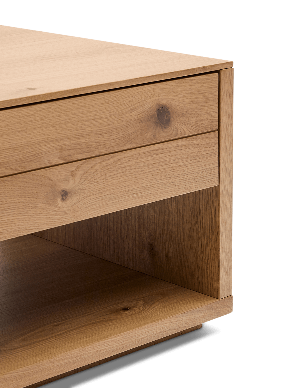 Salontafel Alguema, twee laden van eikenfineer met naturel afwerking 140 x 60 cm