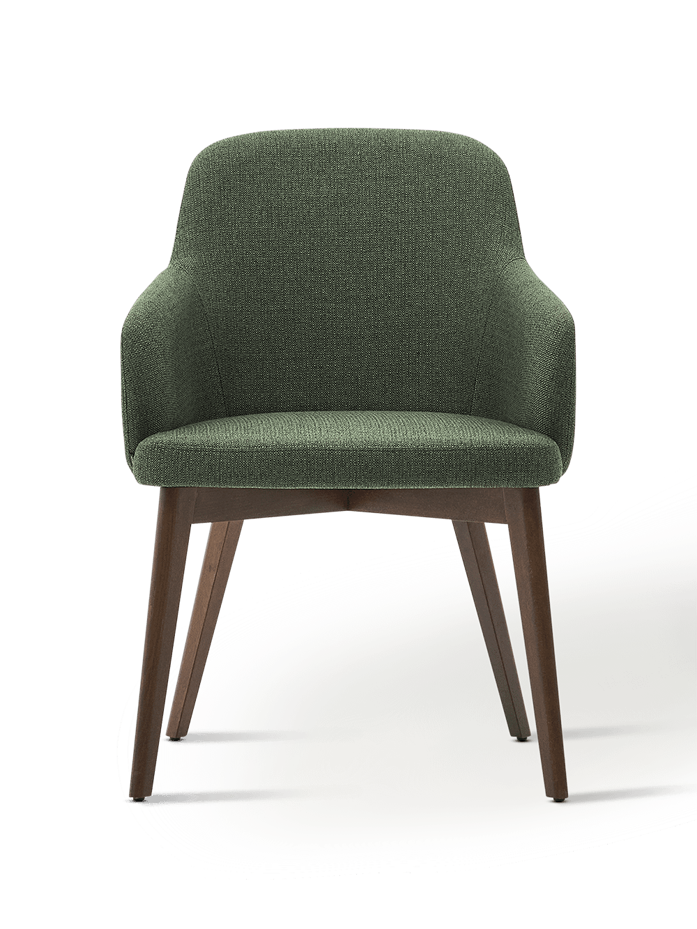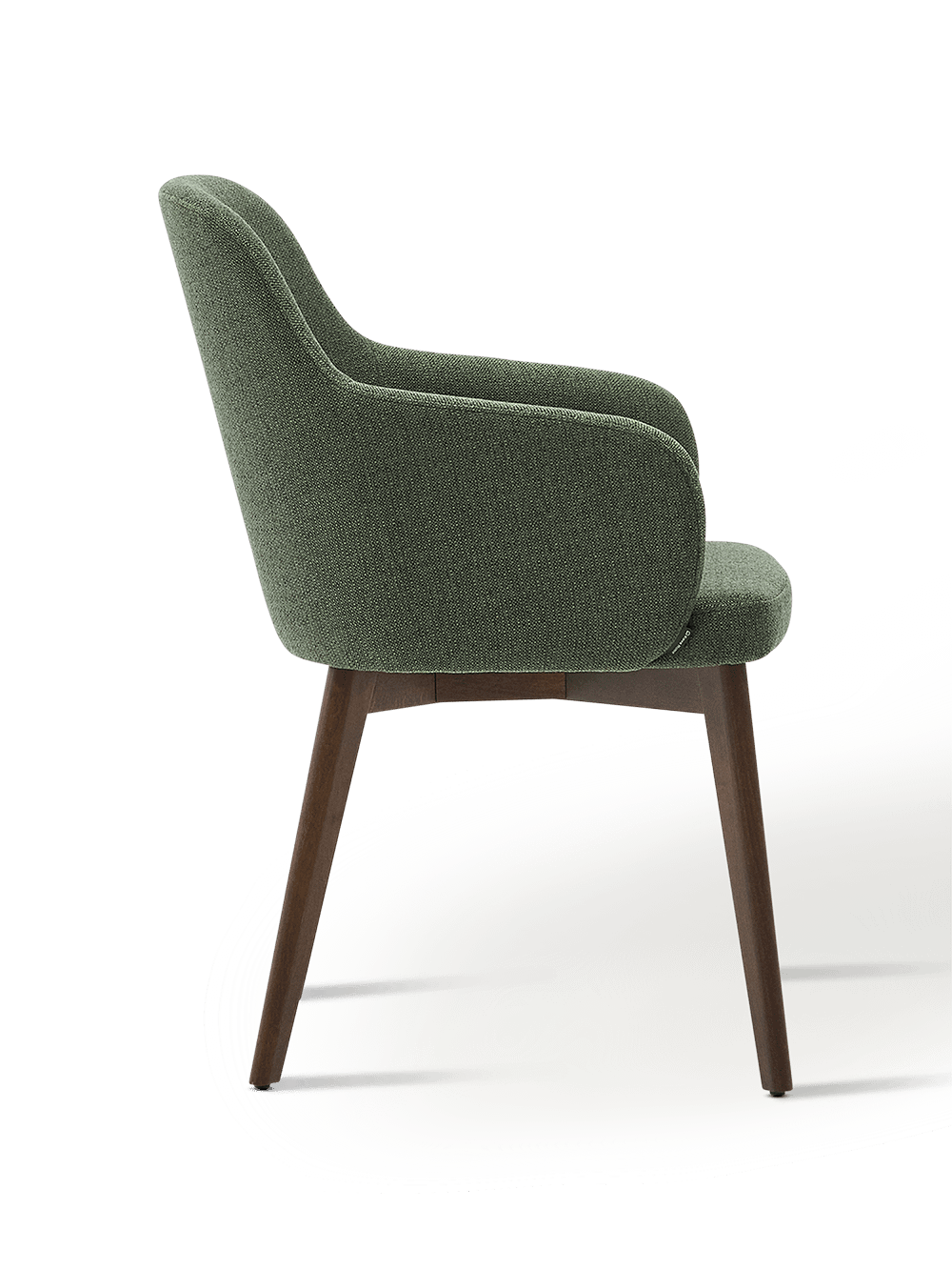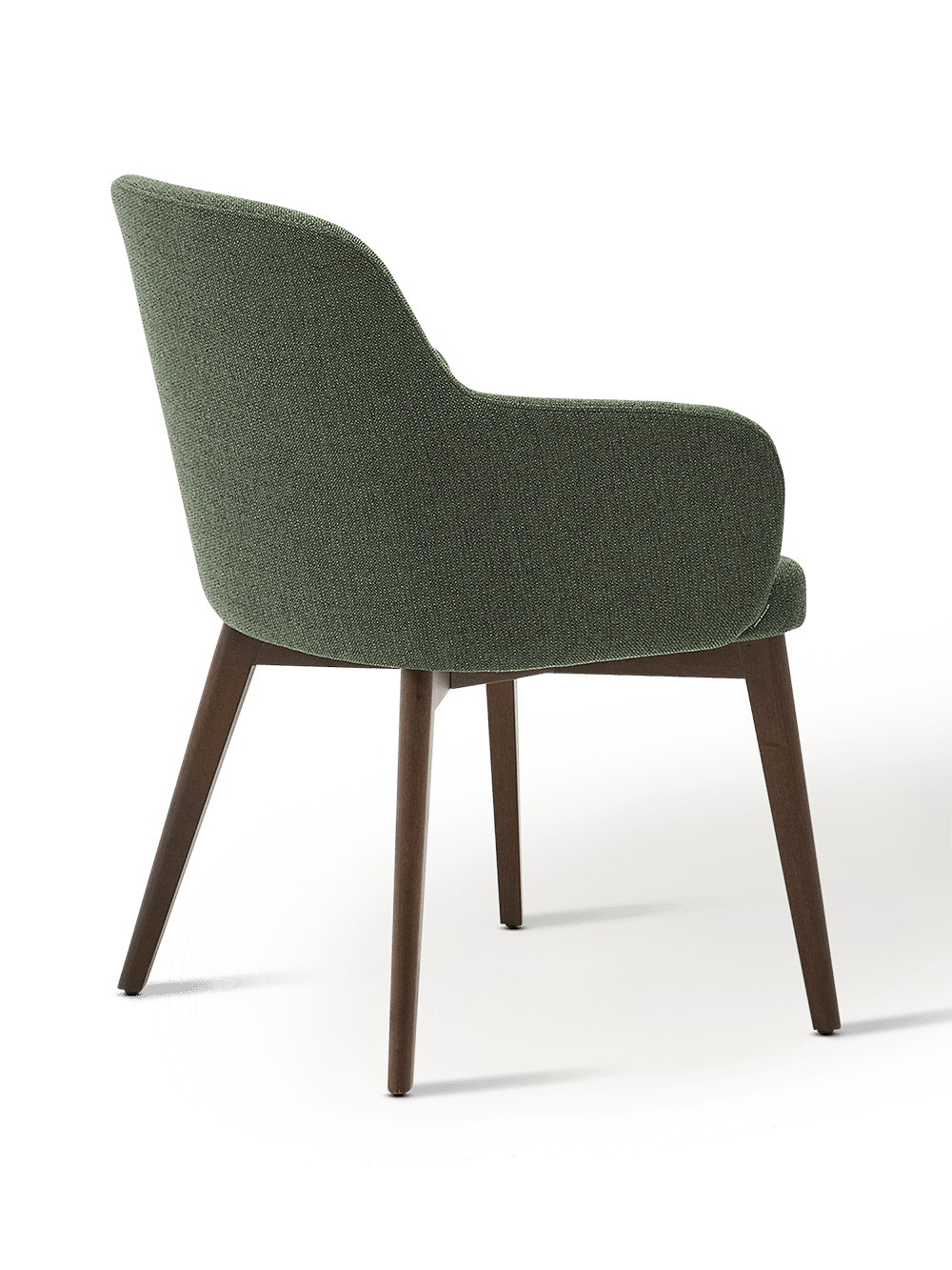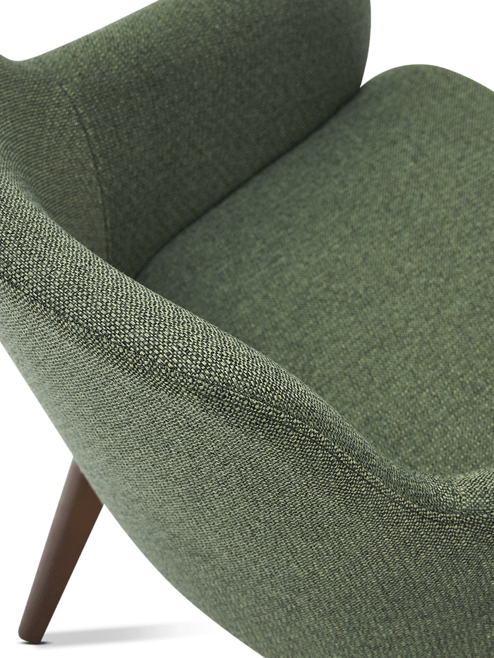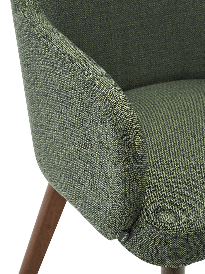 Stoel Nelida van FSC 100% massief beukenhout met een walnoot afwerking en een groene chenille bekleding