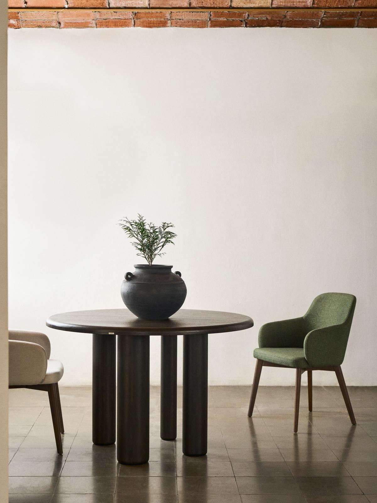 Het massieve beukenhouten ontwerp, de chenille bekleding en de zachte rugleuning met geïntegreerde armleuningen zorgen voor maximaal comfort. Het tijdloze ontwerp van de Nelida past uitstekend in een stijlvolle eetkamer.