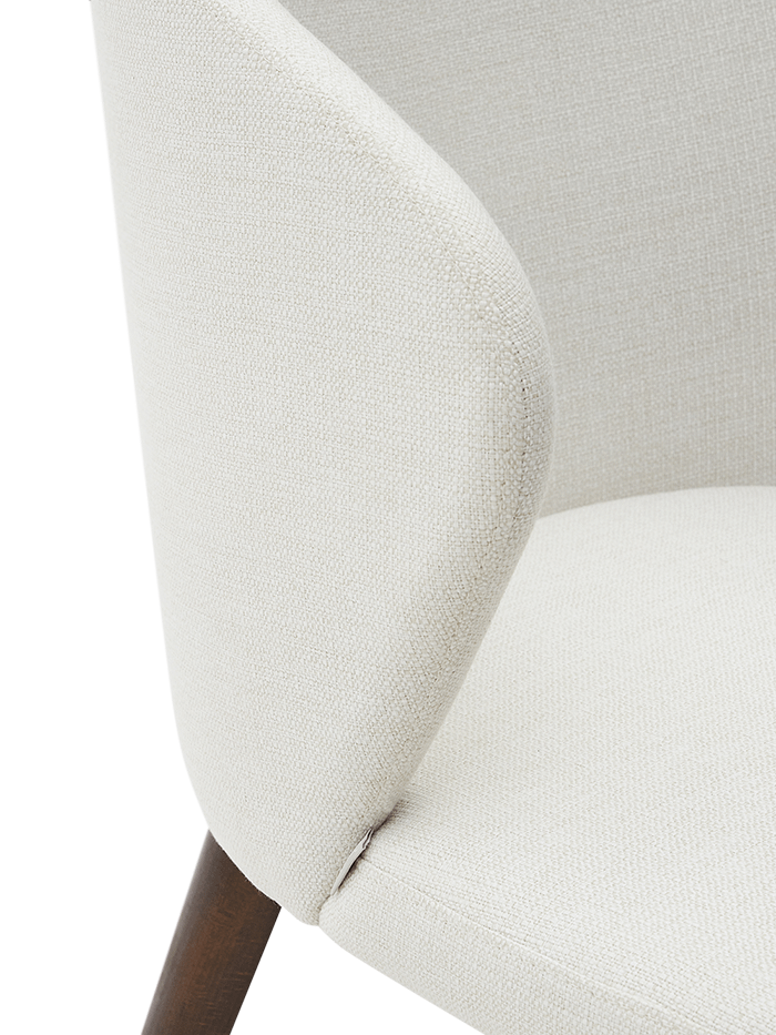 Het massieve beukenhouten ontwerp, de chenille bekleding en de zachte rugleuning met geïntegreerde armleuningen zorgen voor maximaal comfort. Het tijdloze ontwerp van de Darice past uitstekend in een stijlvolle eetkamer.