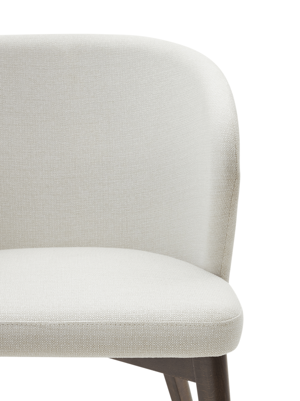 Stoel Darice van FSC 100% massief beukenhout met een walnoot afwerking en een beige chenille bekleding