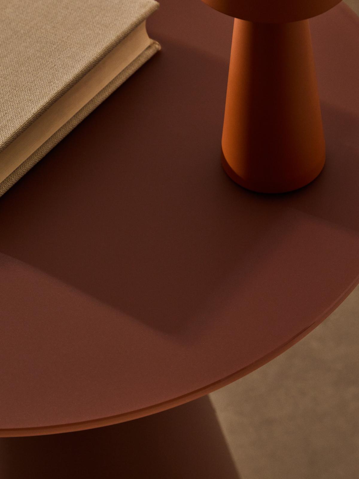 Wilshire bijzettafel van mat gehard glas en in mat terracotta gelakt staal ⌀50 cm