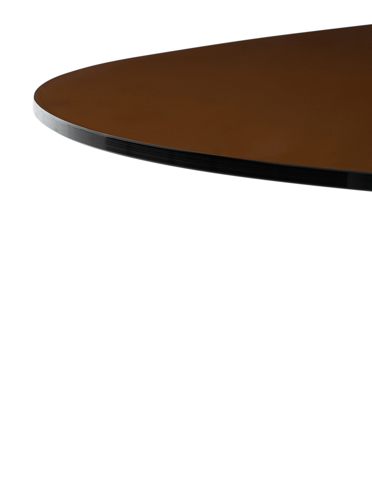 Het blad is uitgevoerd in getint gehard glas, wat garant staat voor een sterke en veilige oplossing in het dagelijks gebruik. De egale tint en nette afwerking geven de tafel een moderne uitstraling. Het stalen onderstel is afgewerkt met een poedercoating, waardoor het goed bestand is tegen krassen, stoten en slijtage.