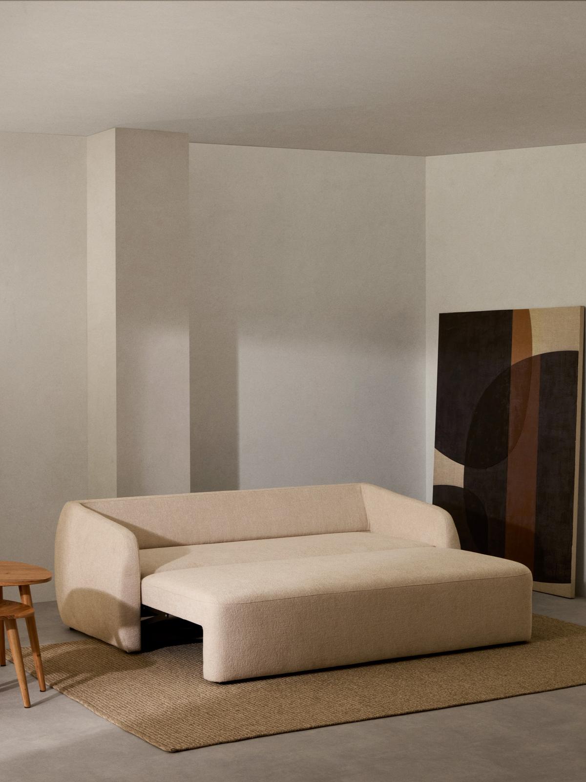 Laira 3-zitsslaapbank in beige chenille 218 cm FSC Mix Credit is toegevoegd aan je winkelmandje