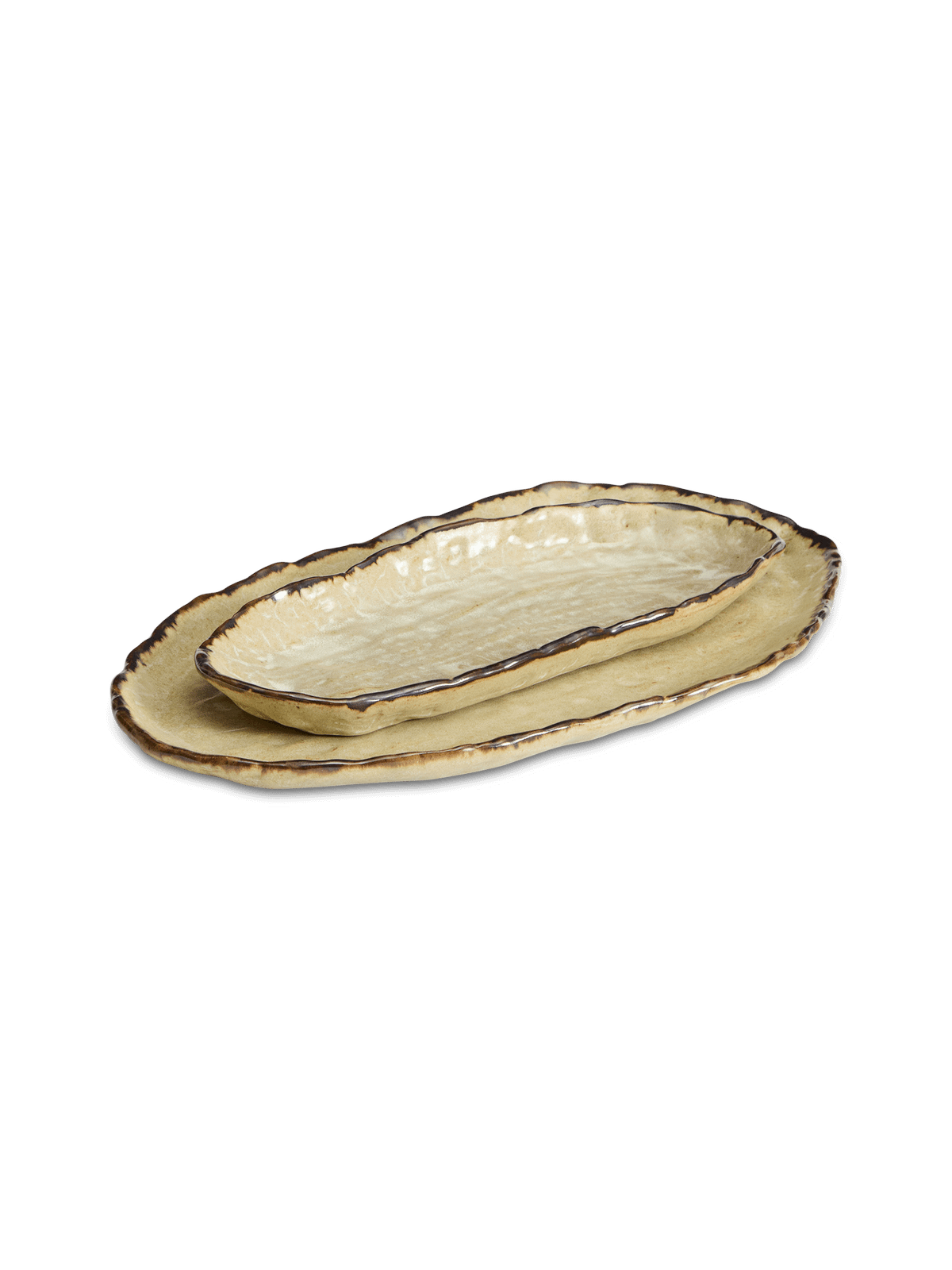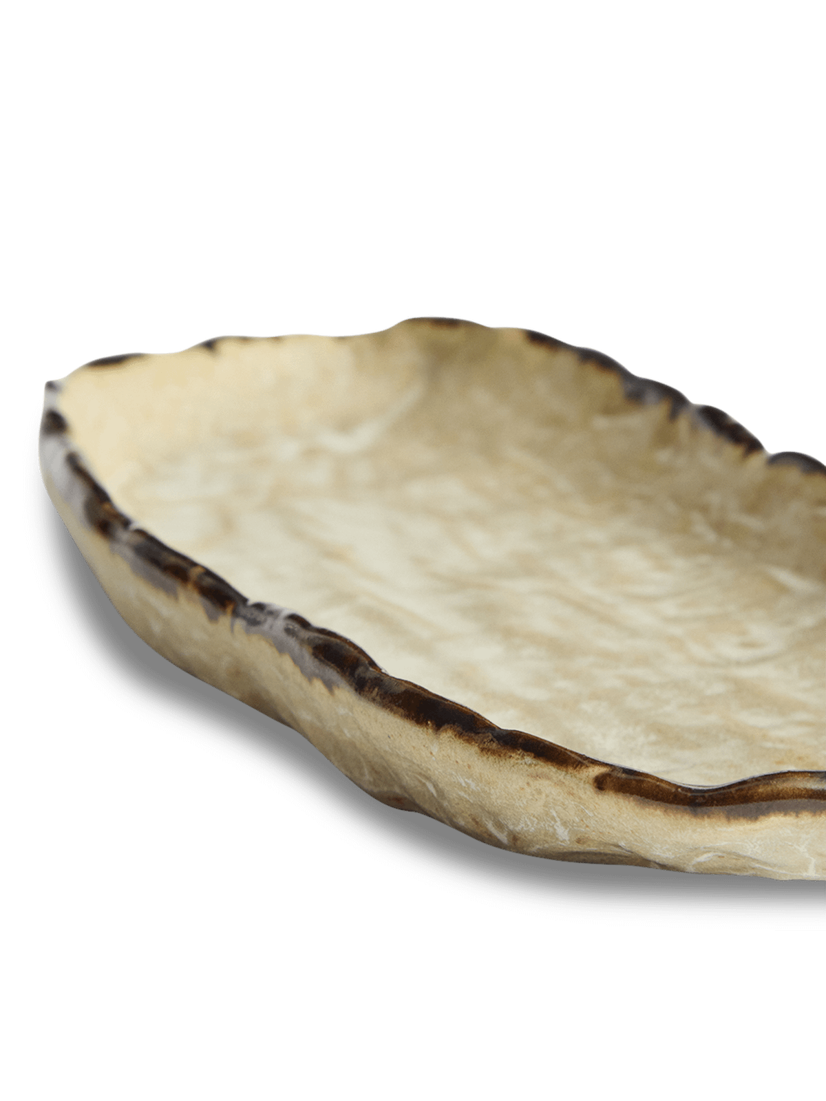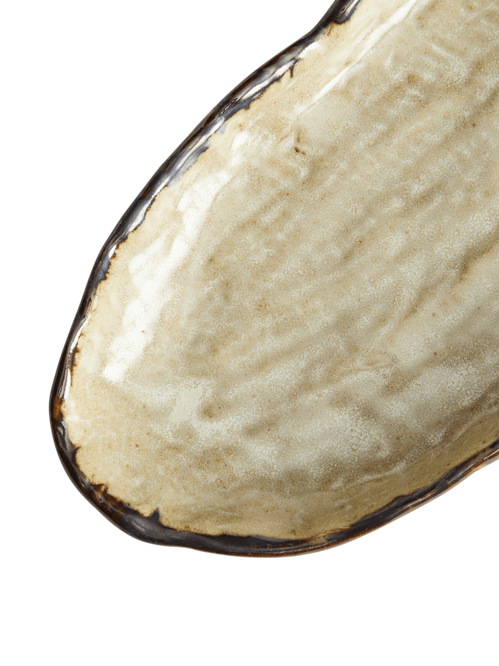 De Abela-collectie valt op door de organische, onregelmatige vormen die een eigentijdse en onderscheidende uitstraling aan de tafel geven. Dankzij het glazuurproces heeft elk stuk unieke kleurschakeringen en texturen, waardoor geen enkel stuk hetzelfde is. De bruine afwerking en de licht golvende rand versterken de uitstraling en voegen visuele diepte toe aan elke presentatie.